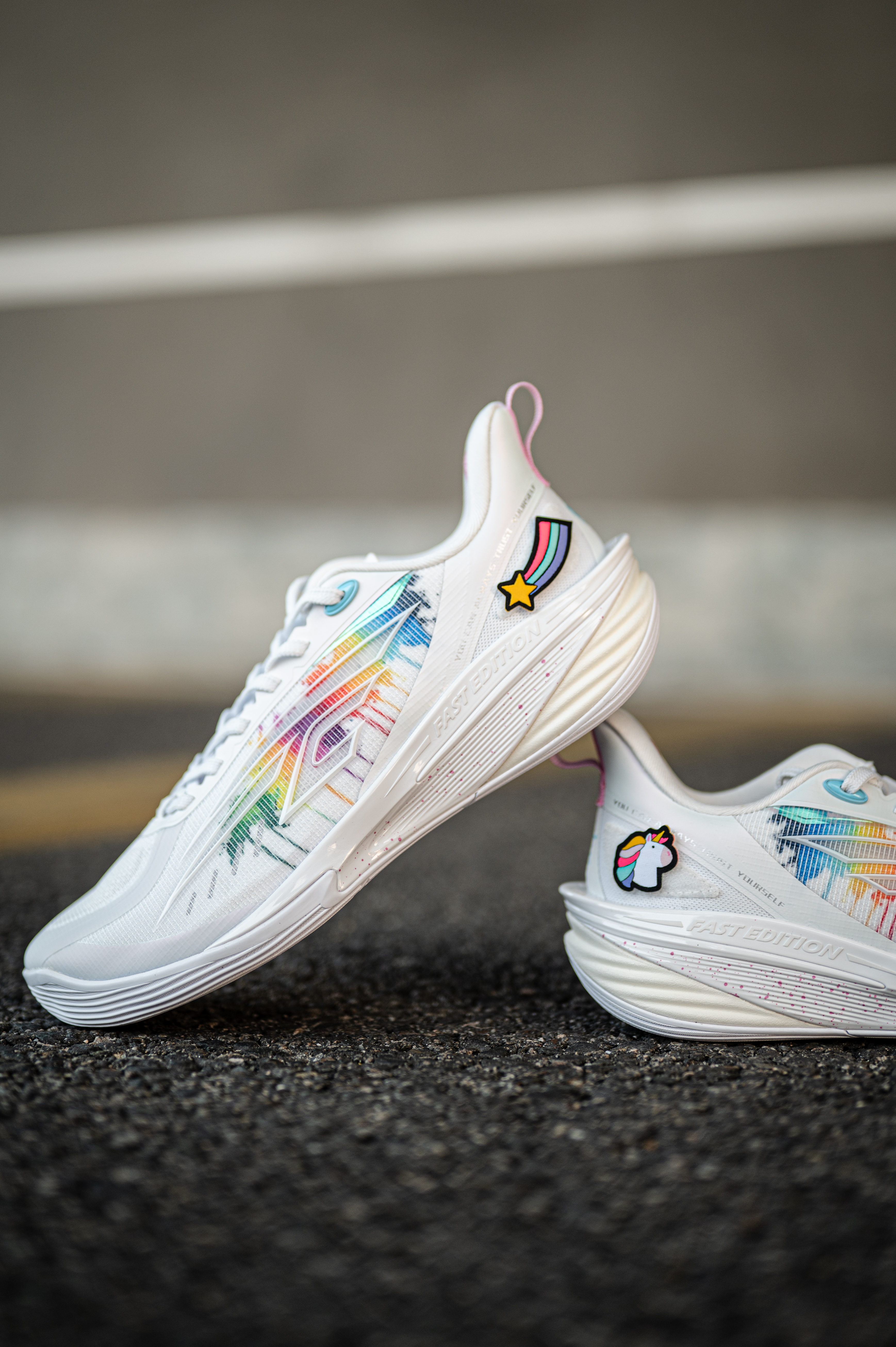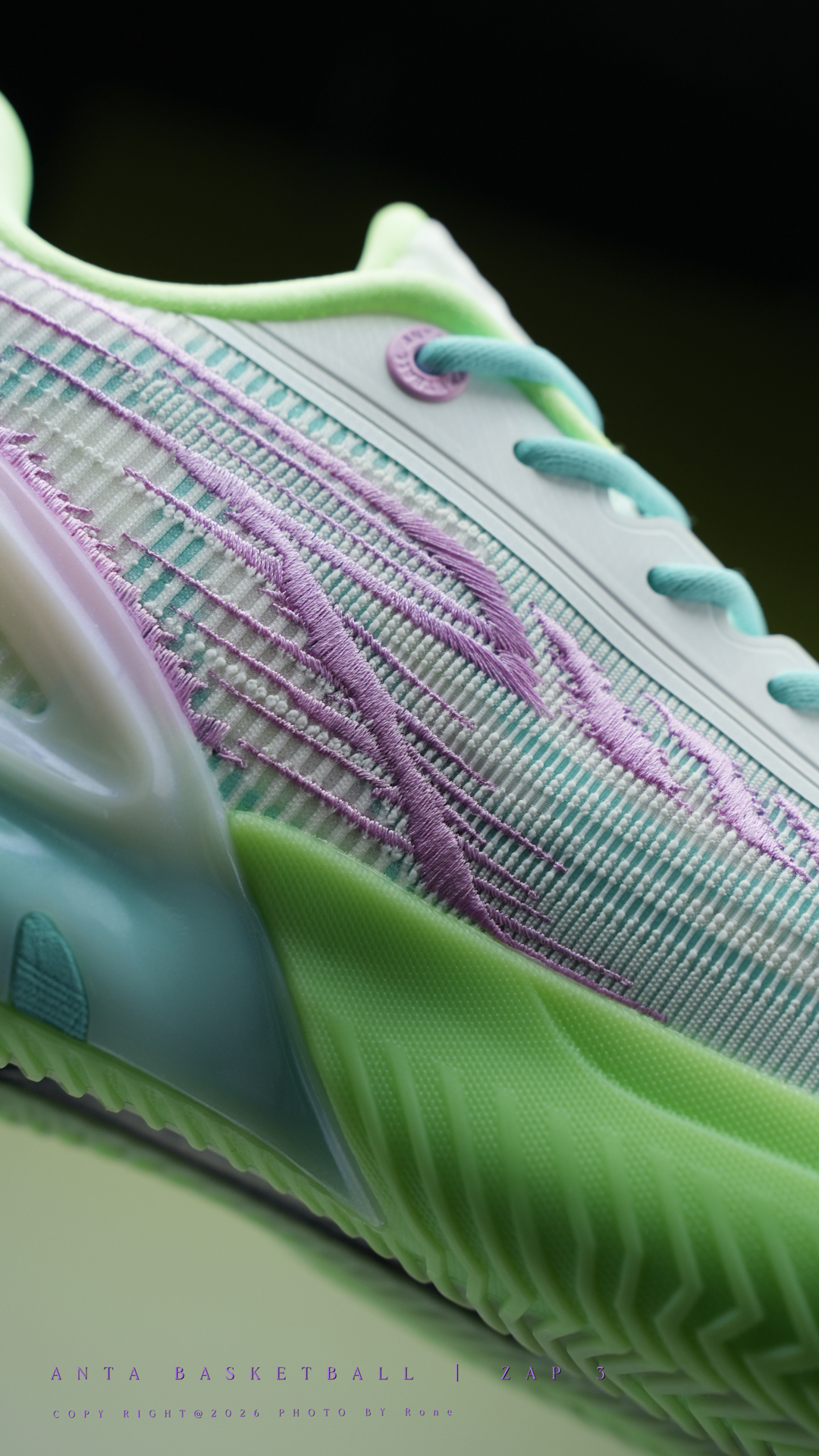 瞬息3绿波新配色真的很戳我,蓝绿渐变加紫色点缀,清新有活力,开春打球穿很合适。 这双我之前上脚打过几场,体验感不错。A-SHOCK PRO中底调教得很舒服,后掌软弹、前掌贴地,搭配镂空TPU与前叉碳板,支撑和强度都在线,启动干脆不拖沓,突破变向很跟脚。 鞋面包裹紧实,贴合度好,还有刺绣补强,质感和耐用性都在线。不少CUBA球员都在穿,脚型适配度不错,瘦脚、正常脚按正常码选就行,宽脚建议试穿。 #买...