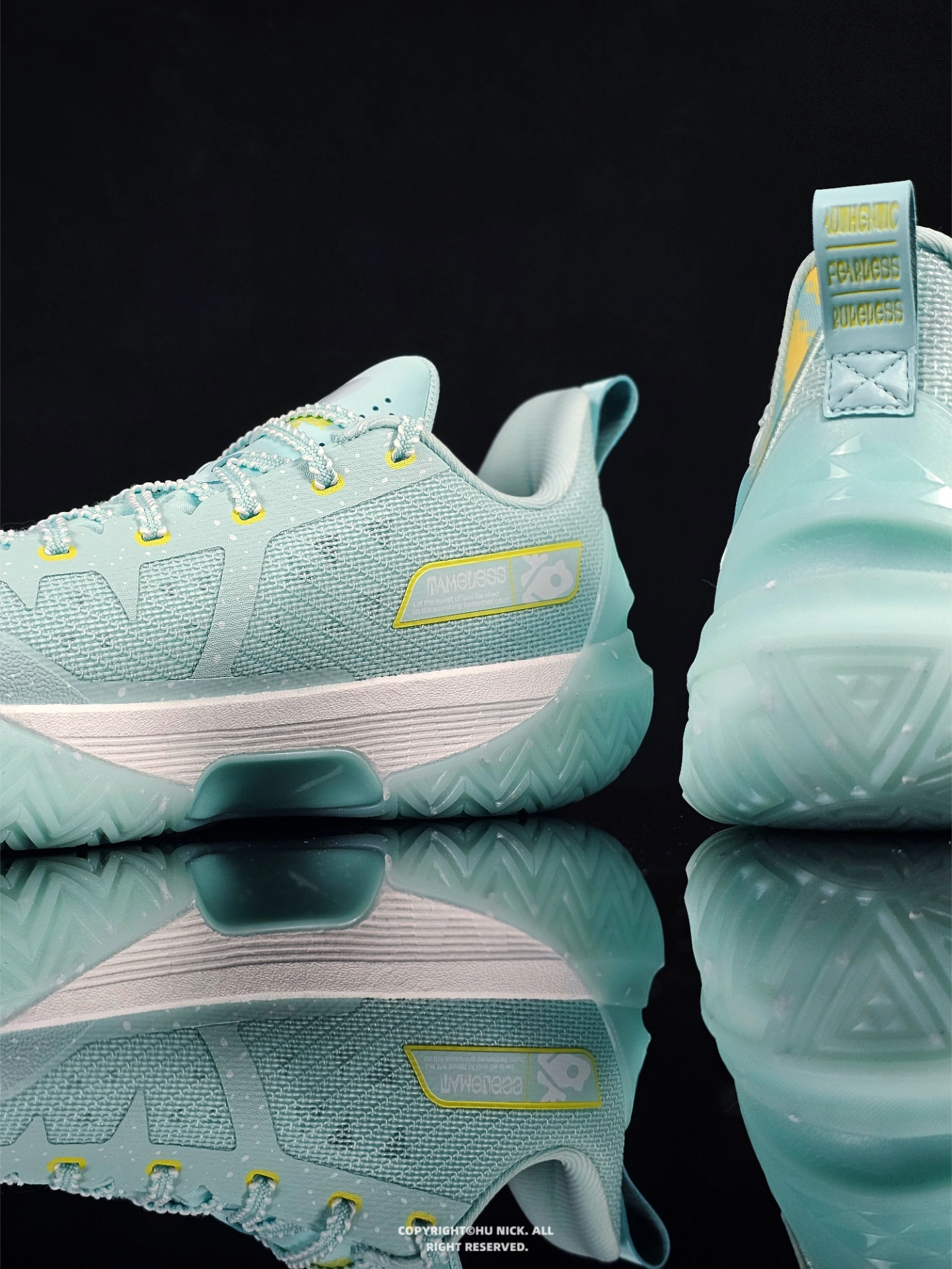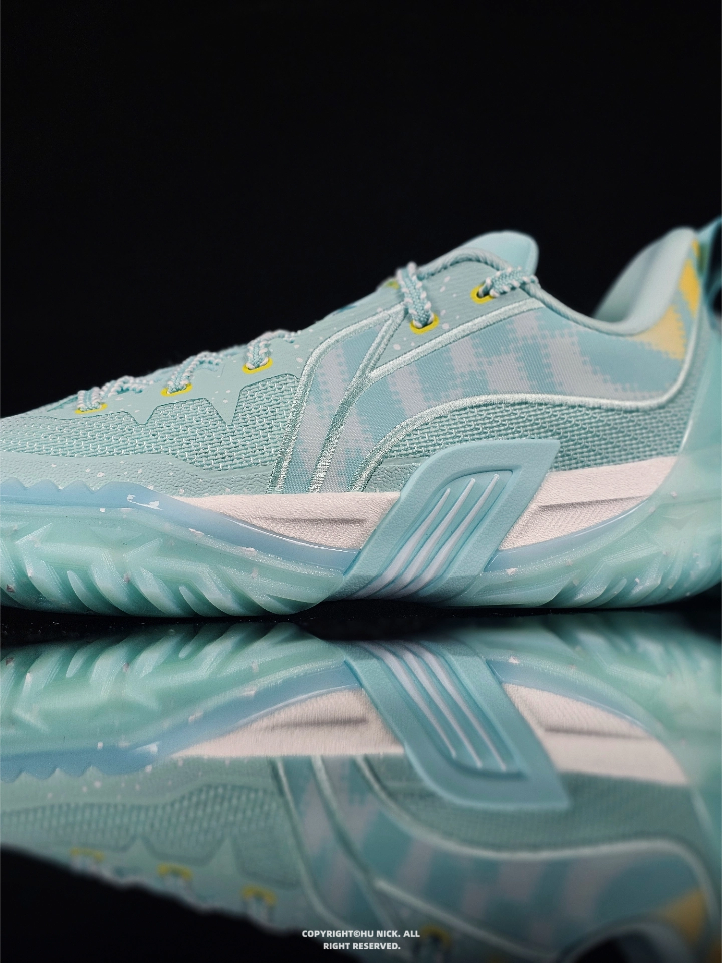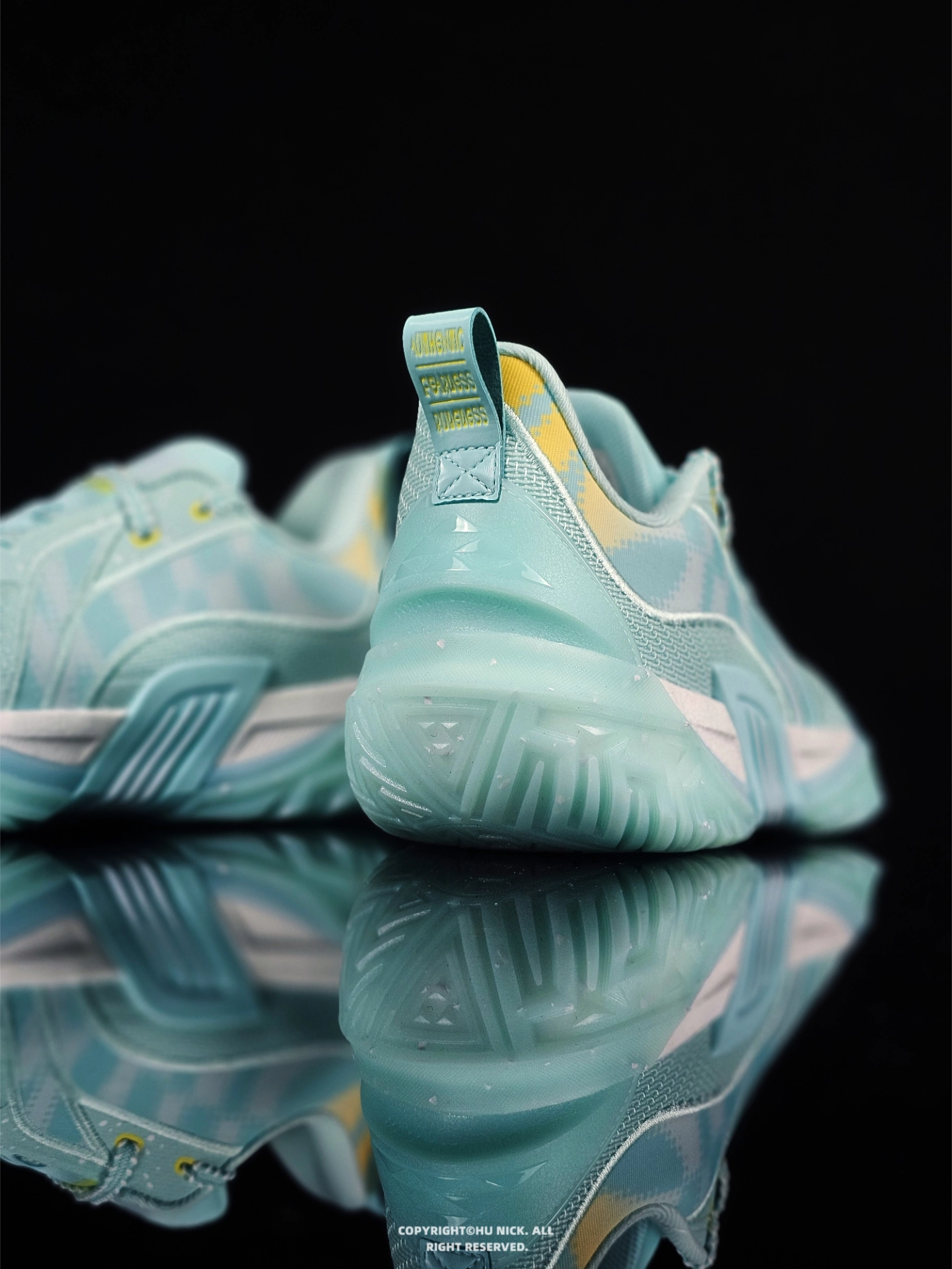 与桀骜3其它动物相关的配色不同,这双「水晶蛙」配色多了一些清新和灵动,通体的蓝水晶鞋身点缀着黄色,配合泼墨的水晶大底也与水晶蛙的色彩特征相呼应,整体呈现出清澈自然的观感体验。 作为主打外场的实战鞋我觉得这双桀骜3是很适合学生党们实战的,大底的TUFF OS纹路很深,对于比较费鞋的学生来说耐磨防滑方面是非常棒的!三维立体的TPU结构使得整体的稳定性很不错,各种大动作都敢大胆做。全掌䨻科技中底搭...
