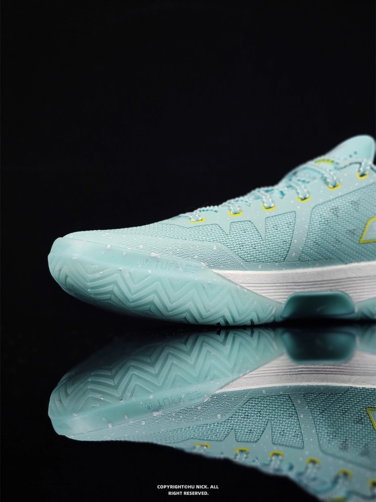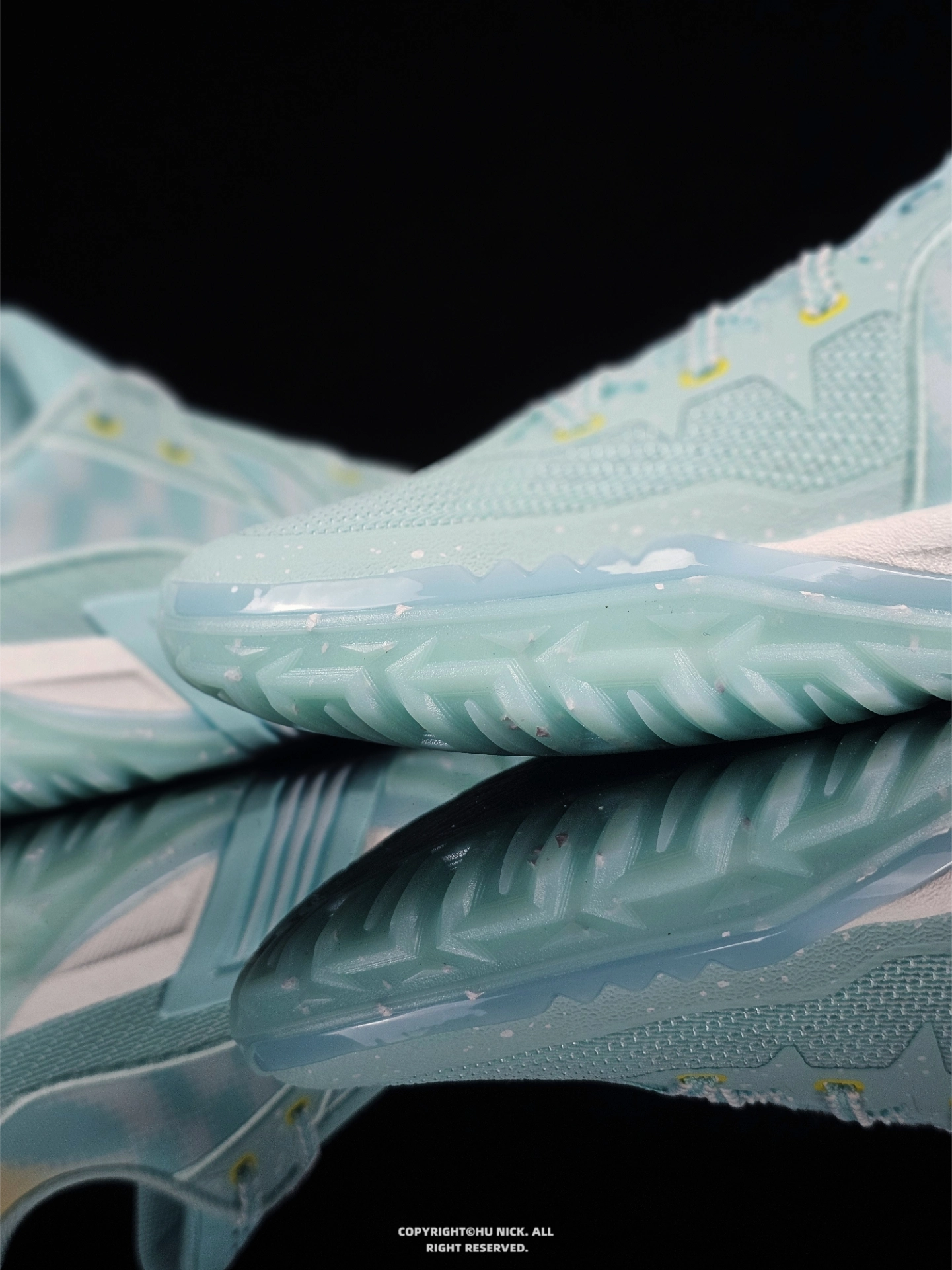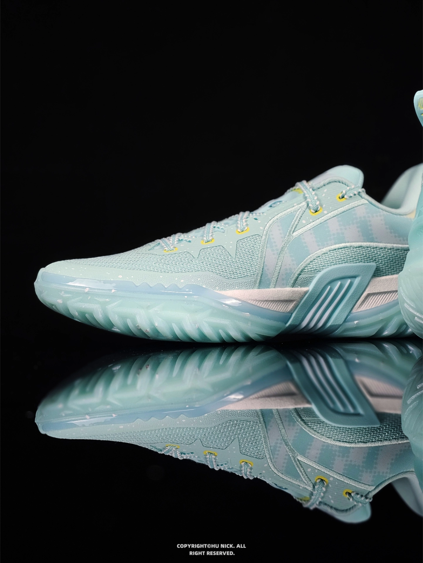 与桀骜3其它动物相关的配色不同,这双「水晶蛙」配色多了一些清新和灵动,通体的蓝水晶鞋身点缀着黄色,配合泼墨的水晶大底也与水晶蛙的色彩特征相呼应,整体呈现出清澈自然的观感体验。 作为主打外场的实战鞋我觉得这双桀骜3是很适合学生党们实战的,大底的TUFF OS纹路很深,对于比较费鞋的学生来说耐磨防滑方面是非常棒的!三维立体的TPU结构使得整体的稳定性很不错,各种大动作都敢大胆做。全掌䨻科技中底搭...