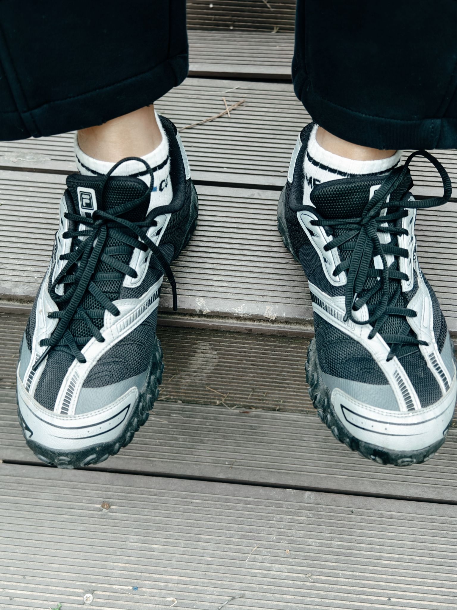 这双FILA德训鞋真的太好穿了!复古休闲感拉满,同时又带着运动活力,鞋型秀气还特别显腿细。上脚轻盈透气,软弹缓震的脚感在夏天穿清爽又舒适,百搭耐穿,品质在线。码数很正,正码拍就合适。我这双黑银配色耐脏又耐看,鞋底2cm几乎无增高,但软弹度满分,日常走路、散步都超舒服~