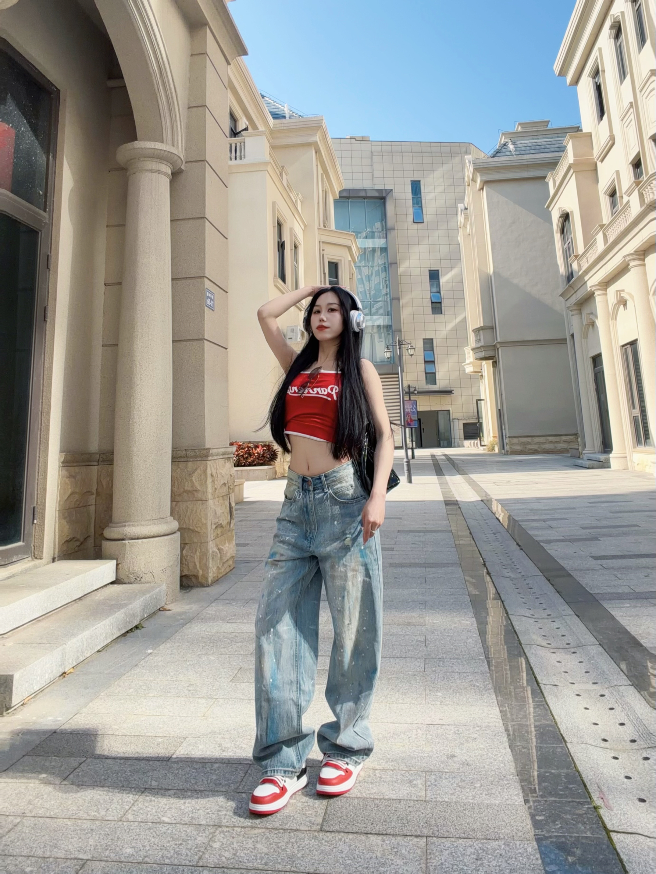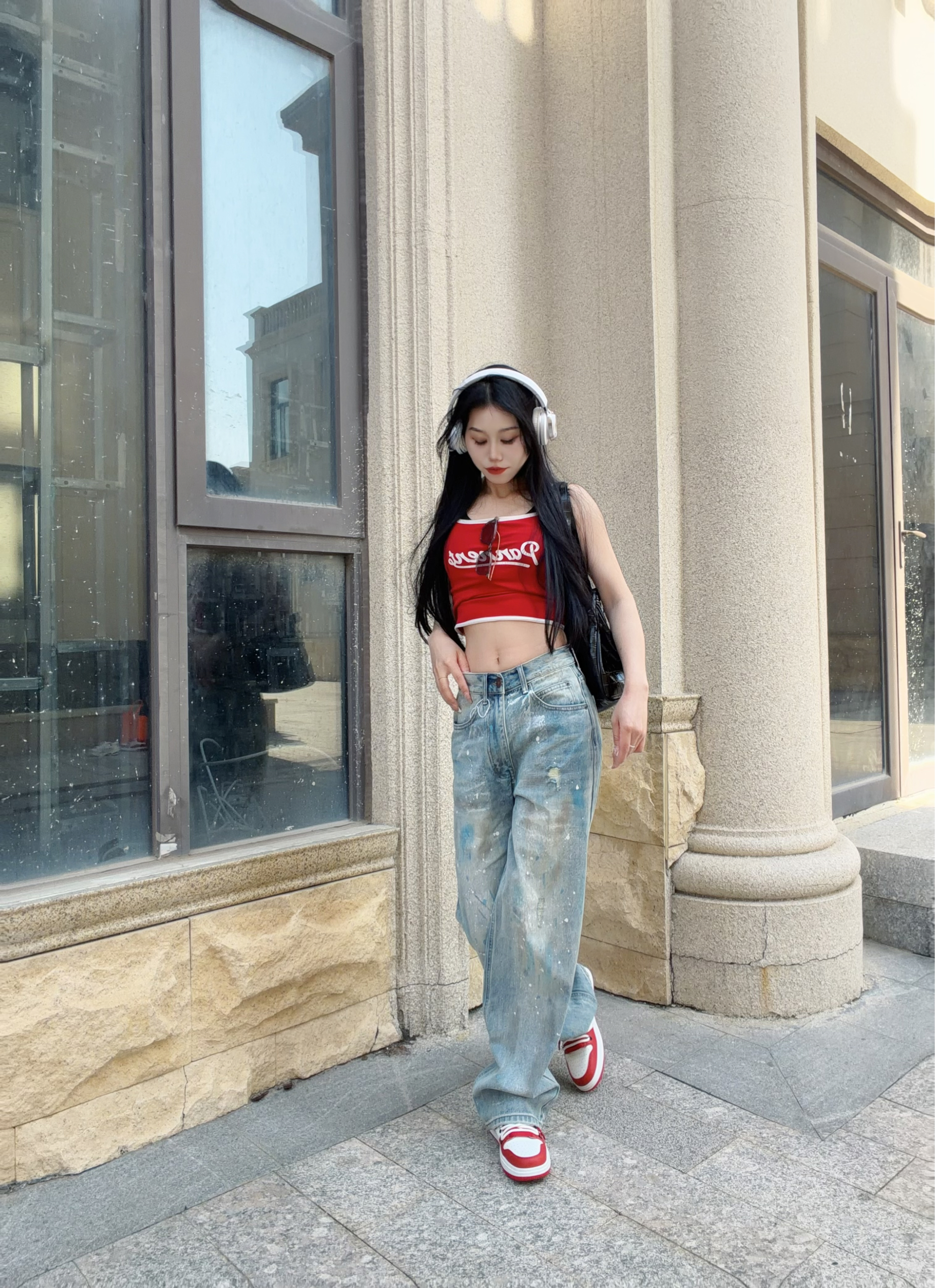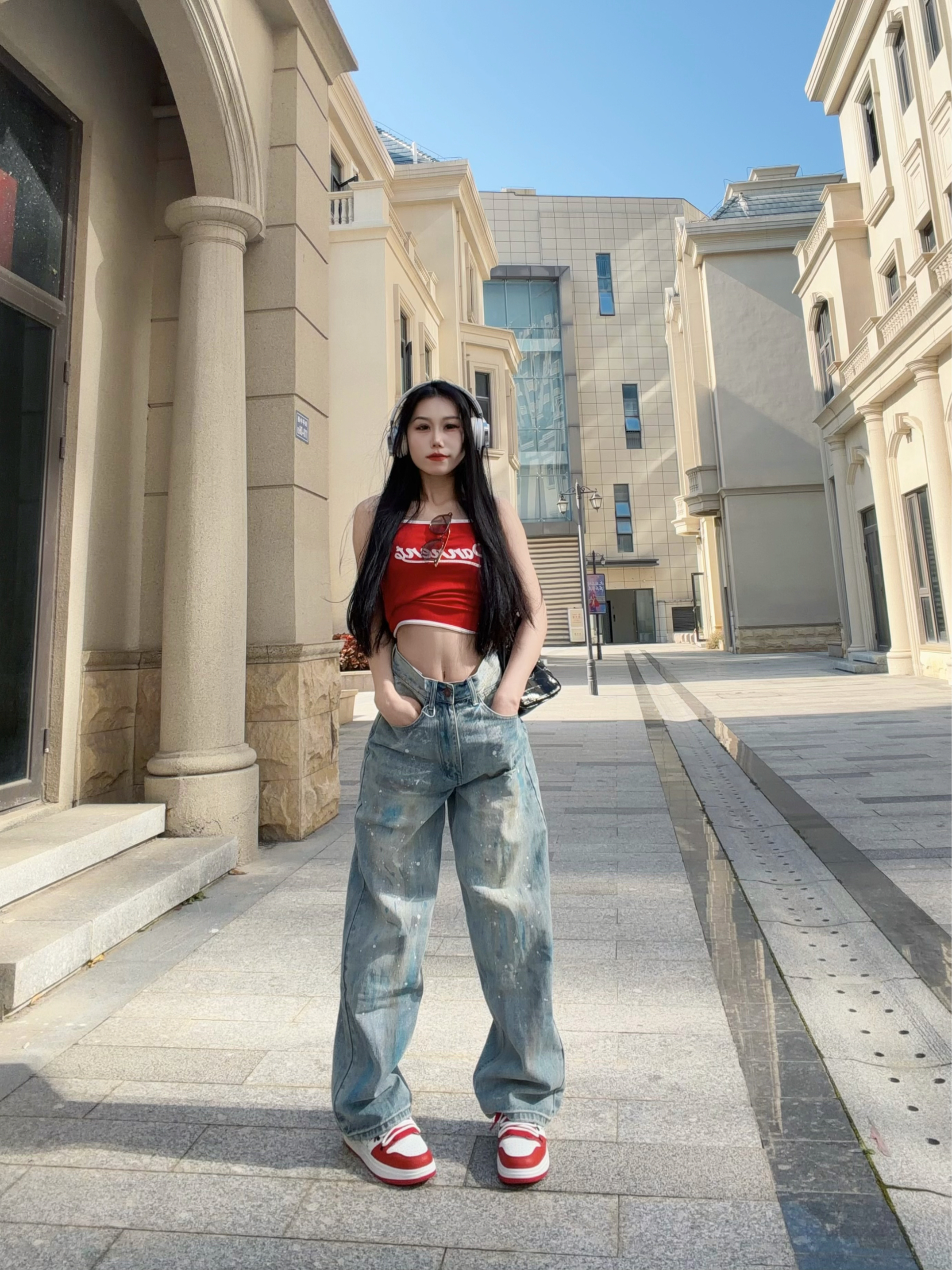 自带叛逆基因的破坏泼墨🎨牛仔裤 搭配亮色红吊带 街头感直接拉满! 整体涂鸦简直灵魂一笔! - 宽松直筒的版型 巨藏肉! 我168.100穿的S 需要系皮带~ 裤子面料很柔软舒适 垂感十足 上身很帅气 关键是拖地设计还显腿长! 整体是很时尚复古的feel 很适合春夏季节穿~ -