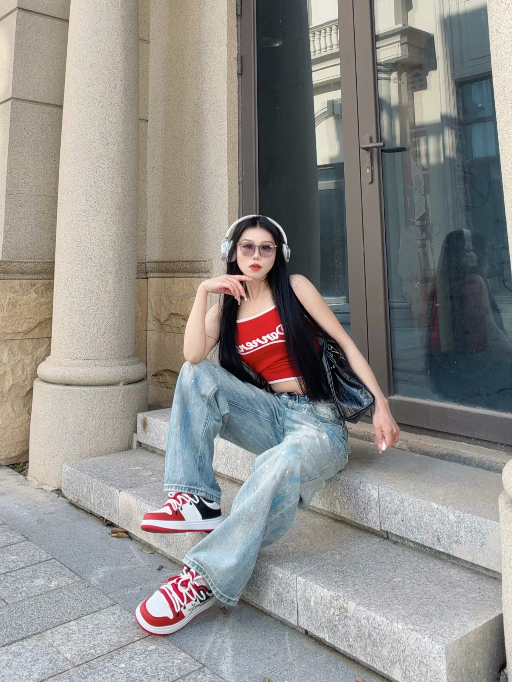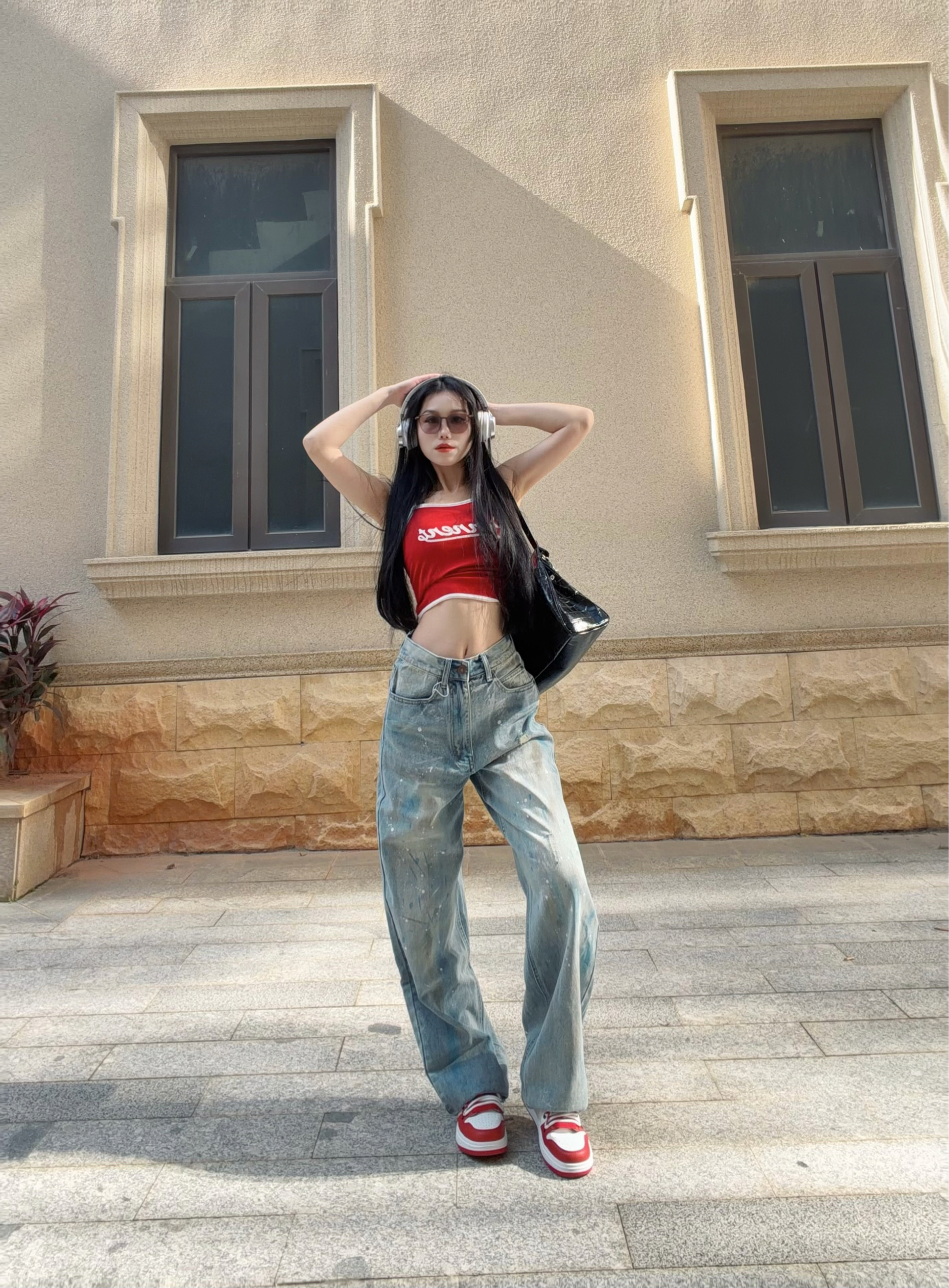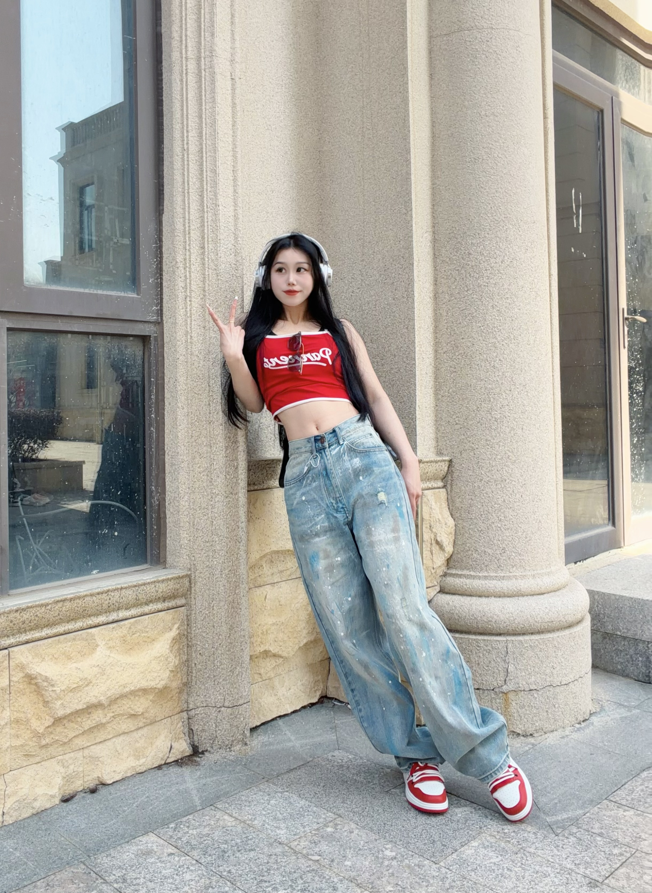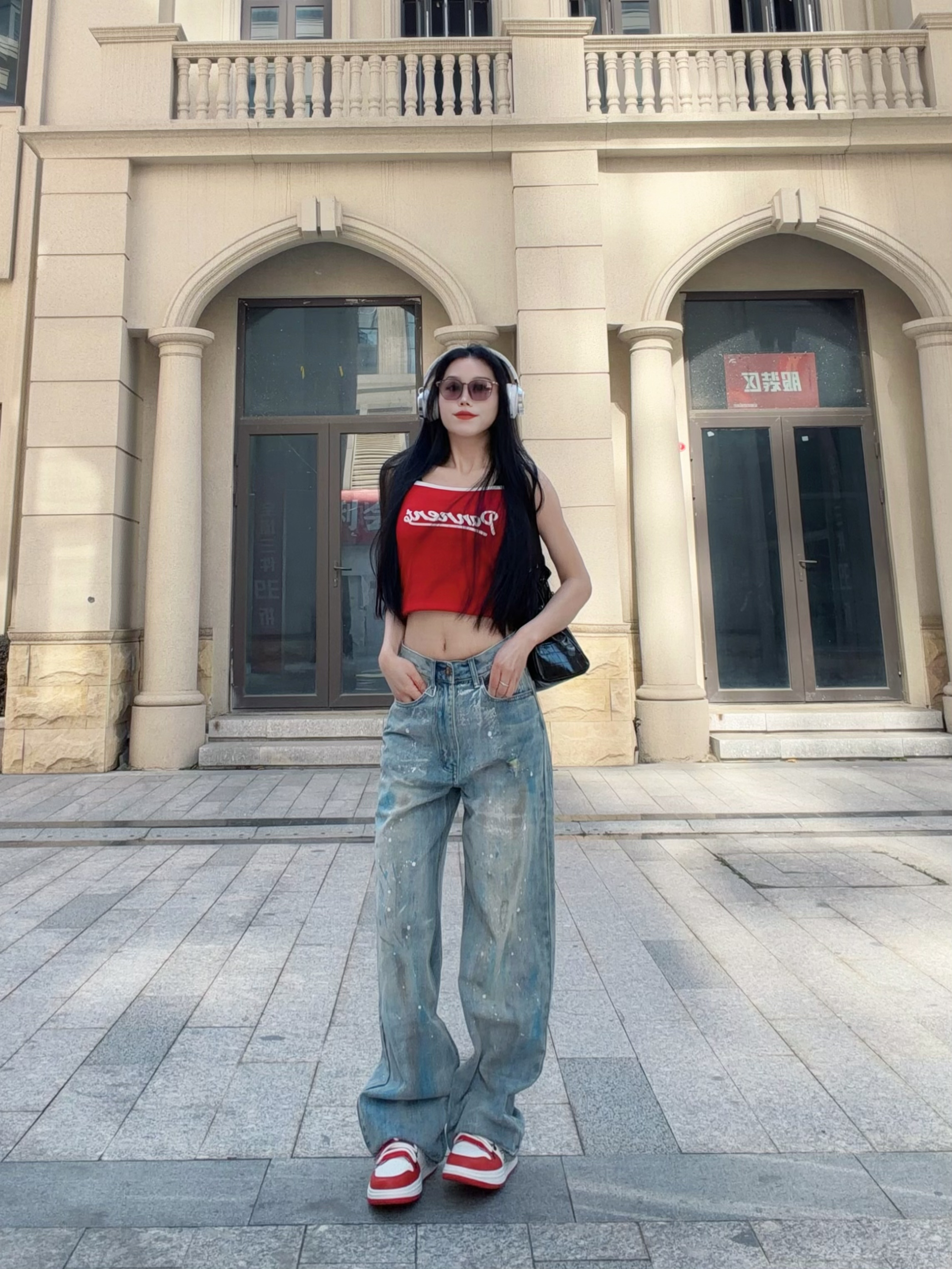 自带叛逆基因的破坏泼墨🎨牛仔裤 搭配亮色红吊带 街头感直接拉满! 整体涂鸦简直灵魂一笔! - 宽松直筒的版型 巨藏肉! 我168.100穿的S 需要系皮带~ 裤子面料很柔软舒适 垂感十足 上身很帅气 关键是拖地设计还显腿长! 整体是很时尚复古的feel 很适合春夏季节穿~ -