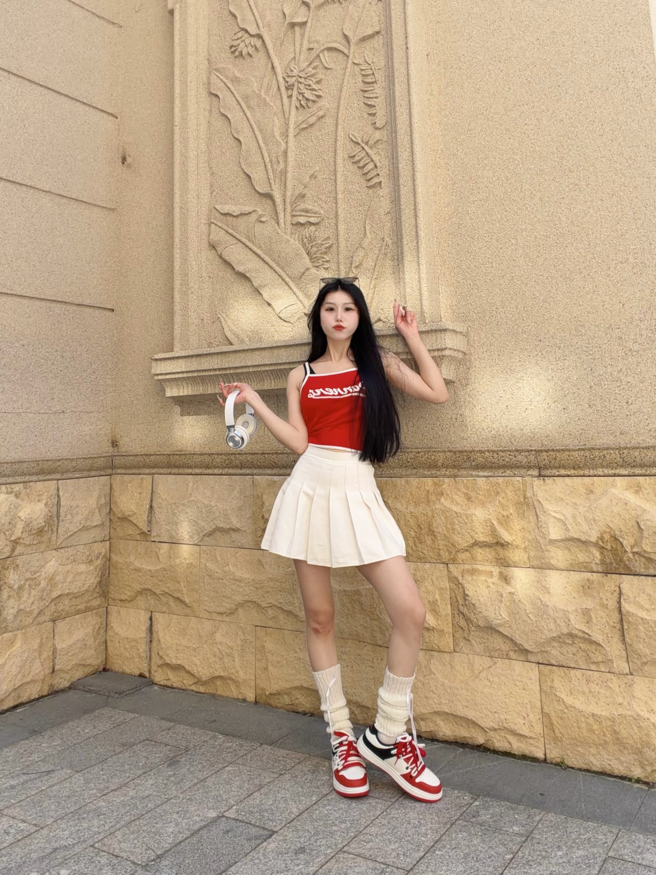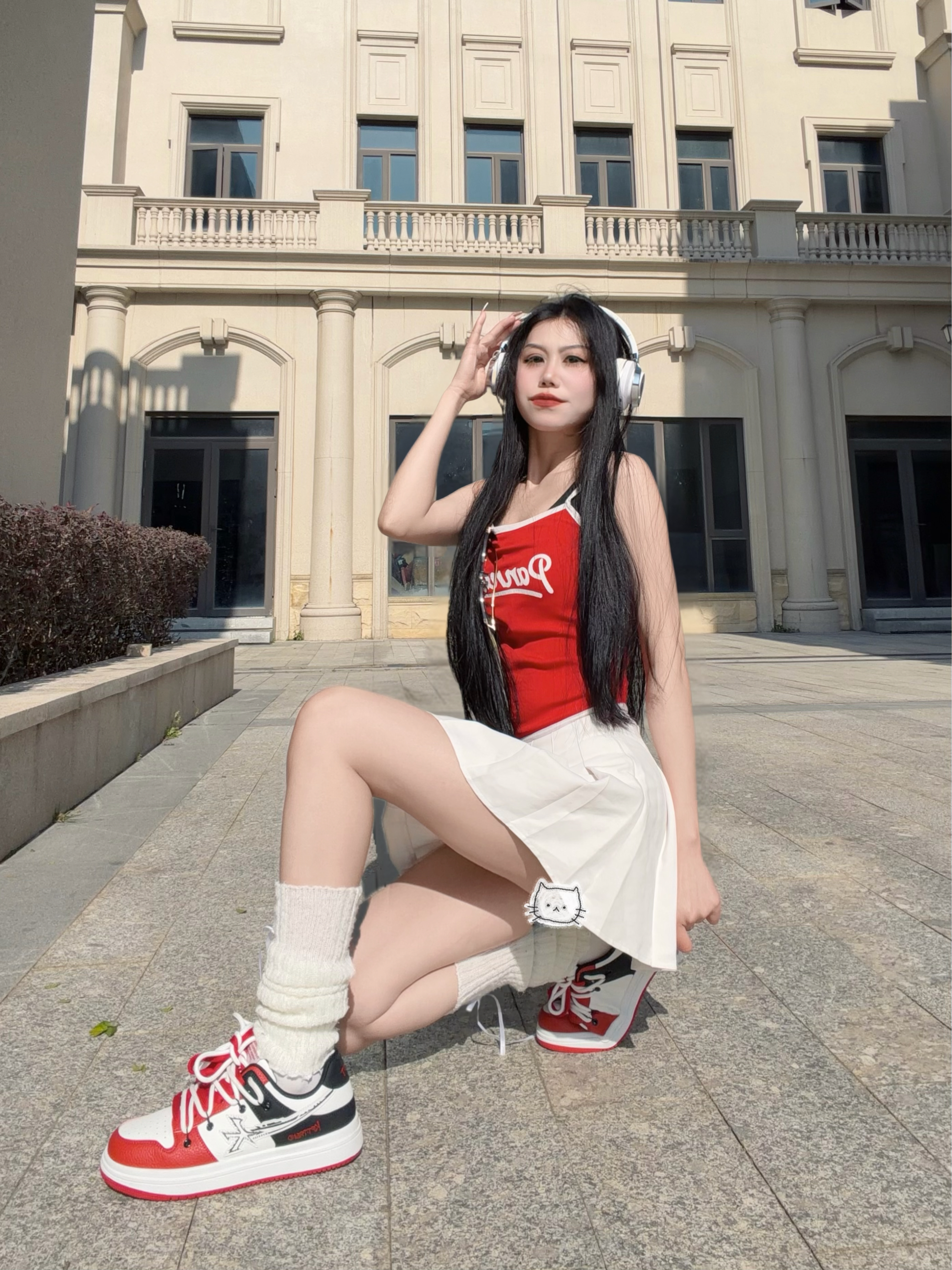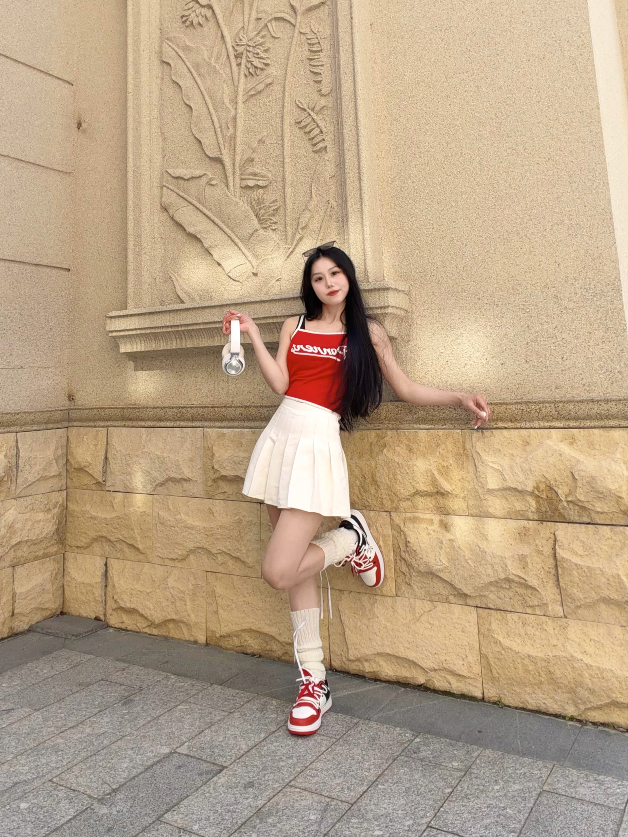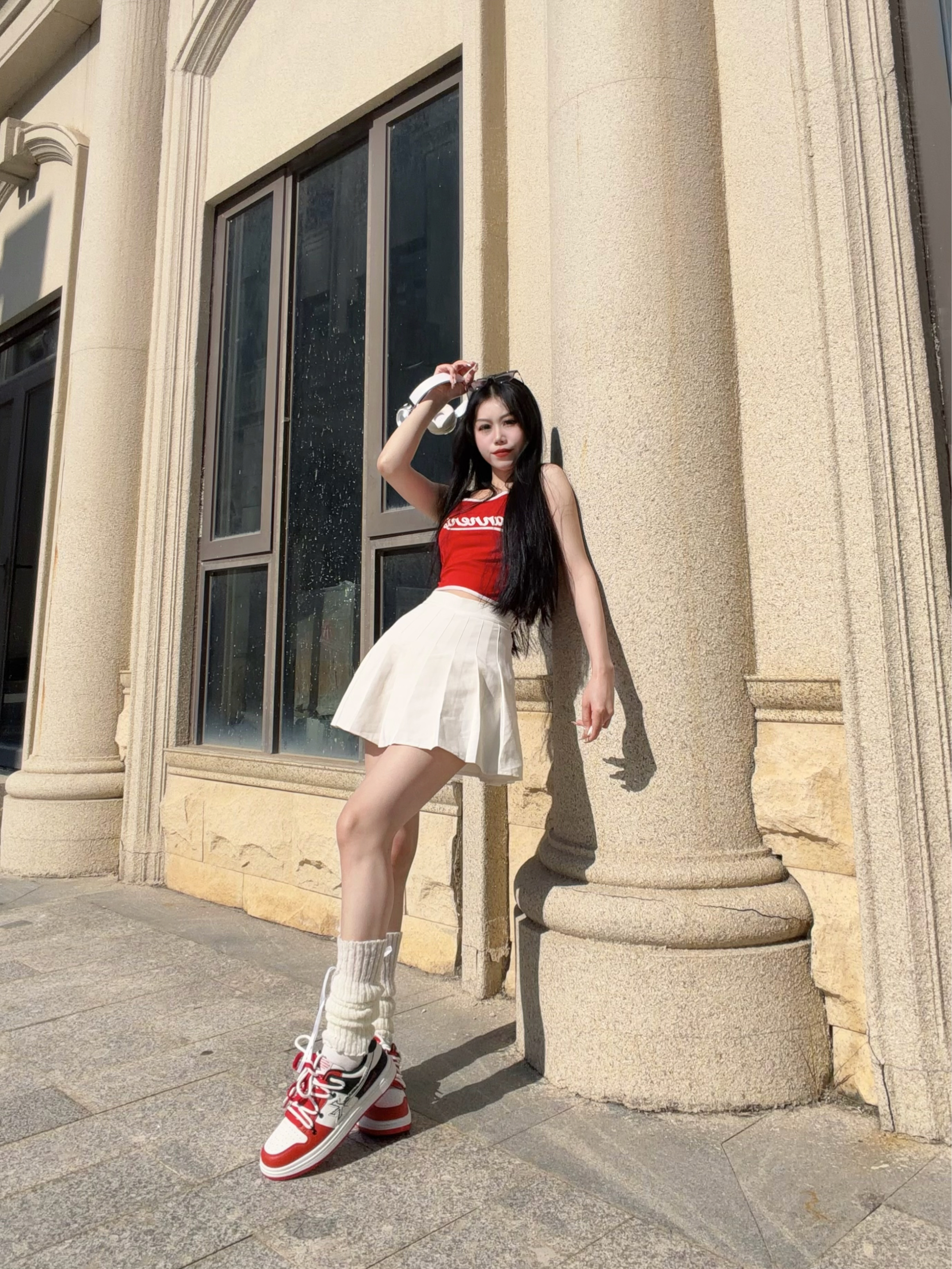 好心情与好天气同在~ 没想到广东已经是可以穿夏装的程度 微风不冷不燥 好适合户外𝙘𝙞𝙩𝙮 𝙬𝙖𝙡𝙠✨ - 今天穿搭主打白红色系搭配 红色吊带+白色百褶裙=显白神装 脚上再踩一双 KFT 双绑带板鞋 春天街头潮人那味就粗来了~ - 鞋子白红黑配色很搭今天的衣服 上脚脚感夯爆了 很舒服~ 穿着好看又不闷不挤 搭配裙子 牛仔裤 休闲裤都好看 真的很百搭不挑人 日常通勤都能穿~ -