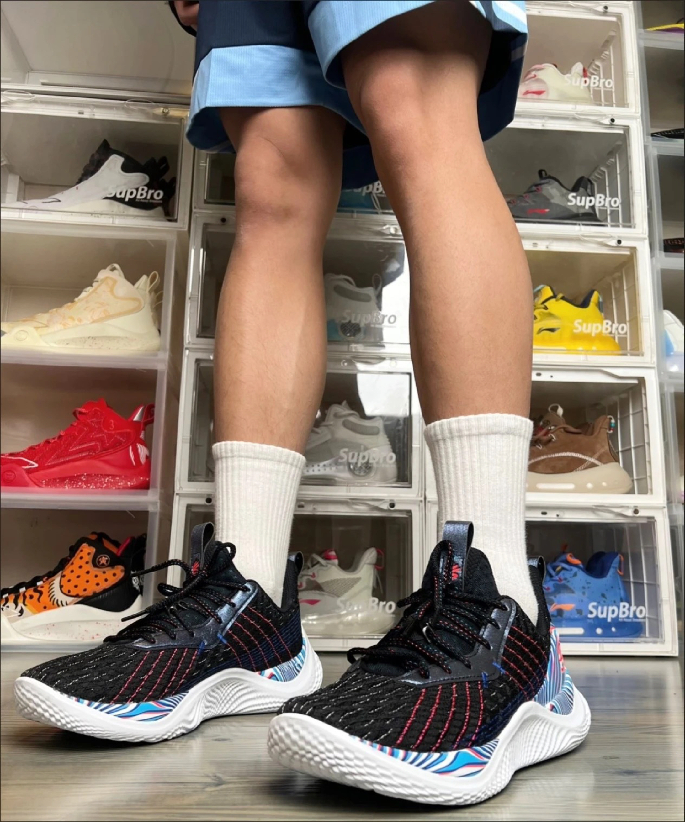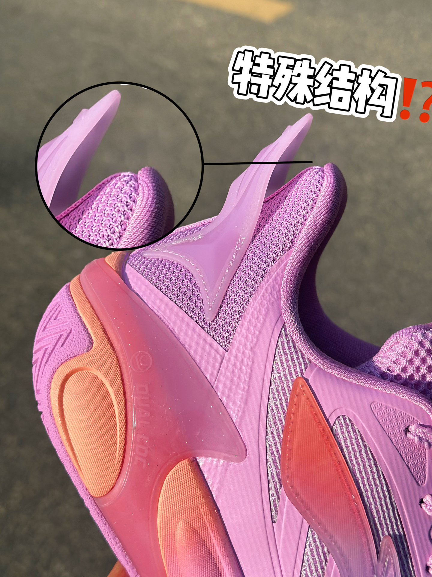 这是飓风2代的首发配色,那李宁的飓风系列,定位就是给跑动型后卫的实战球鞋,专门调校的高起翘角度,那这次配置上,依旧是全掌的䨻+lightfoam 框架 但宁子是首次用到了“龙脊科技底纹"[狗头_blue],就是纹理更丰富的TUFF RB 橡胶,抓地上了一个level!另外就是把利刃6身上的PENTA-S剪切应力支撑系统搬了过来,也是为了提供启动爆发反馈的。另外这次鞋垫也是超临界发泡的,改动还是蛮...