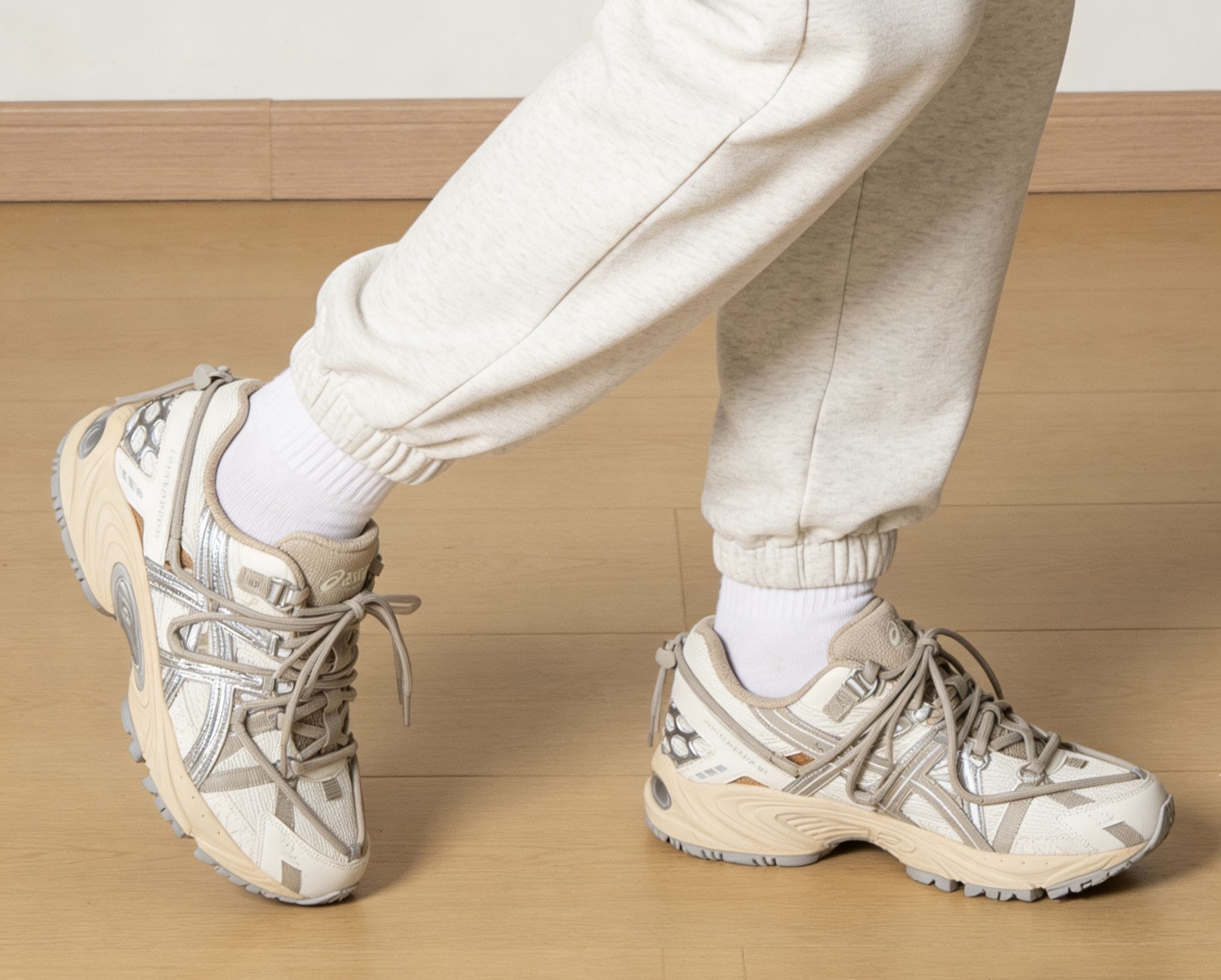 谁懂啊!这双Asics GEL-KAHANA TR V2真的长在我审美点上了🥹 奶fufu的米杏色鞋面+银色线条拼接,自带复古机能滤镜,不管是搭牛仔裤还是休闲裤都超绝! - ✨ 颜值亮点:多层次鞋带设计+后跟蜂窝镂空,细节感拉满,上脚秒变街头潮人,温柔又不失个性 - 👟 脚感体验:GEL缓震科技加持,走路久站都不累,户外通勤都能hold住 - 🤍 百搭属性:低饱和色系巨显白,小白袜+牛...
