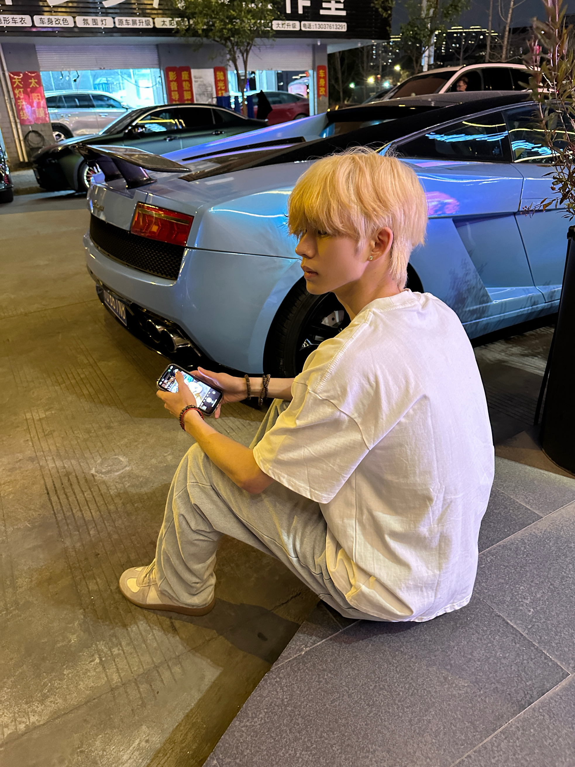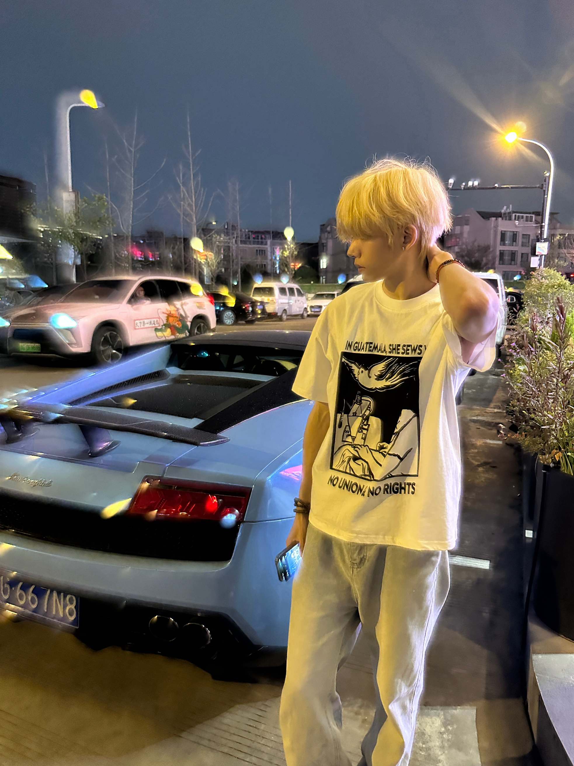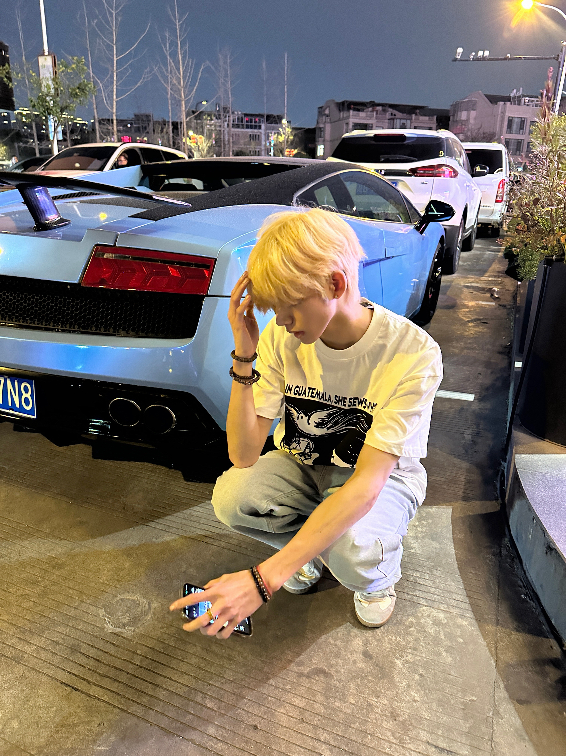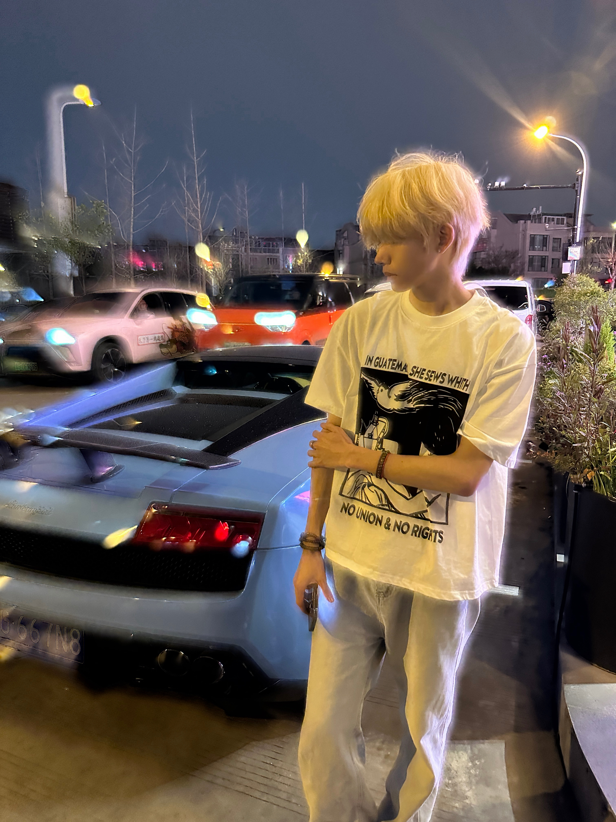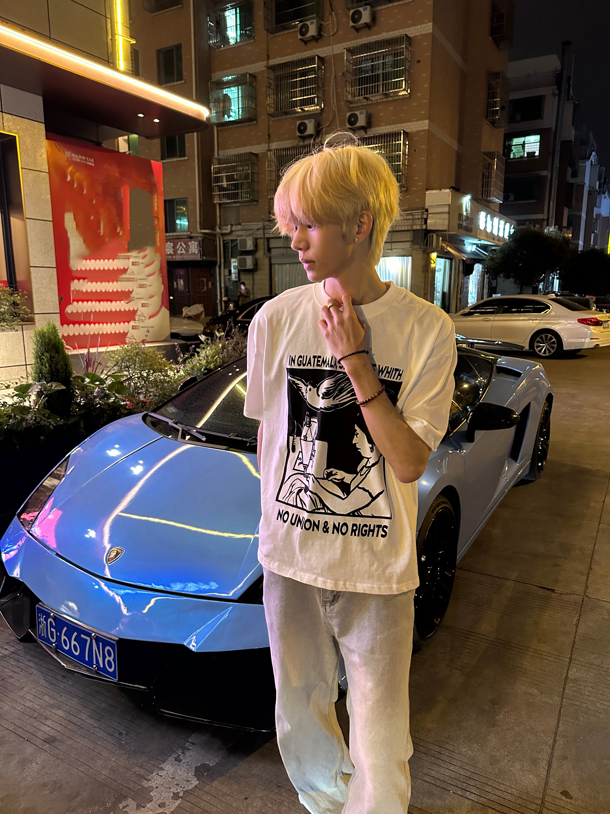 虽然是别人买的停在路边 感谢小蓝陪我走过的10分钟 路过还是忍不住要回头看 白色的短袖很有少年感 搭配水泥黄的牛仔裤 这一身春天穿太合适啦