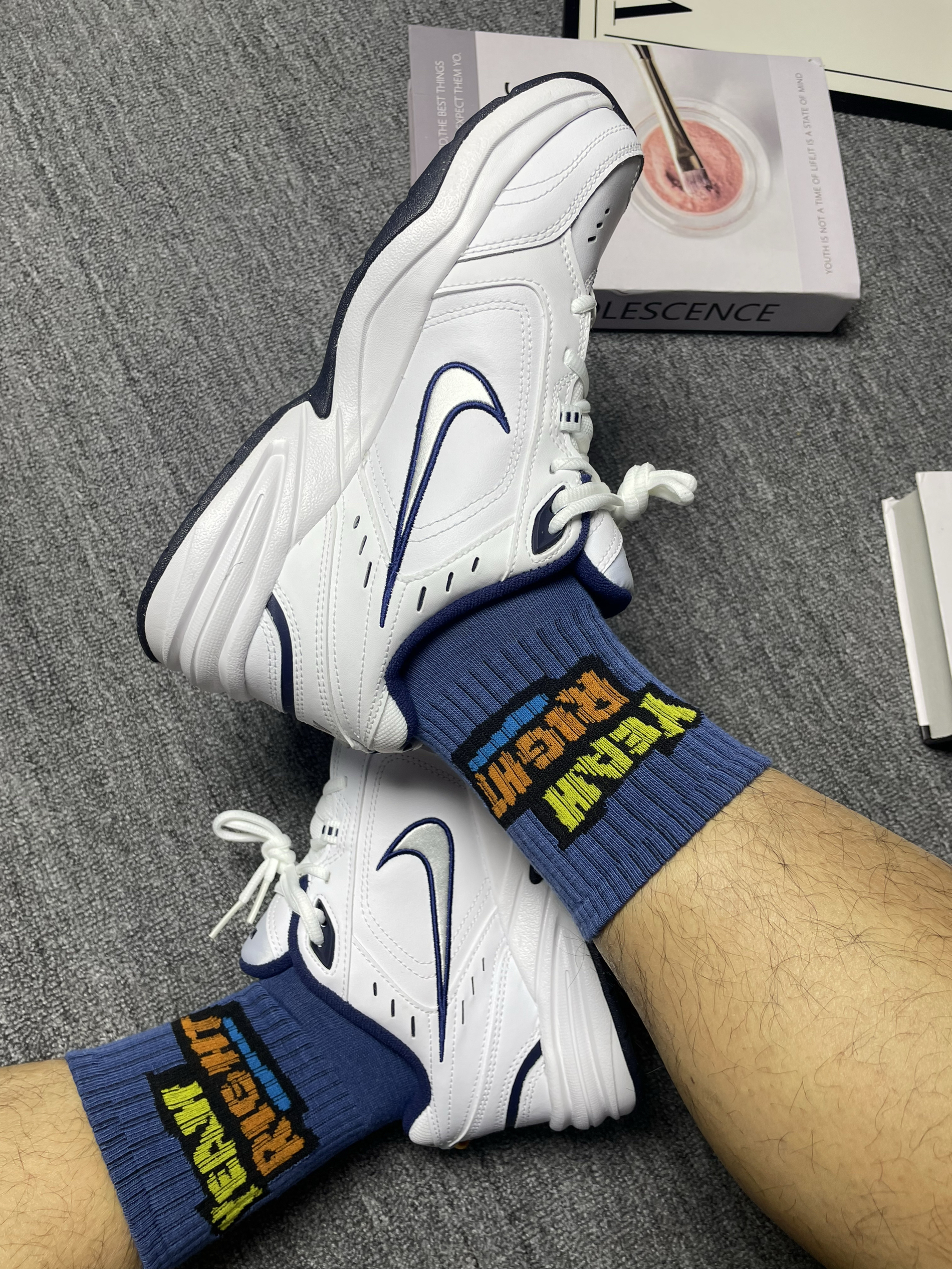 这种将复古元素与未来廓形结合的设计,实物比照片更有冲击力。特别是那层层叠叠的厚实中底,看着粗犷,实则轻盈。踩下去能感觉到明显的反馈,不是那种一塌到底的软,而是带着韧性的支撑感。对于需要长时间站立或者轻量运动的人来说,这种支撑性能有效缓解足底压力,实穿性极高。🏃♂️ 米白色调巧妙地中和了复杂线条带来的凌厉感,让它在保持个性的同时又不显突兀。即使是平时不太尝试夸张造型的朋友,穿上它也会发现意外地和谐...