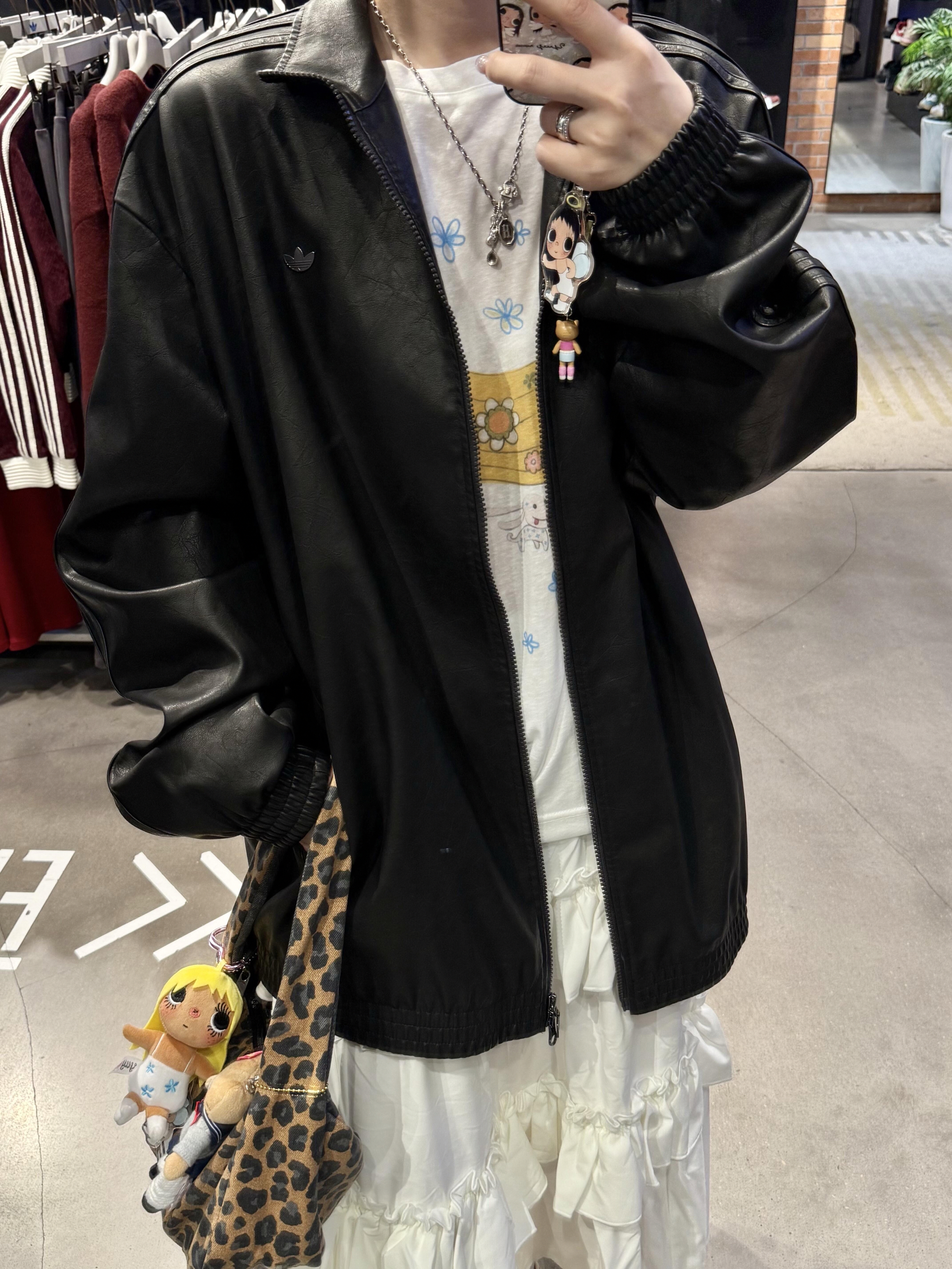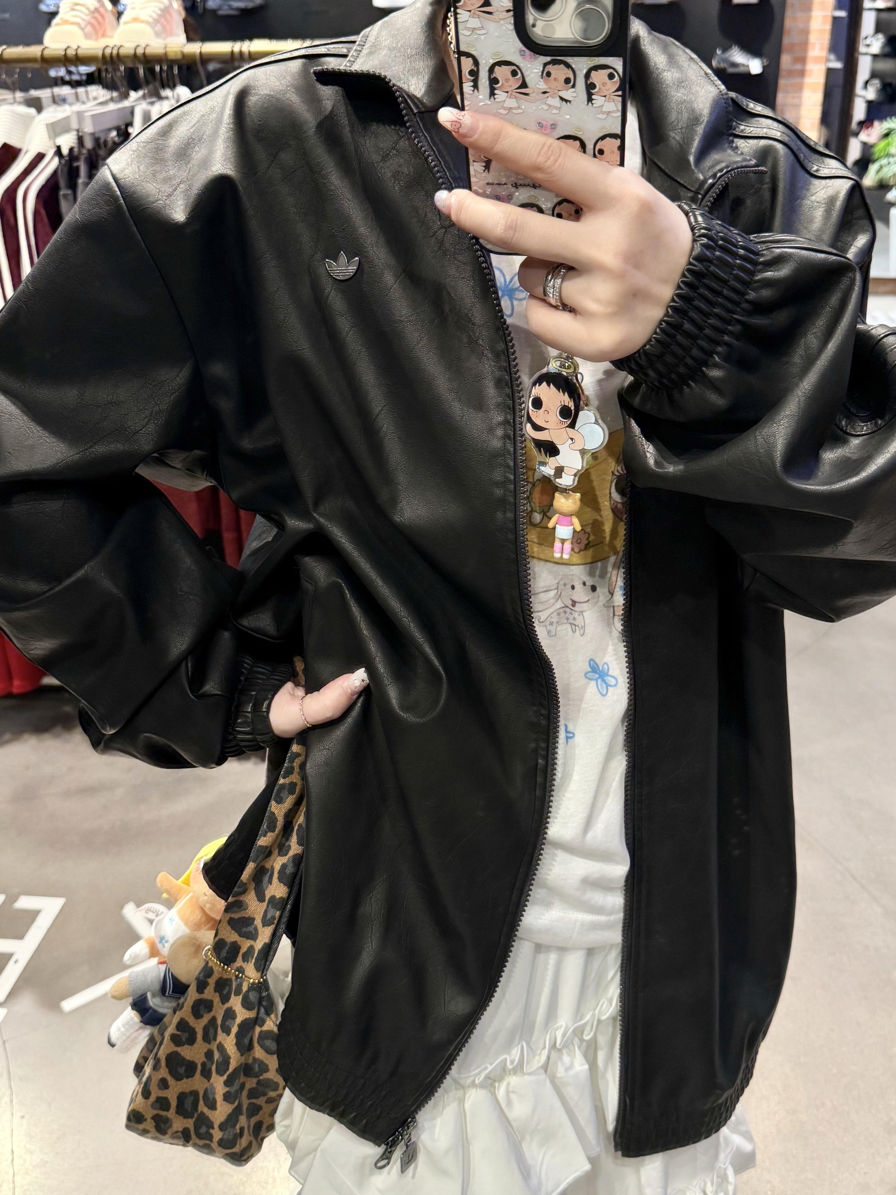 【阿迪的皮衣夹克|谁穿谁是又酷又甜的贝贝✨ 今天的OOTD直接把反差感玩明白了!黑皮衣×童趣内搭,又】,由用户 LucKy🍀 分享,来自河南。这是一篇来自识货社区的真实用户分享笔记。