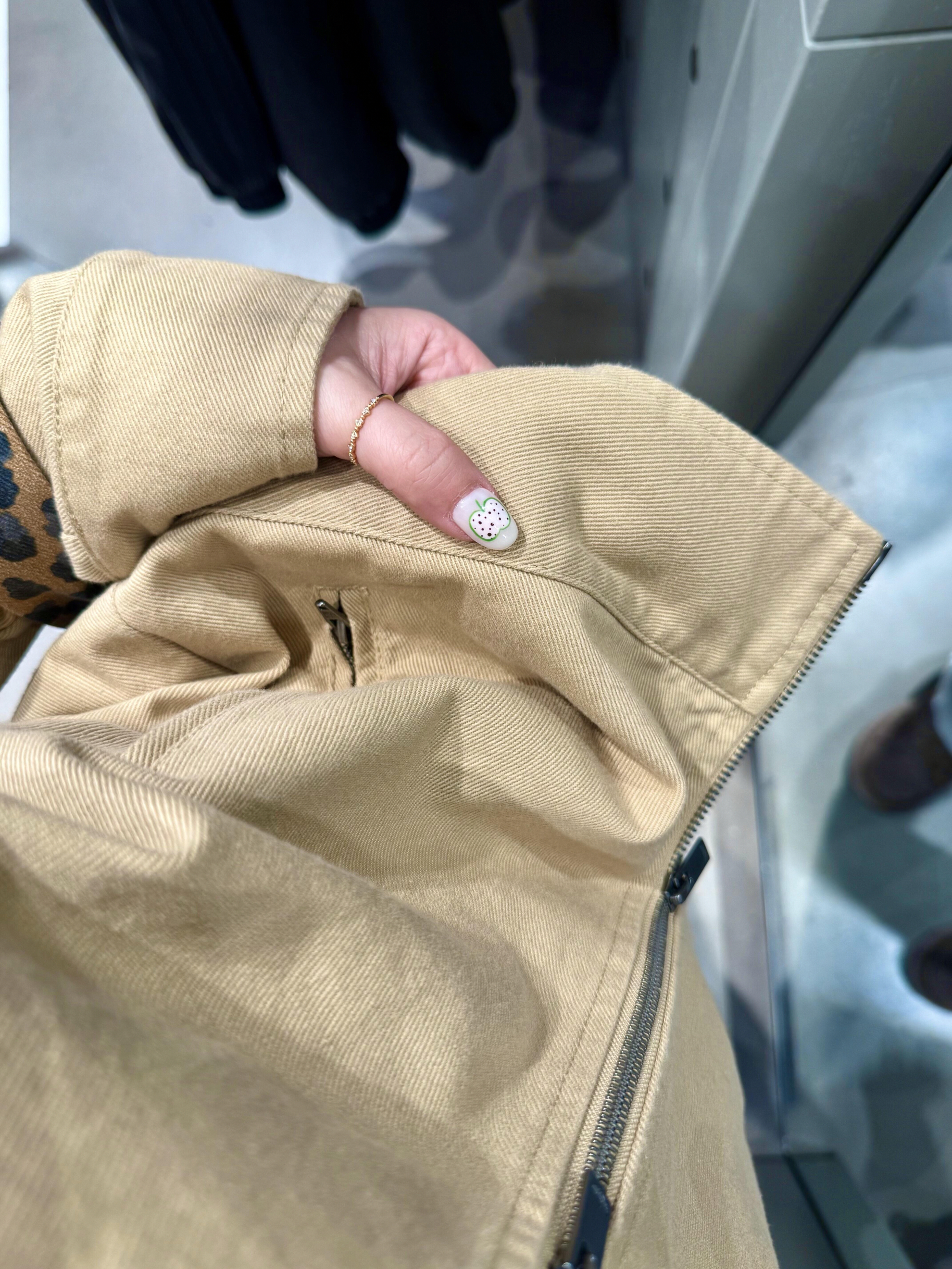 👔 穿搭与场景 • 风格适配:完美适配美式复古、Clean Fit、Cityboy等风格,卡其+酒红的配色温柔又有质感。 • 搭配参考:图中搭配浅灰阔腿裤+豹纹腋下包,松弛感拉满;也可内搭白T/针织衫,下搭牛仔裤/工装裤,或叠穿在大衣/风衣里,适配多种场景。 • 场景适用:日常通勤、周末Citywalk、朋友聚会、探店拍照都能驾驭,是「好看又好搭」的万能外套。