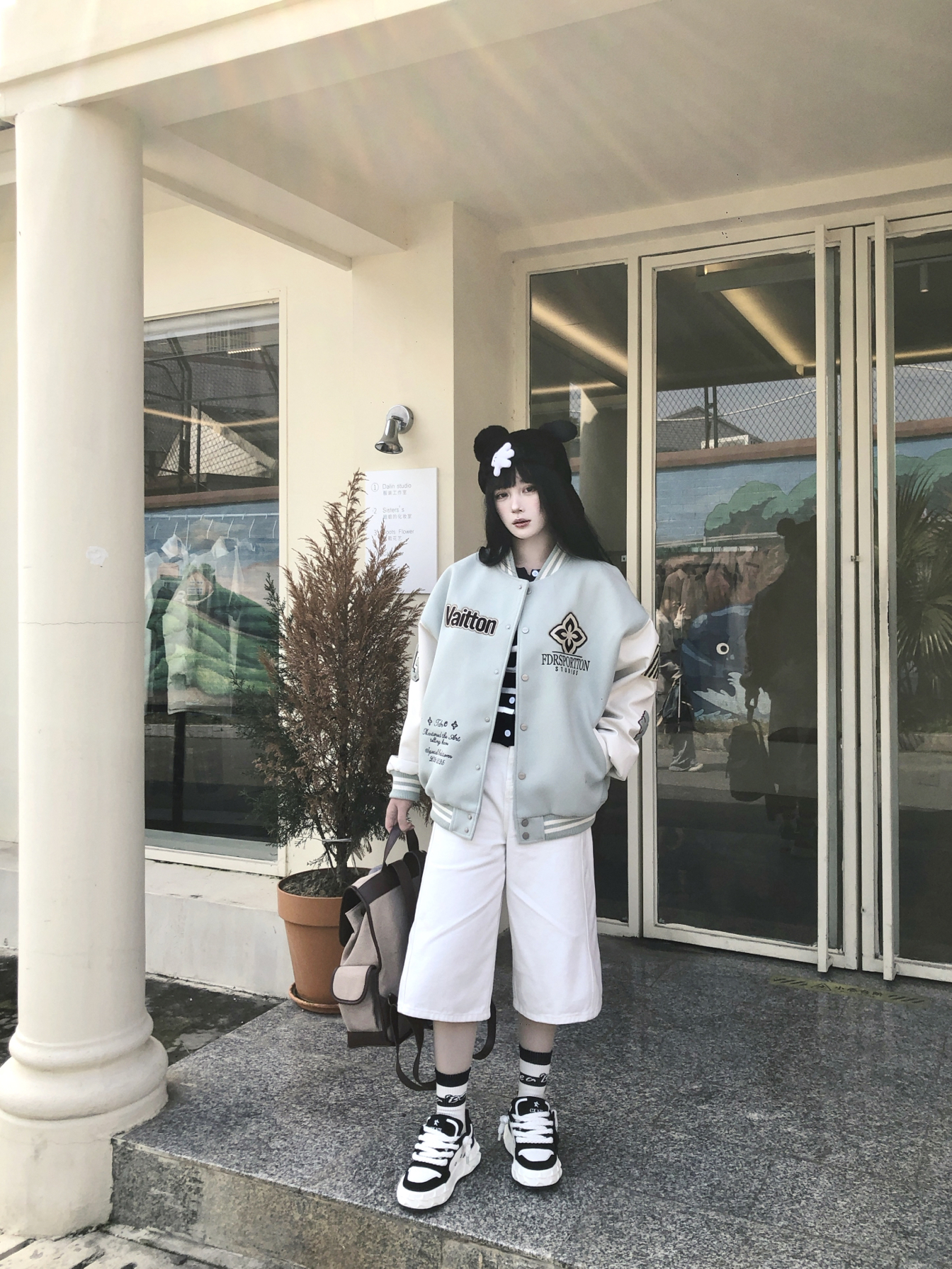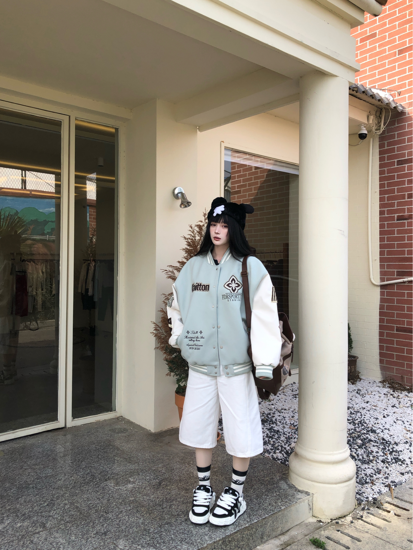 中性风穿出早春的舒适与潮流 宽松棒球服搭配七分裤阳光休闲☀️ 搭配黑白星星鞋增加潮流度😚 不仅百搭增高 作为板鞋舒适度也不错 简单拿下早春户外街头穿搭💥