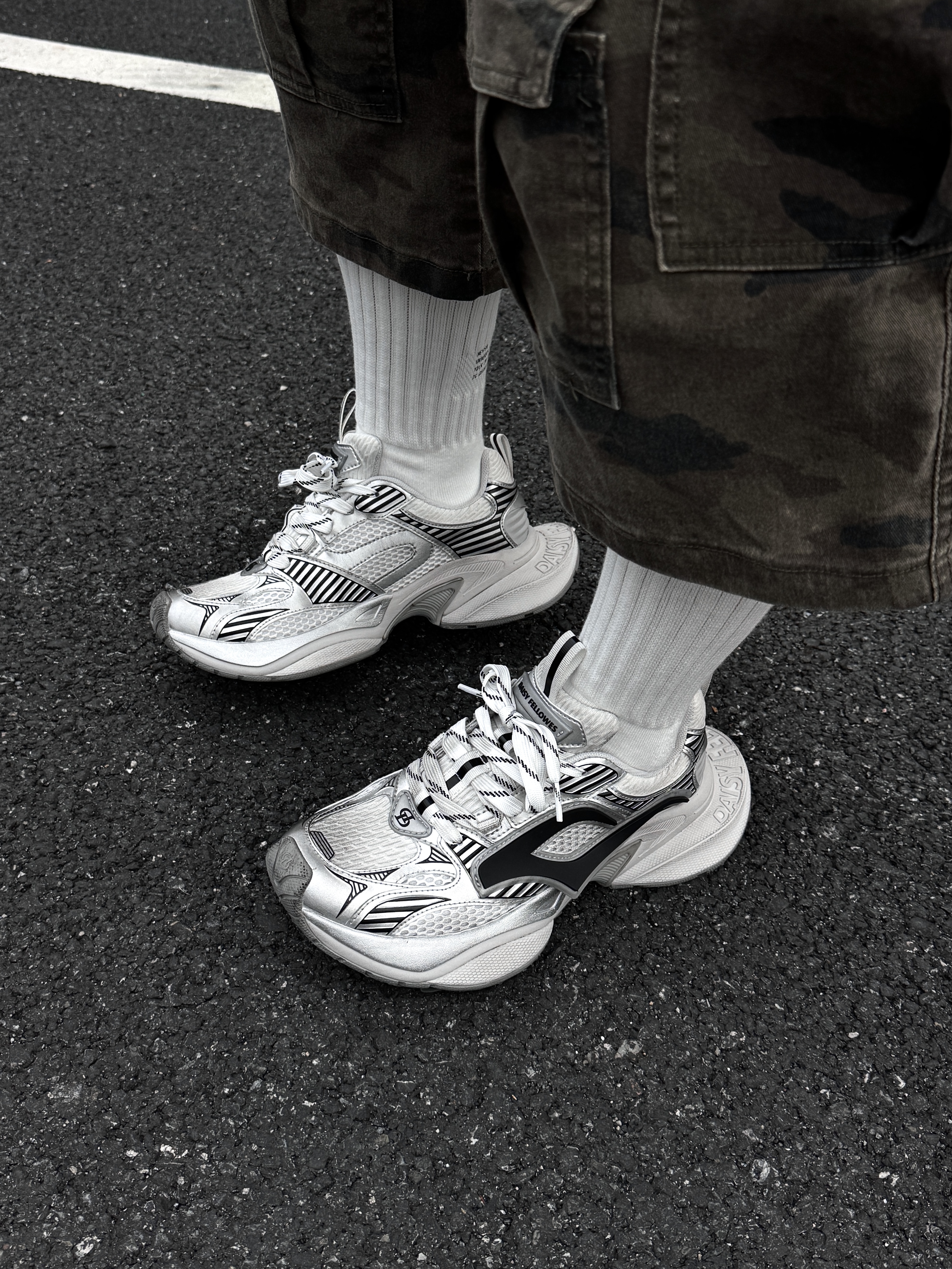 ~ 给大家分享一双 #DaisyFellowes黛西法罗 老爹鞋👟 偏先锋的造型在穿搭上面可以做一些大胆的尝试 关键还是做的网面的设计 春夏穿透气性就很不错 厚底增高还蛮明显的说真的😎 穿阔腿裤盖在鞋面下还能隐形拉伸腿部线条 复古银配色不挑性别呢 女生穿也挺帅的 不知道穿啥的时候穿这双就不太会出错❌ 尺码小建议: 徐哥平常穿的40这双40的刚好合适💡 #性价比从夯到拉 #买双新鞋哄自己上学 ...
