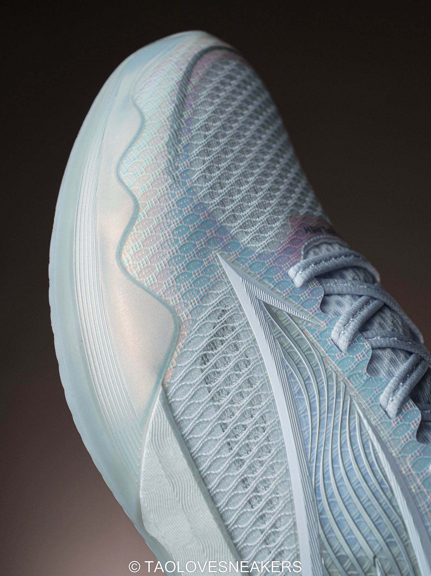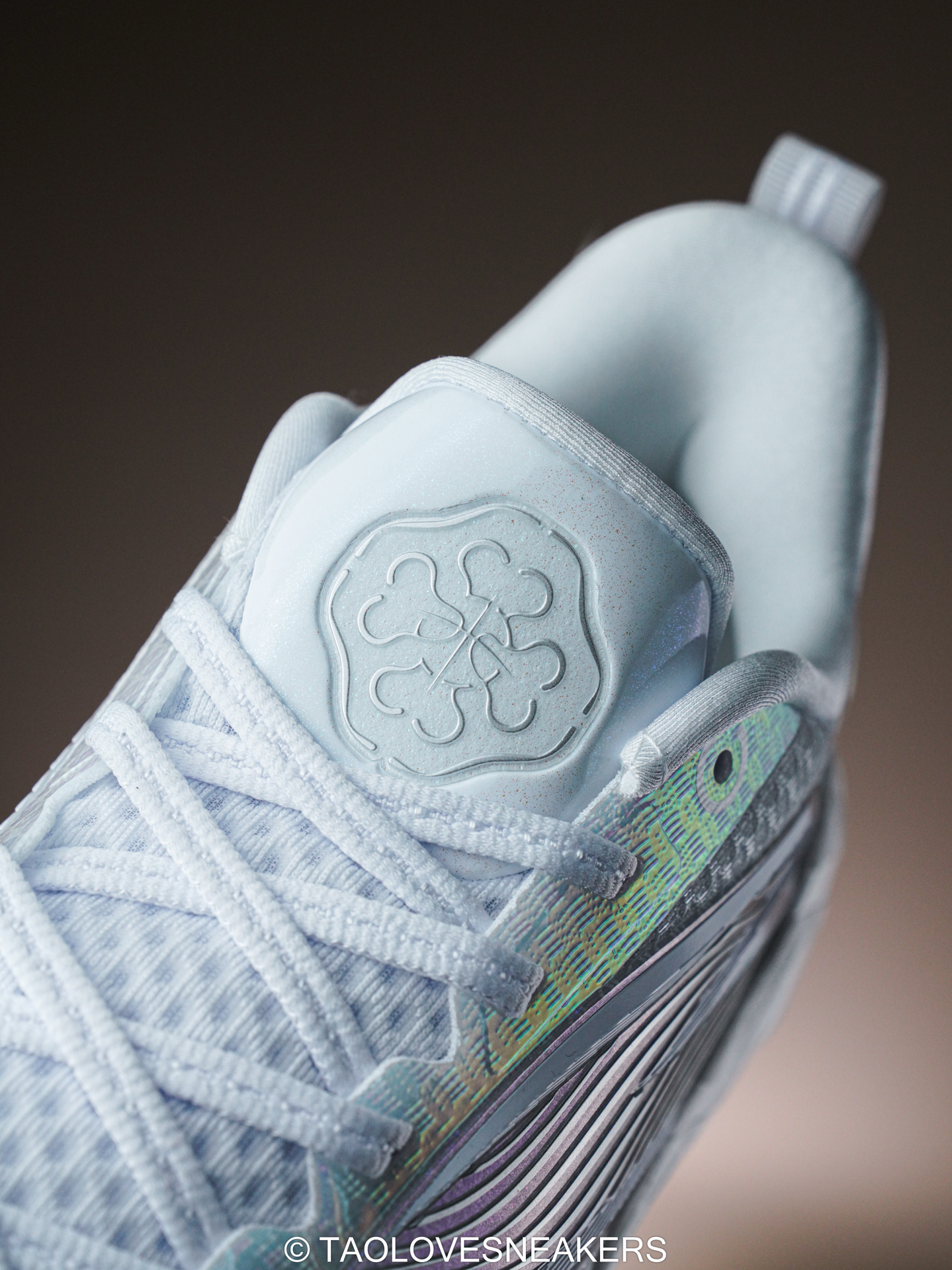 最近提前入手了安踏水花8首发配色“涟漪”,我觉得这双的颜值还挺耐看的。白色鞋身配珠光TPU点缀,确实有点水面泛起波纹的感觉,清爽干净,日常穿和打球都比较顺眼。 上脚我感觉它比前几代更偏后卫一点,整体重心更低,鞋身也轻,启动和变向会更利落。全掌氮80的脚感属于韧弹那种,不是特别软塌,160斤左右实战缓震我觉得够用。鞋面透气做得也还可以,夏天穿不会太闷。包裹、抓地和后跟稳定性都算在线,正常尺码入手就行...