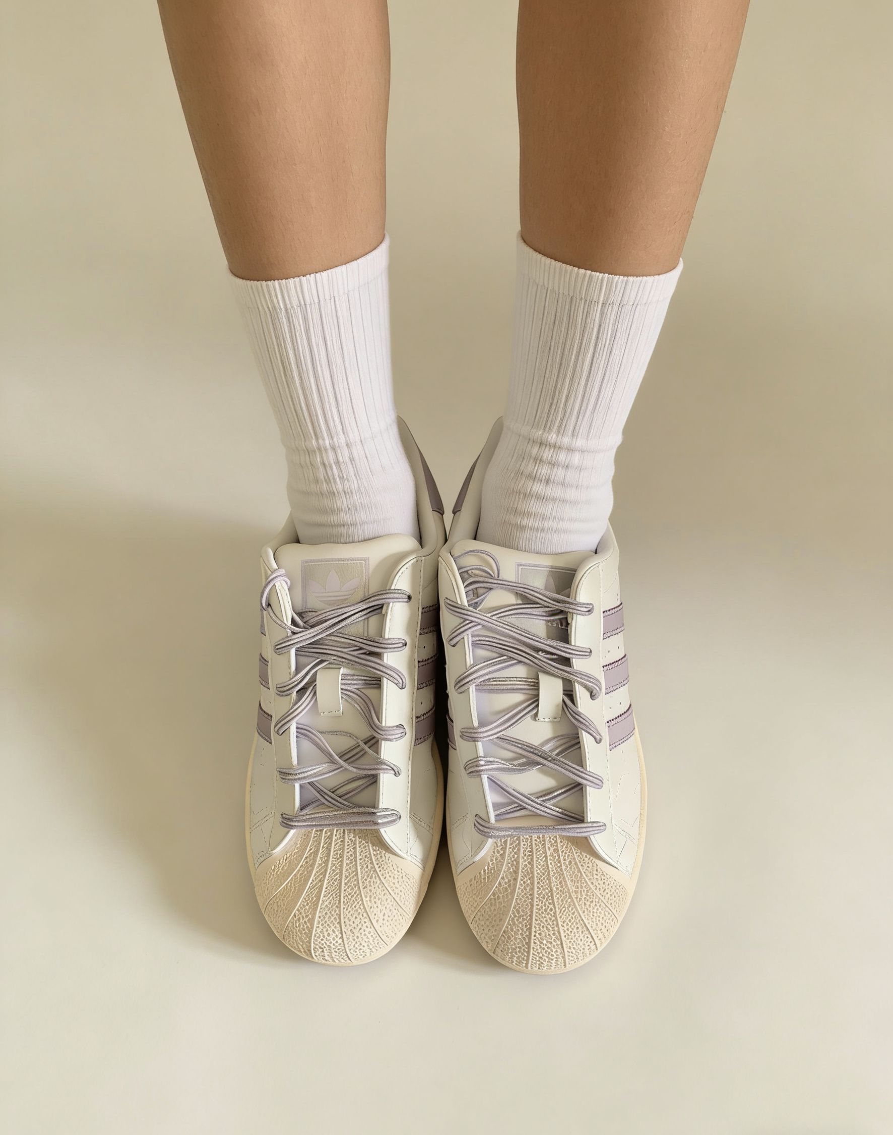 - 亮点:经典贝壳头设计+淡紫色条纹,清新又减龄,鞋型偏宽松,对脚型包容度高。