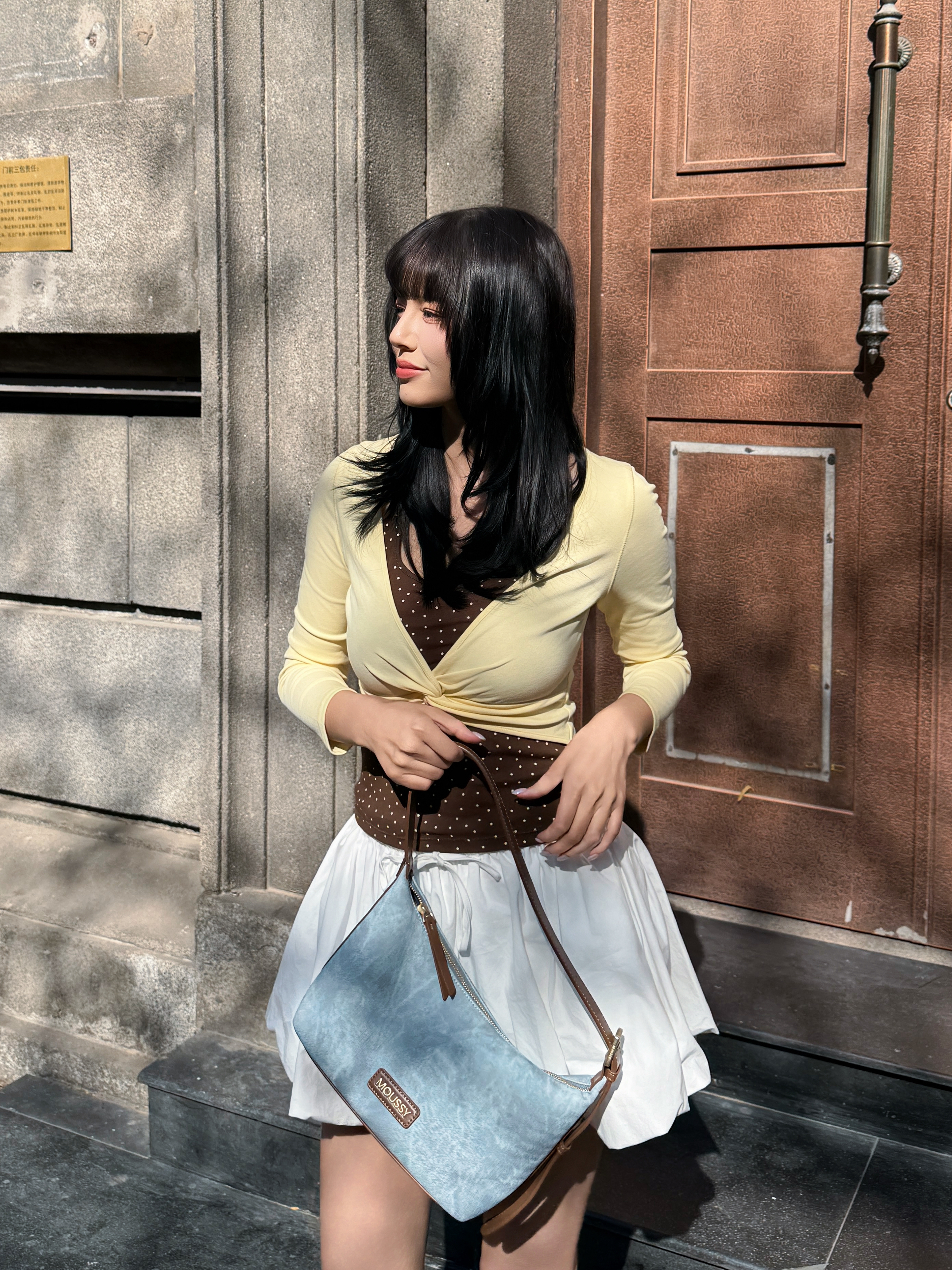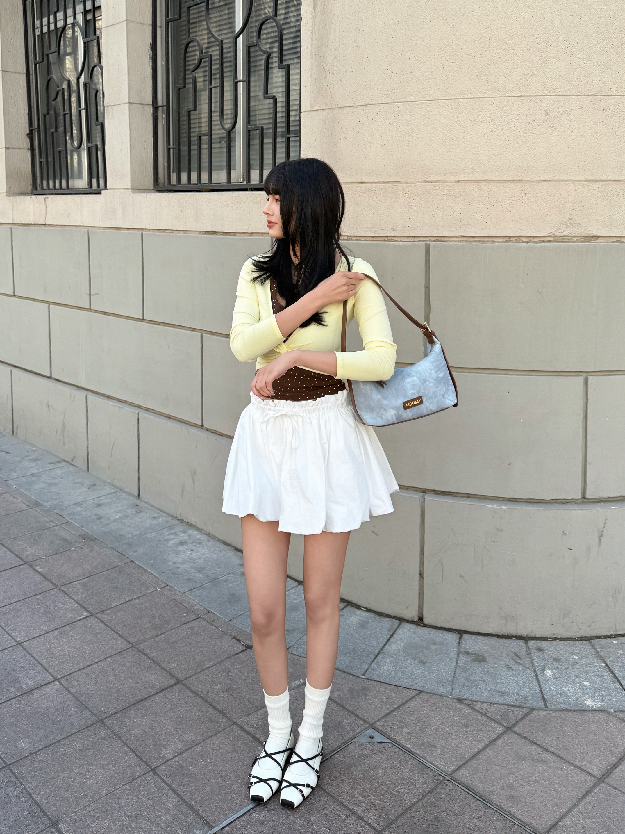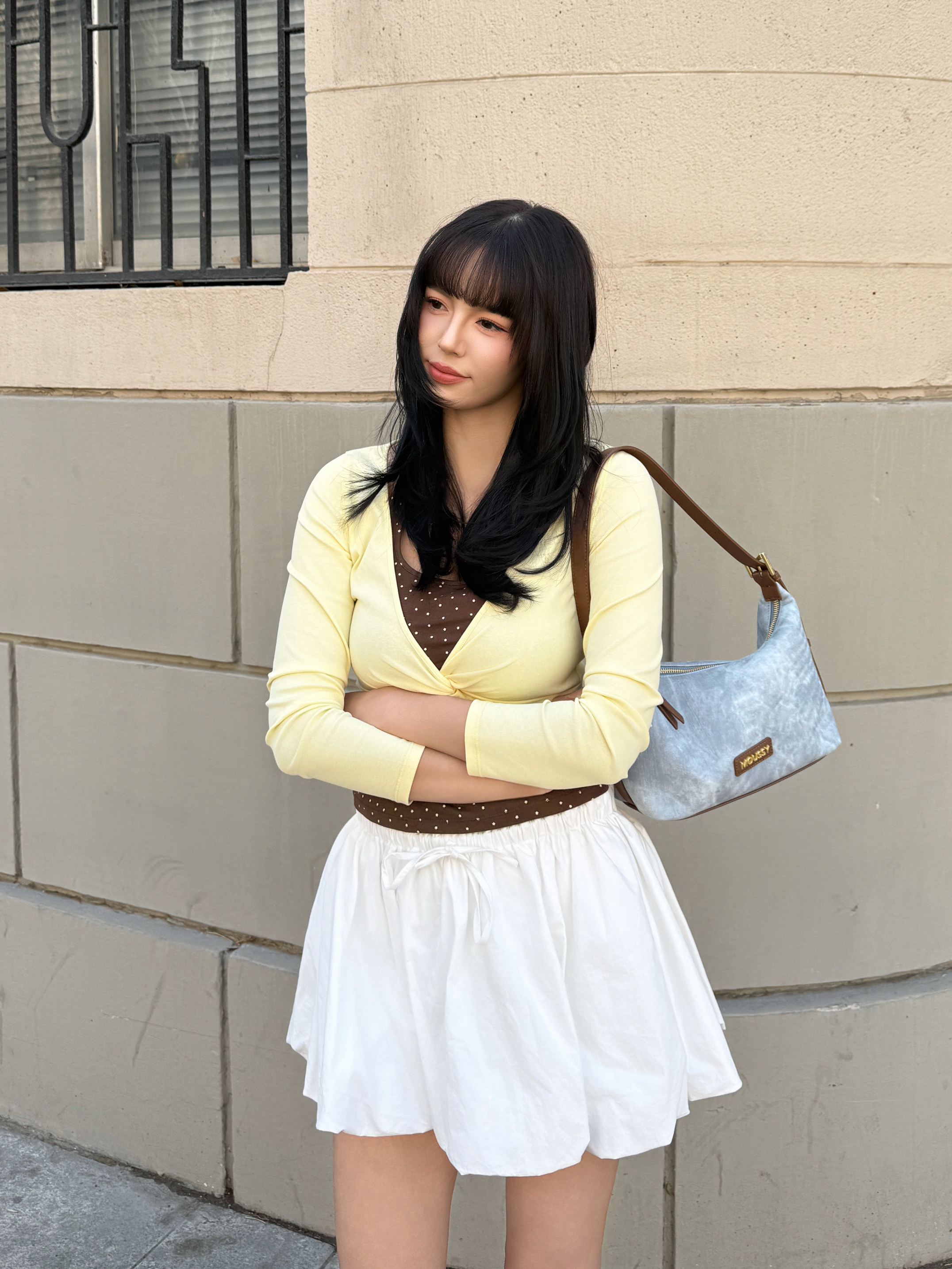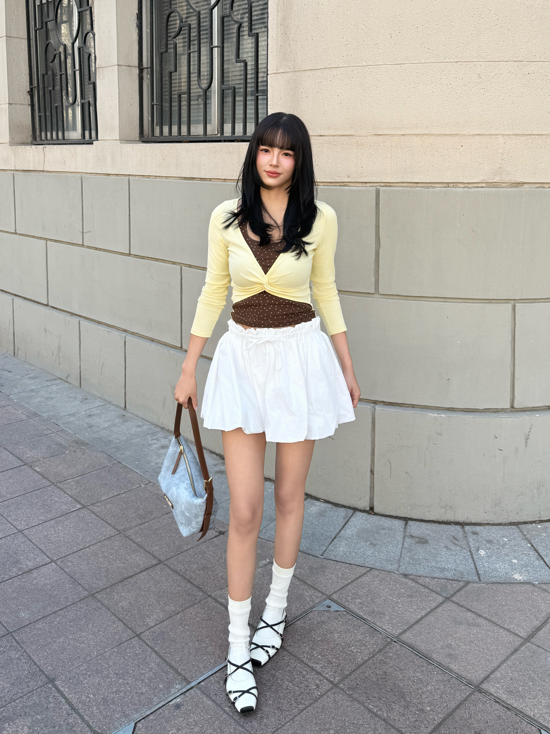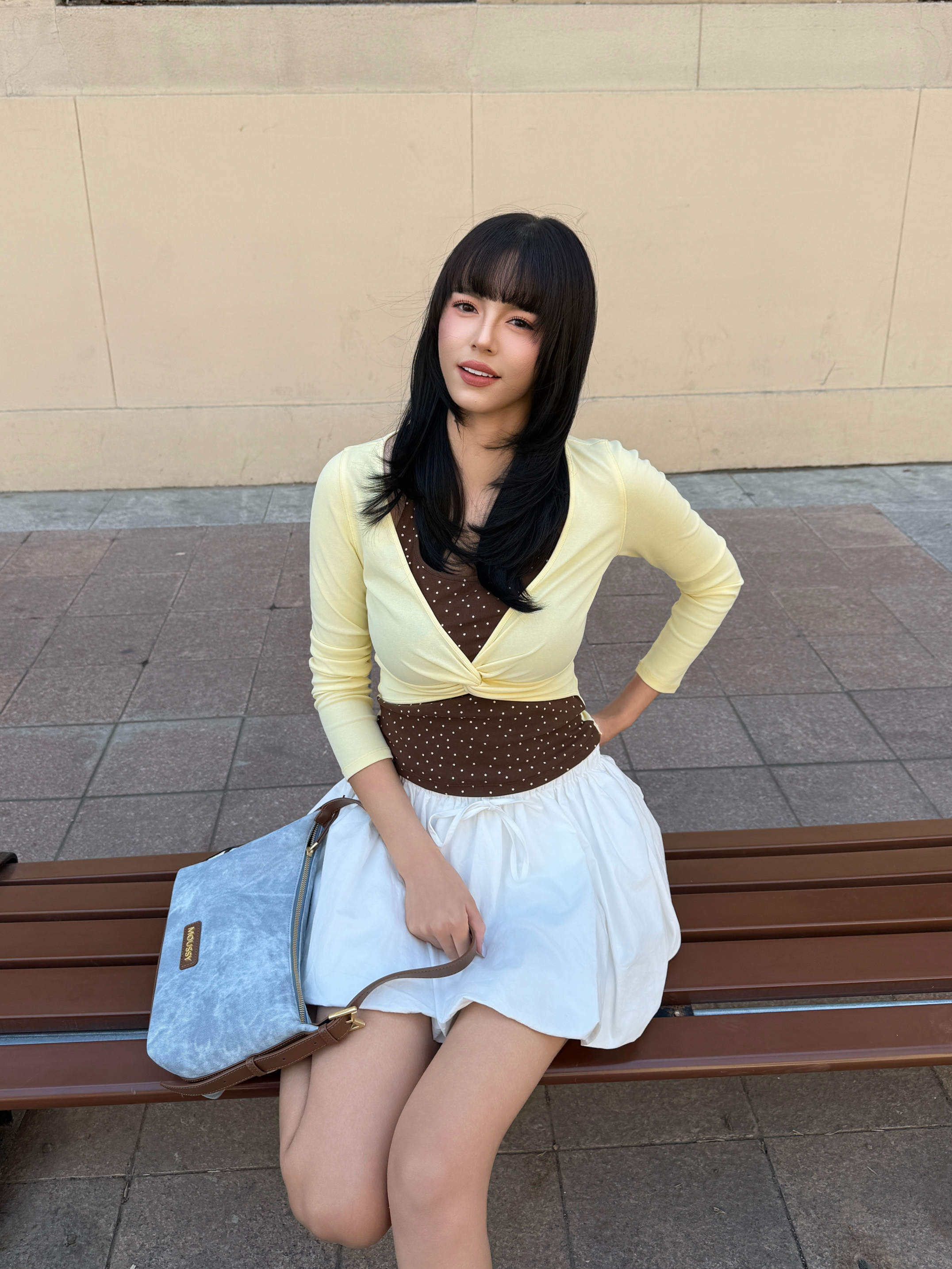 开春就爱这种韩系温柔挂的搭配~ 拒绝沉闷黑白灰,春天就要穿点彩色💛 鹅黄色波点上衣+高腰百褶裙,秒变元气少女 再搭配浅蓝包包点缀,甜妹感拉🈵 容量也蛮大的,挺能装,出去玩背着方便 这一套穿搭拍照还挺上镜📸呢,你们觉得呢?