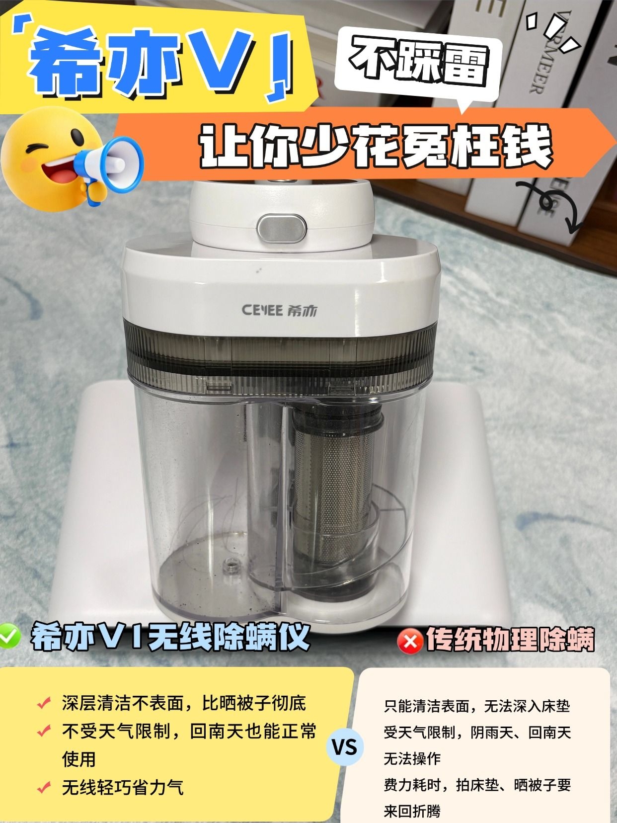 米家无线除螨仪3 Pro 春季试试给床褥来个深层清洁 春天一到,空气里漂浮着花粉、灰尘,还有看不见的螨虫,很多人就开始打喷嚏、流鼻涕、眼睛痒到受不了。特别是用敏感的朋友,早上起床可能就已经被鼻涕和红眼睛折磨得不想起床了。其实,很多敏感问题都是床、沙发、地毯里的尘螨惹的祸。 最近入手了一款米家无线除螨仪3 Pro,用了几天,发现效果真的挺惊人的。说实话,一开始我也半信半疑——家里打扫卫生一直靠吸...