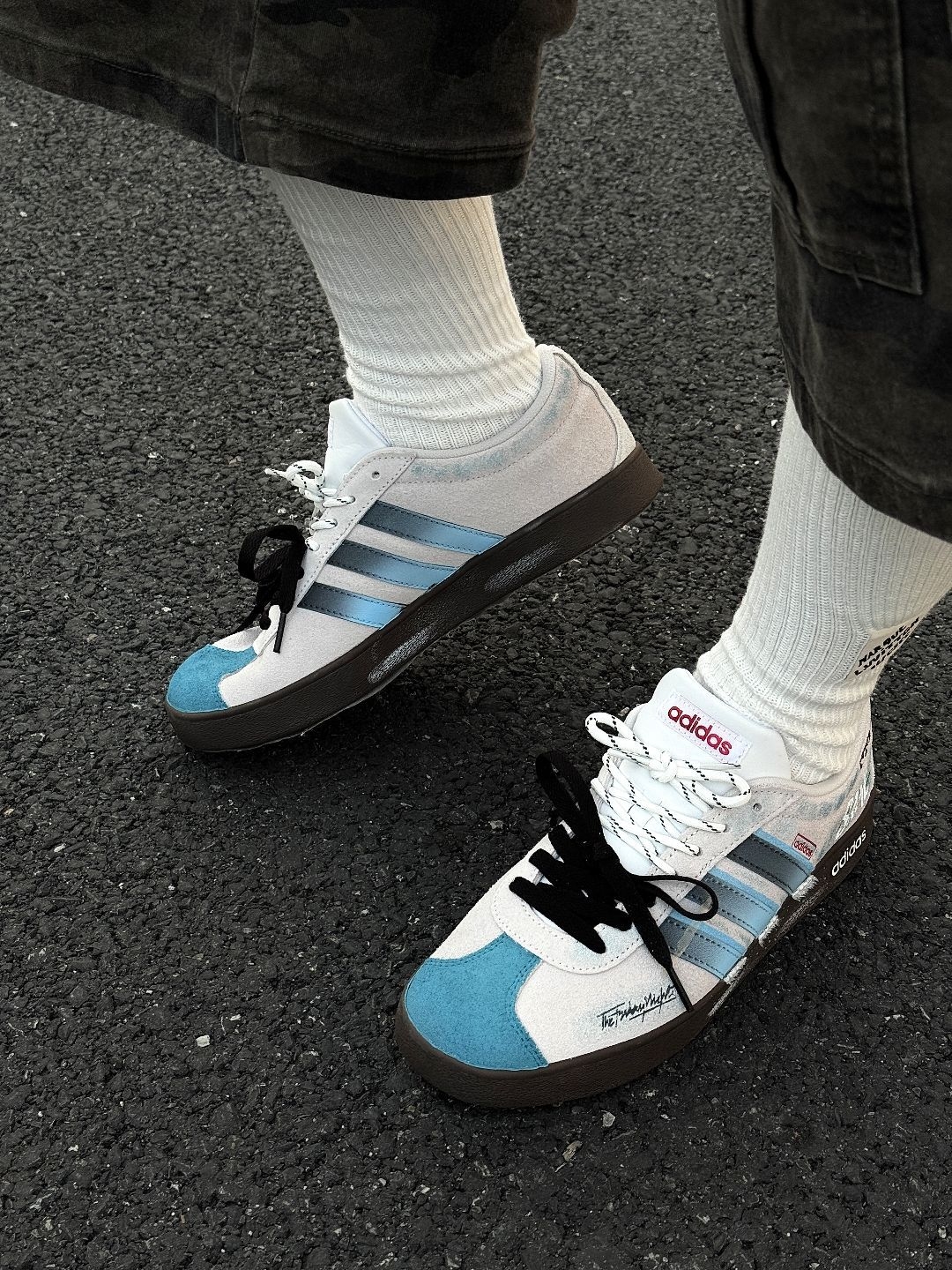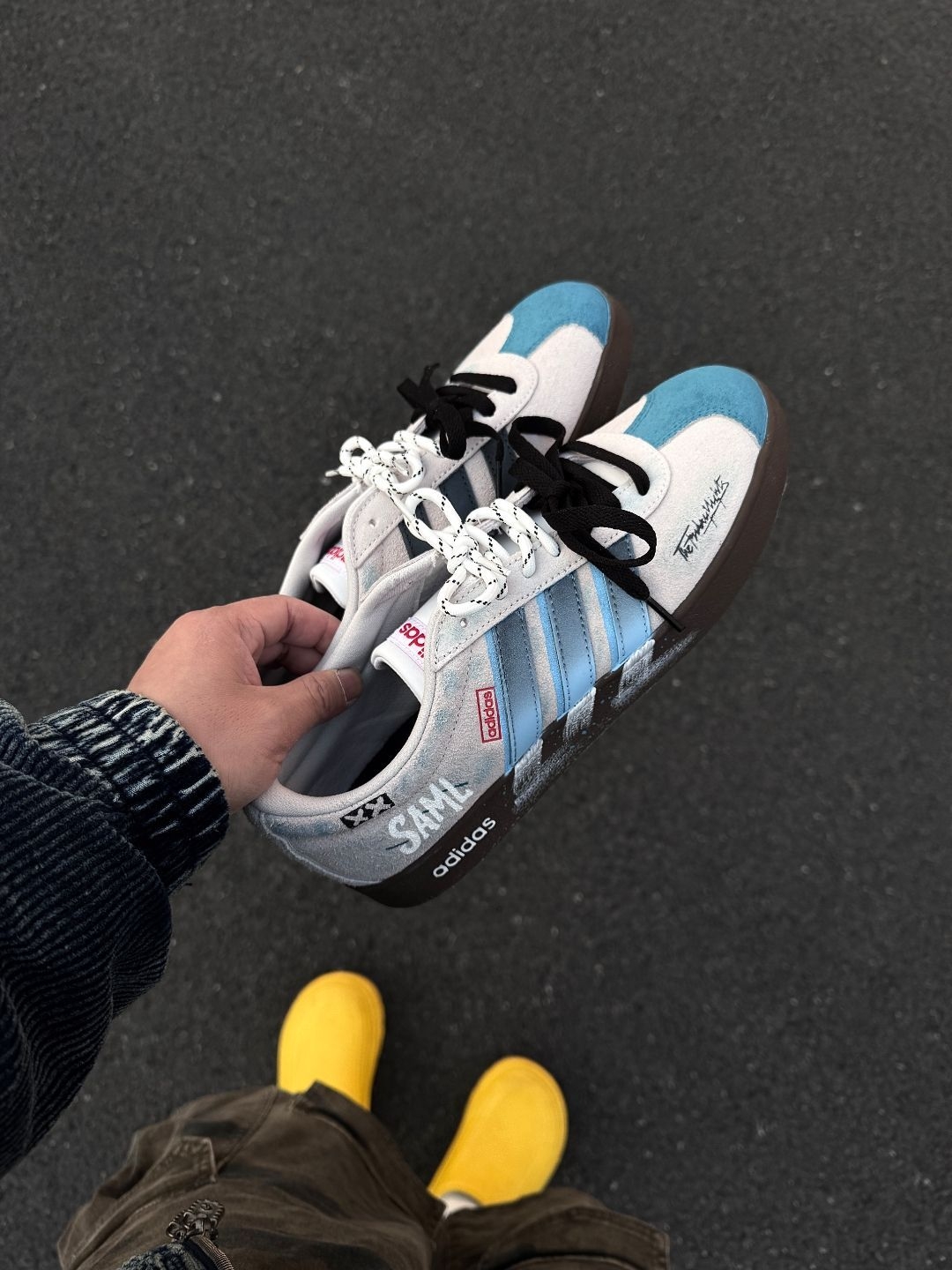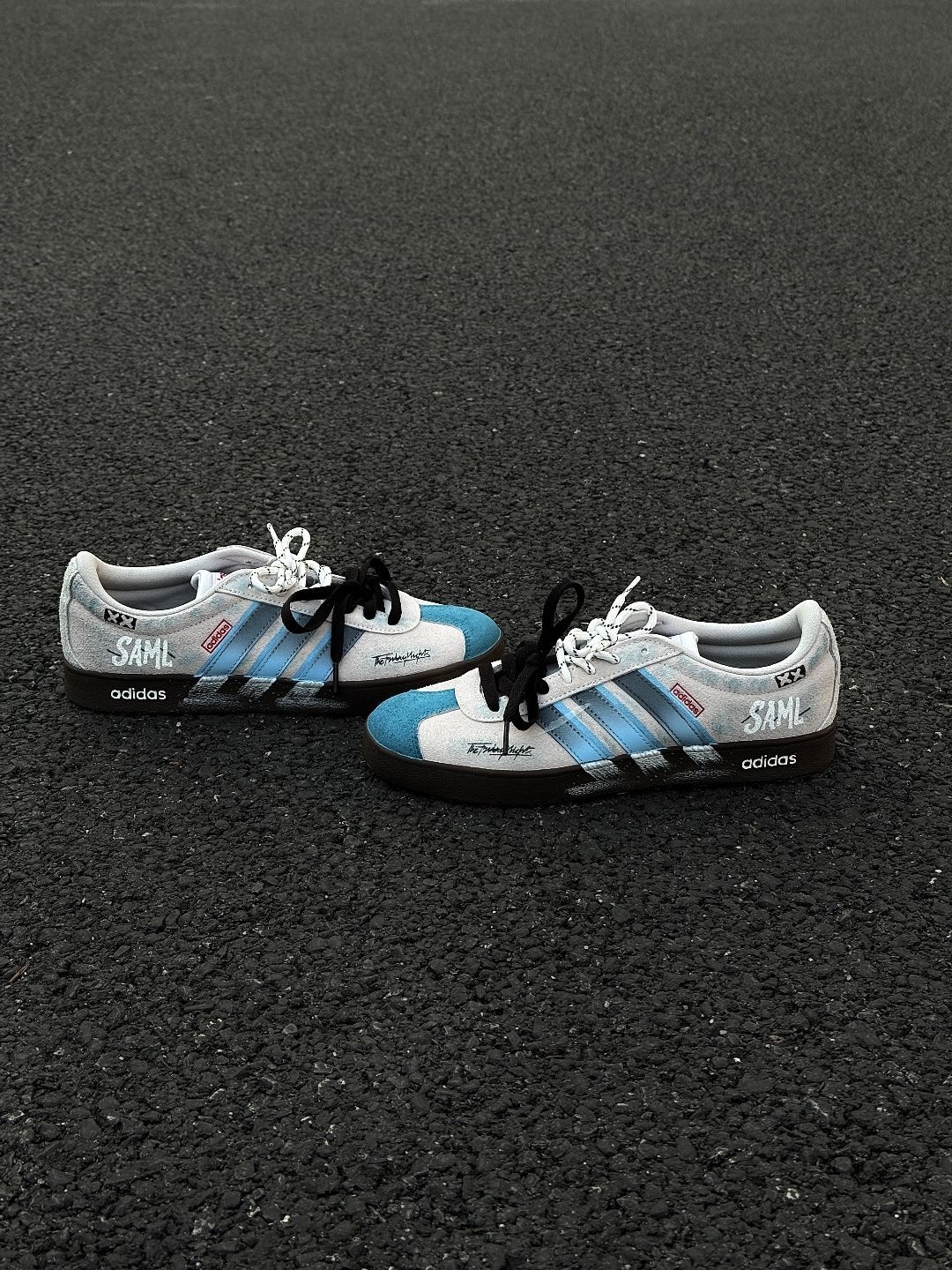 给大家分享一双 #adidas originals samba定制款鞋 蓝色🩵➕白色🤍配色就很显干净清爽 侧边logo位置也是做了渐变的颜色 鞋带位置还是做的分区双绑带设计 小细节拿捏的还是比较到位的🤏🏻 整双鞋上脚就是比较显脚🦶🏻瘦的鞋型 像我日常常穿的牛仔裤和迷彩裤都挺不错的 尺码小建议: 徐哥平常穿的40这双40的是刚好合适的💡