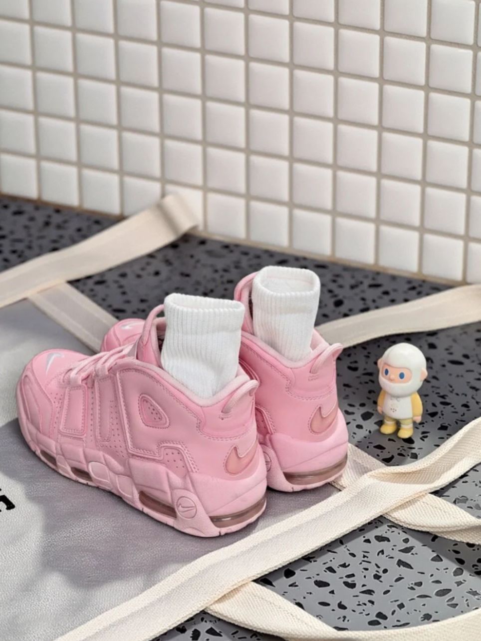 谁能拒绝一双全粉的Nike Air More Uptempo啊! 这双“大Air”真的把复古篮球风和甜妹感平衡得刚刚好✨