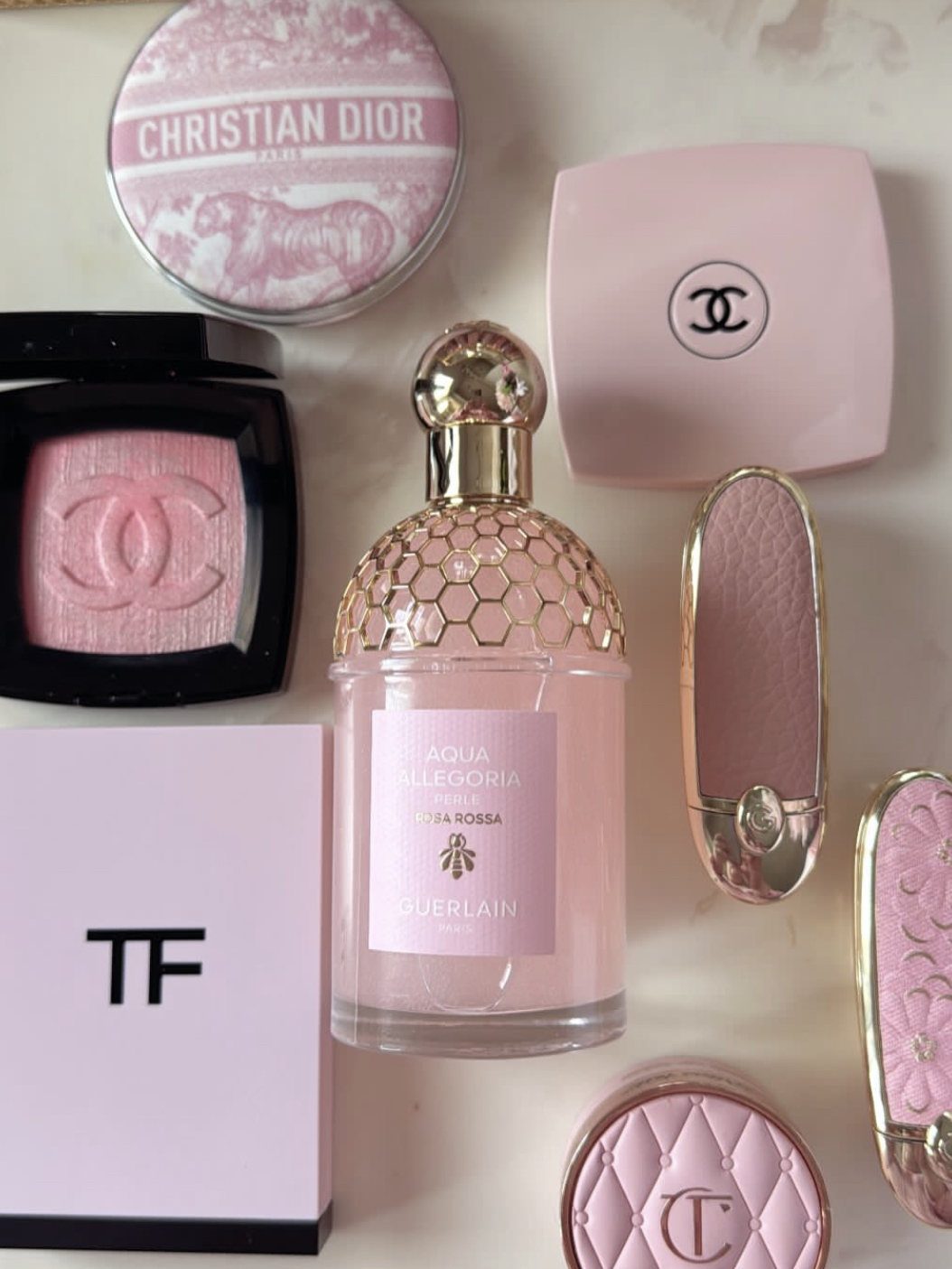 救命!这一整盘温柔粉调彩妆也太会了吧💖 从Dior复古粉饼到娇兰樱花香水 香奈儿细闪腮红、Gucci粉管口红… 每一件都像把春天揉进了化妆包 ✨颜值暴击预警 • 奶fufu的樱花粉外壳,质感拉满 • 经典菱格纹、金属CD标、小雏菊浮雕…细节控狂喜 • 摆在一起拍氛围感直接封神,发朋友圈被问爆链接🔗 💄上脸体验拉满 粉质细腻服帖,腮红自带细闪,口红温柔显白 香水是清甜的玫瑰香,闻一次就爱上...