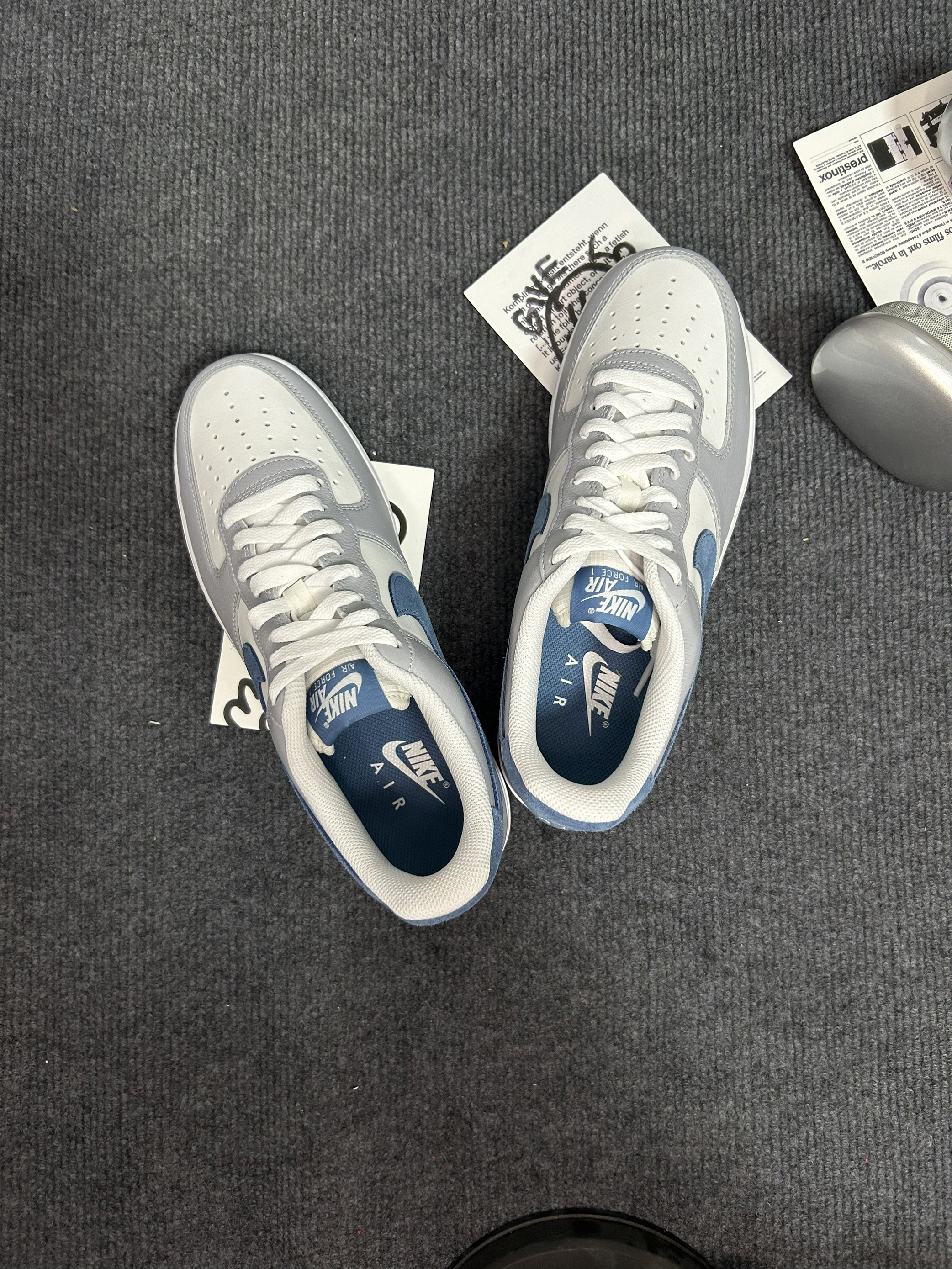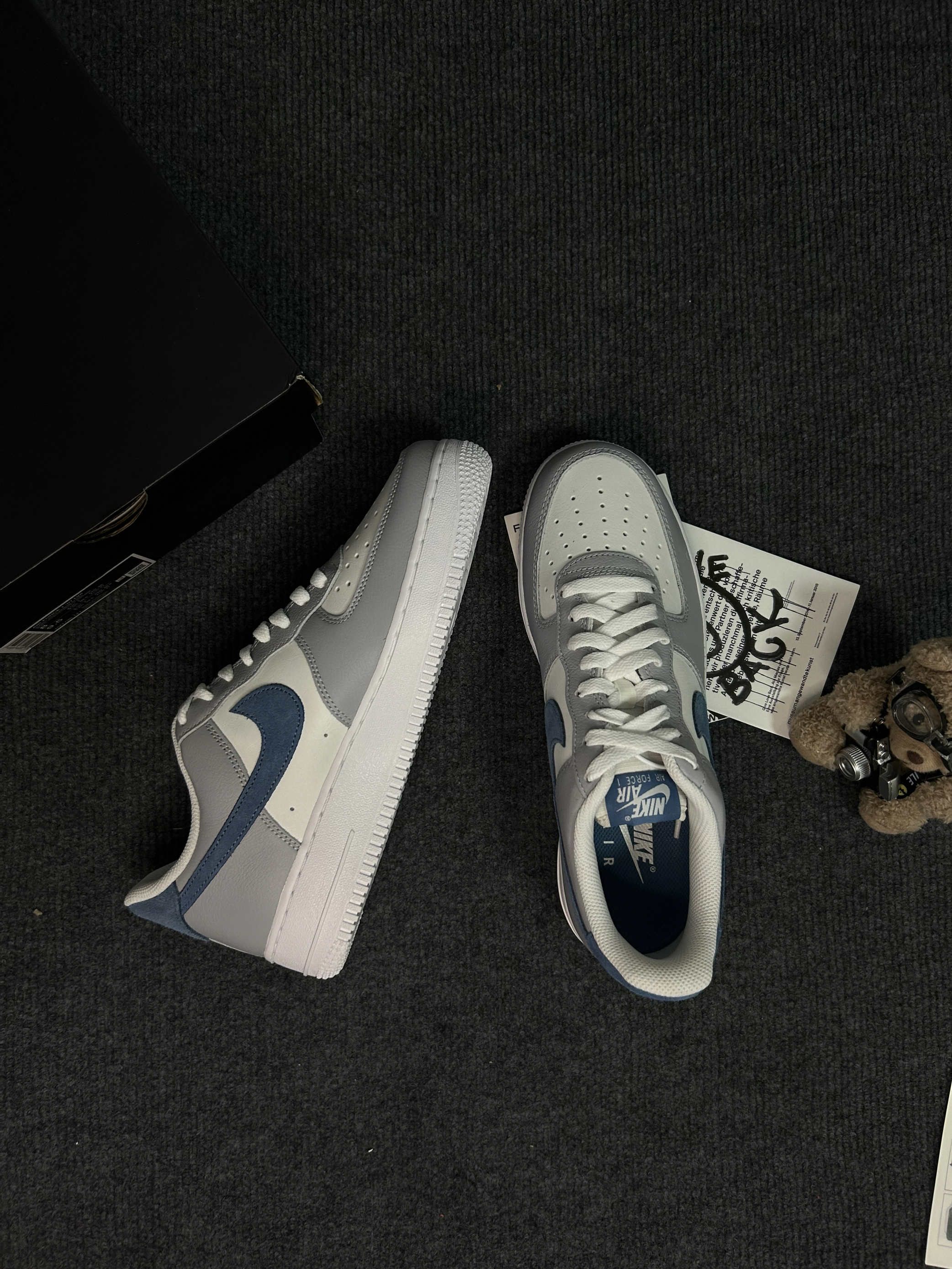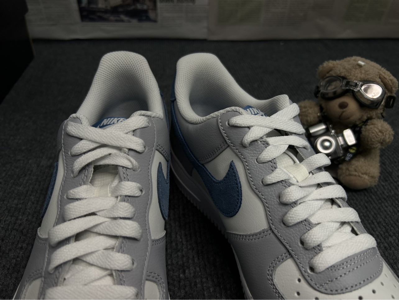 这双Nike Air Force 1真的越看越顺眼~ 浅灰+奶白+雾霾蓝的撞色设计,温柔又干净,没有夸张的配色,日常穿刚刚好,不管配牛仔裤还是休闲裤都很和谐。 优质皮革质感细腻,鞋头透气孔设计,夏天穿也不闷脚,经典Air气垫缓震,走路久了也不累脚。 细节上的雾霾蓝Swoosh和鞋垫呼应,低调又有设计感,是那种耐看又耐穿的款,通勤、出街都合适。