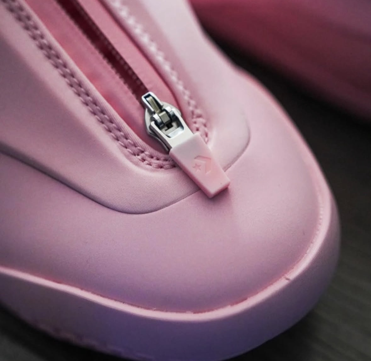 就在前几天打破张伯伦纪录的那场比赛中,他脚上穿的就是这双Converse SHAI 001“Blush”樱花粉。3月12日刚发售,转眼就成了联盟新晋“猛男粉”担当。 这双“Blush”配色的灵感,直接来自春日里那抹温柔的樱花粉。它不是那种廉价的荧光粉,而是带着灰调的肉粉色,高级感拉满。最抓眼球的是鞋面那个标志性的锁定式拉链盖面,既有90年代复古面包鞋的味道,又不会显得笨重。搭配鞋舌上SGA的个人签...