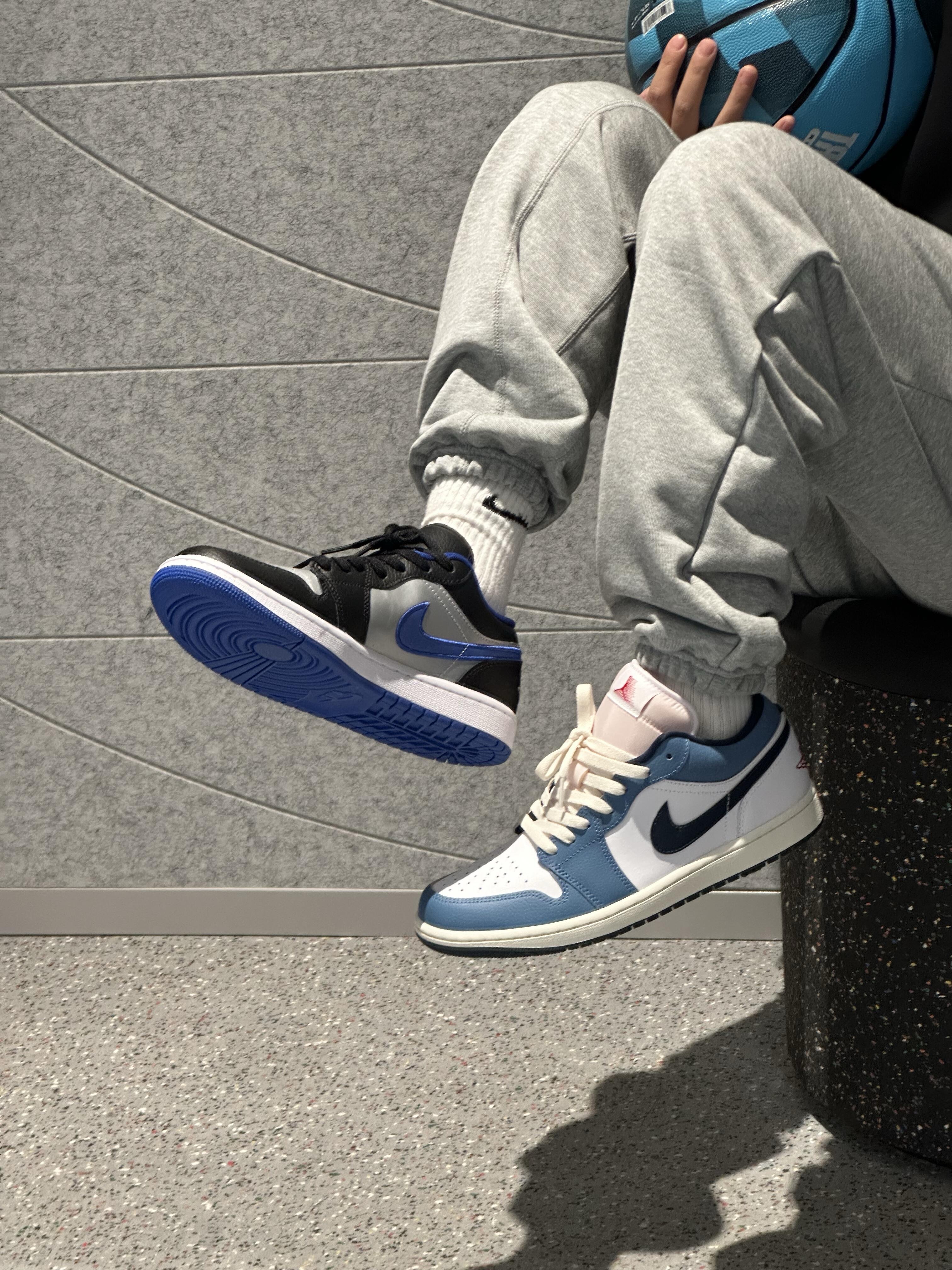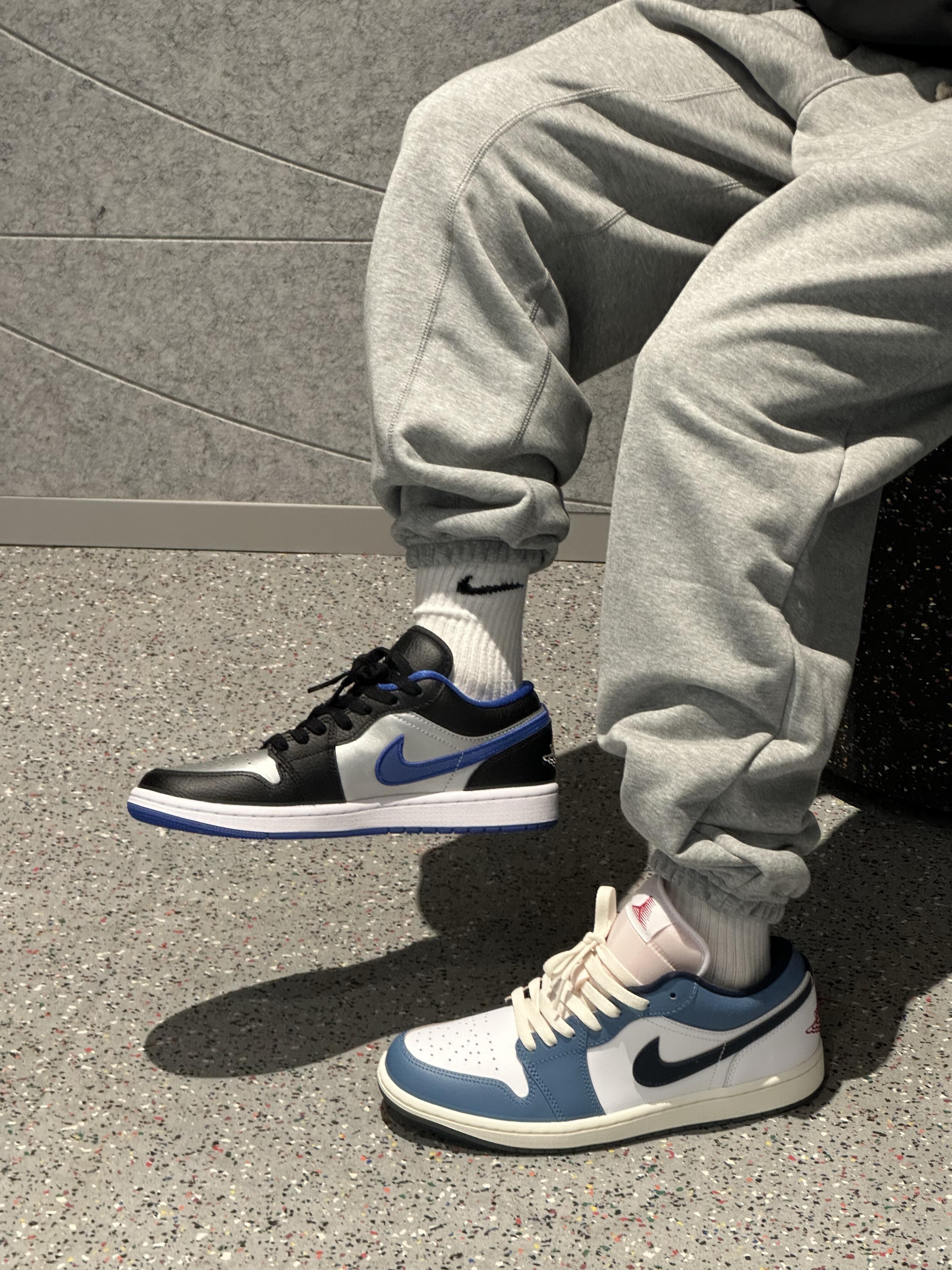 谁懂啊!这双AJ1 Low鸳鸯款直接把街头氛围感焊在脚上!💙 一边是酷飒黑银蓝,金属质感拉满;一边是清新白蓝调,复古温柔感拉满,不对称设计太有个性了! 荔枝纹皮面质感在线,鞋头透气孔夏天也不闷脚,低帮版型显高又修饰腿型,搭卫裤、牛仔裤都绝了,潮人鞋柜必入的个性款!