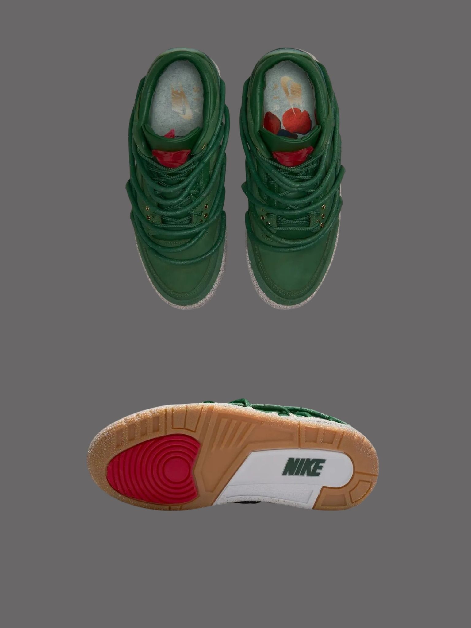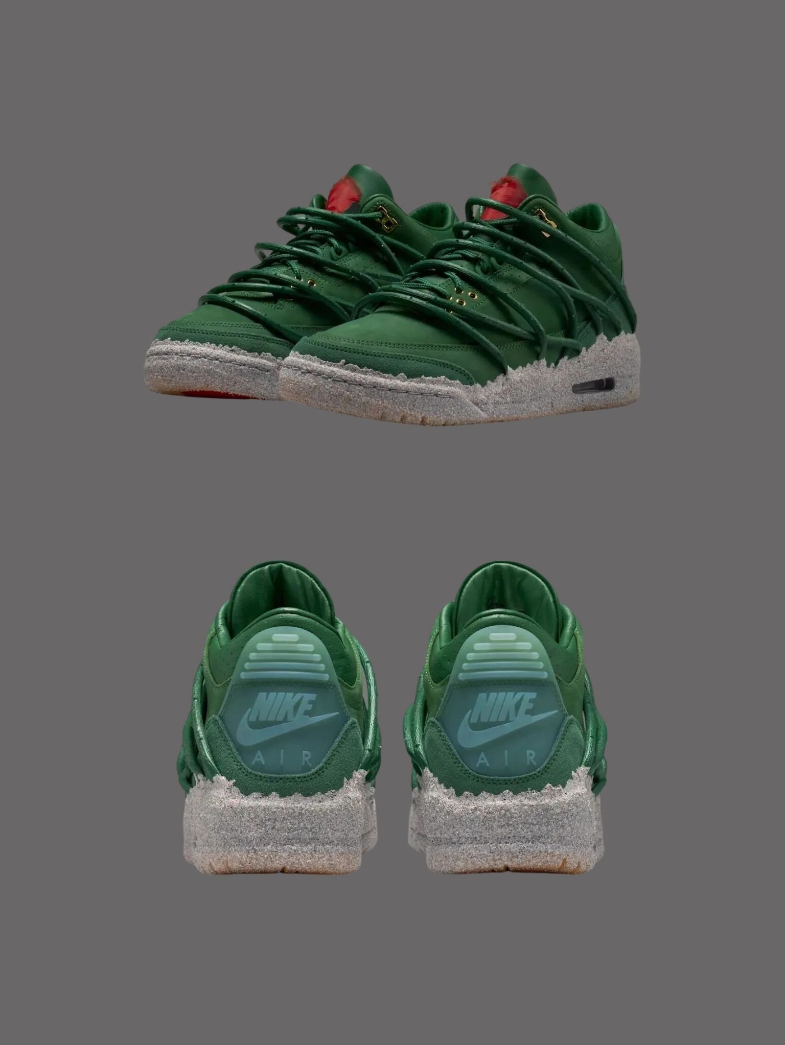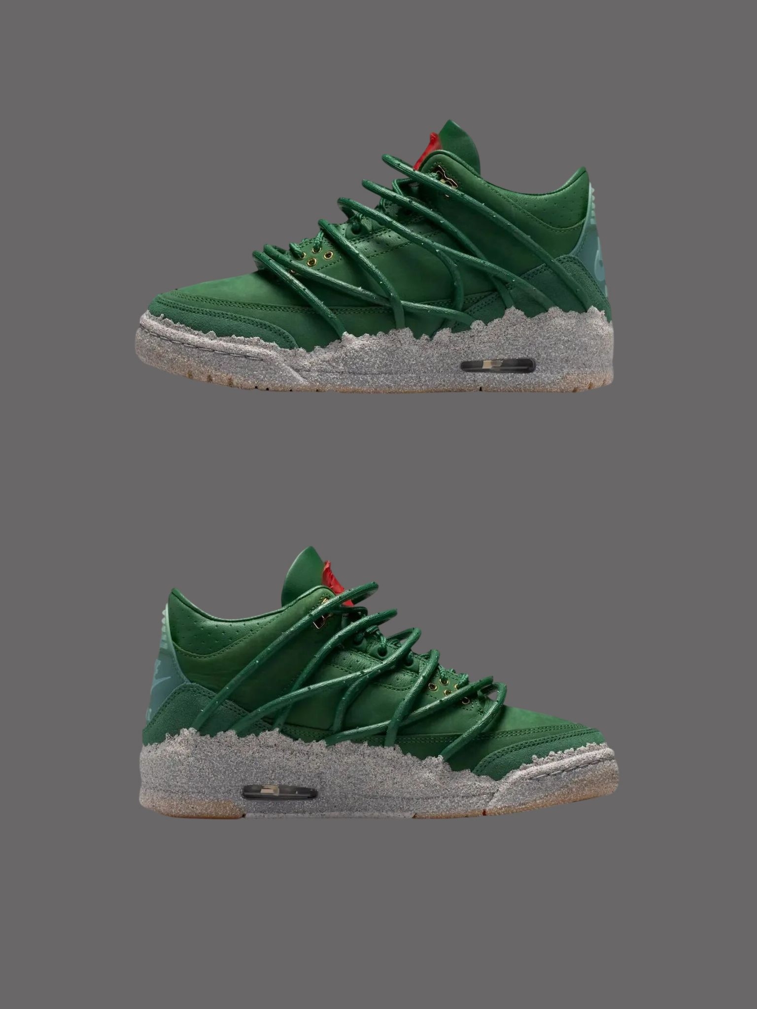 深绿皮革压纹细腻得不像话,鞋舌那朵红玫瑰,藏在系紧的鞋带下。 像倔强里开出的柔软🌱中底灰色麂皮做成泥土质感 每一步都踩得踏实又有态度。 小众控、细节控、玫瑰控——这双通通拿捏住🕶️