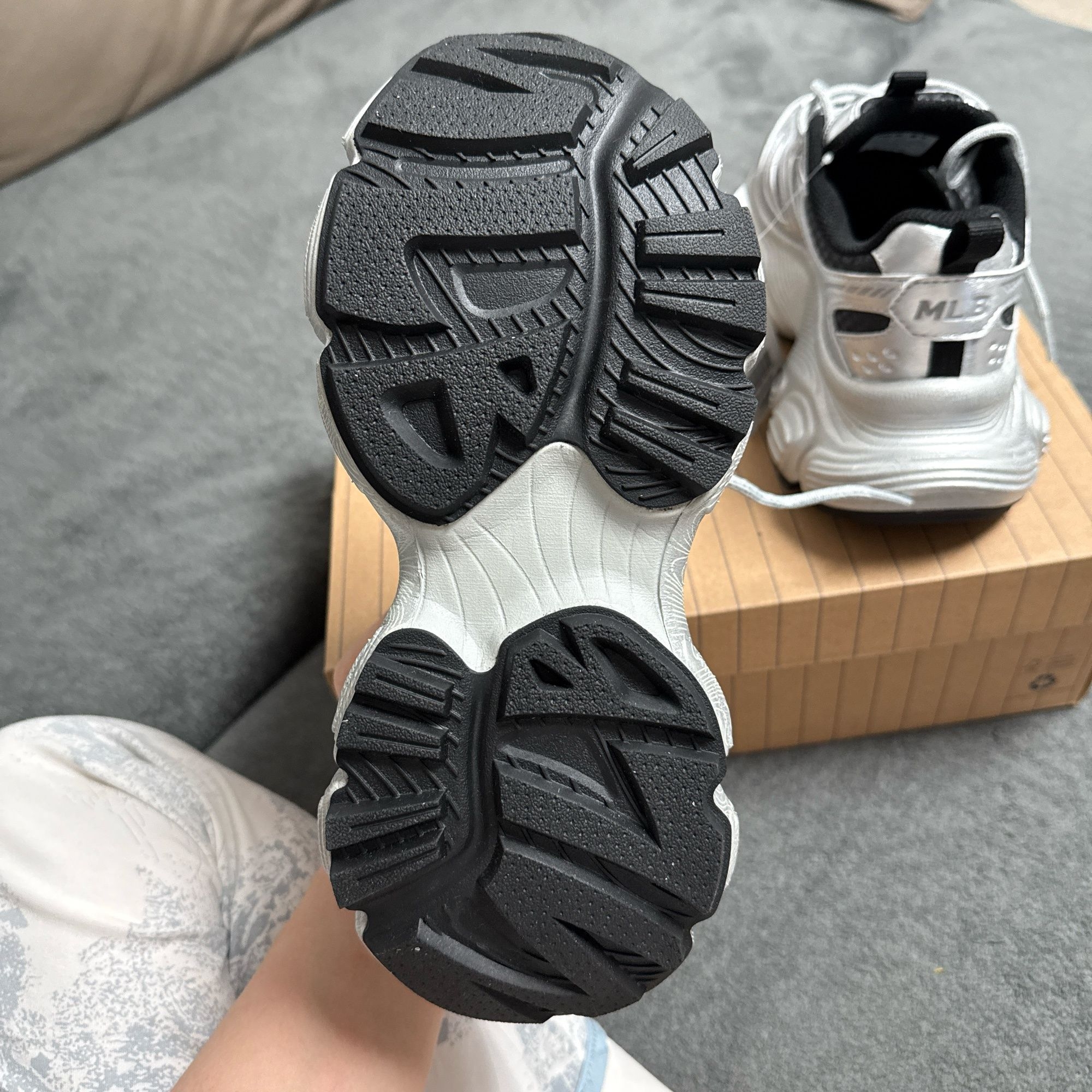 这双银色机甲老爹鞋太懂潮人审美了~ 金属银鞋面+未来感纹路,上脚秒变街头酷盖,厚底还能悄悄增高5cm,搭配牛仔裤/工装裤都超飒,春天穿清爽又吸睛,走在路上被问了N次链接! 脚感软弹不磨脚,颜值和舒适度双在线,潮人必备款! 实物比图还绝,上脚直接变身校园潮人,预算有限又想穿得好看的姐妹,这双闭眼入不亏!
