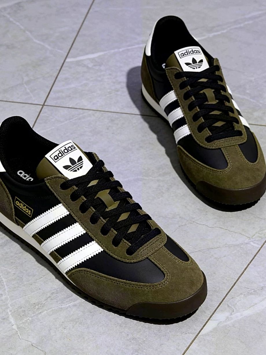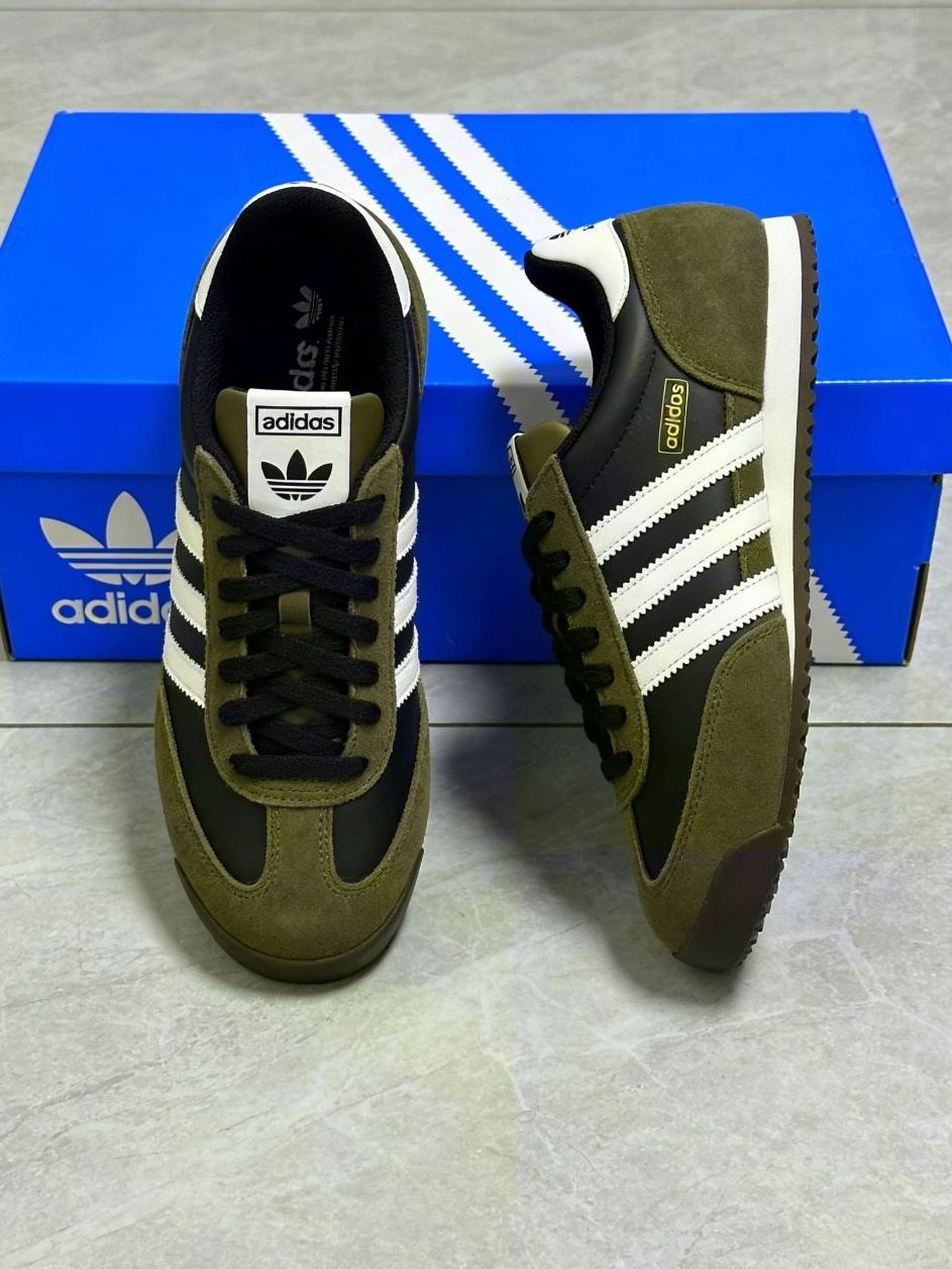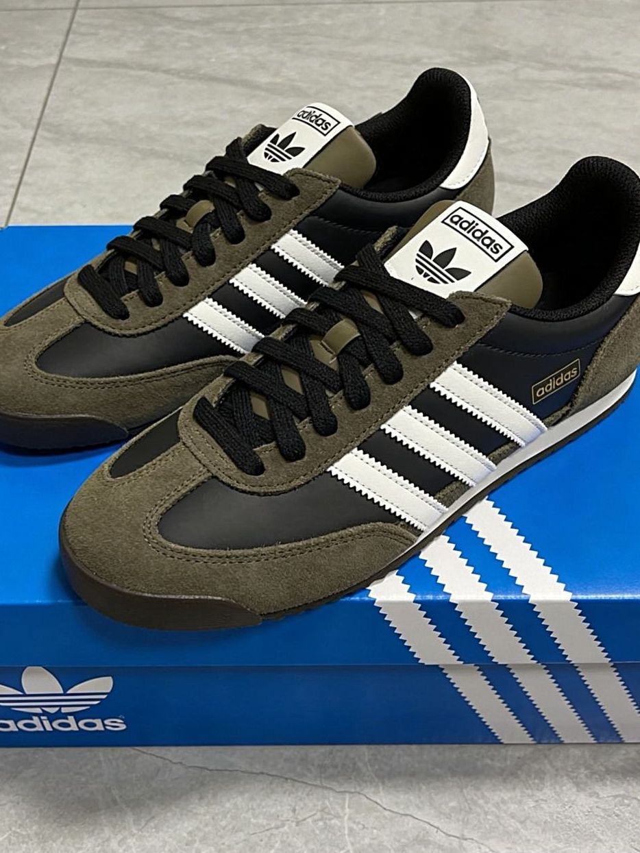 终于入手这双橄榄绿阿迪德训鞋啦,实物比想象中更有质感✨ 橄榄绿麂皮和黑色皮革拼接的鞋面,摸起来软乎乎的,层次很丰富,白色锯齿三条杠经典又利落,鞋侧金色字样是小惊喜,低调又精致,完全不会浮夸。 上脚包裹感刚好,鞋底软硬适中,深棕外底纹路清晰,走路久了也不闷脚累脚,通勤、逛街都很合适。 配色耐脏又显气质,搭牛仔裤、休闲裤都很和谐,做工扎实,没有多余线头,属于越穿越顺眼、越穿越好搭的款,日常穿频率真的...