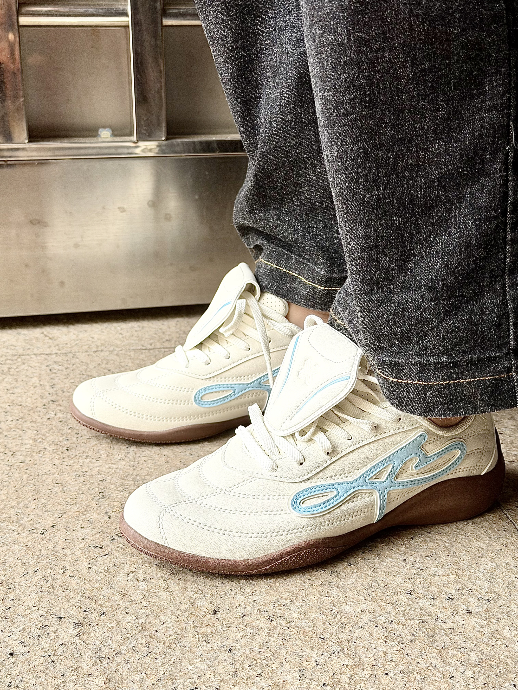 奶fufu的米白+清新浅蓝线条 复古感拉满!美式风格首选(* ̄3 ̄)╭♡ 翻折鞋舌 四叶草小细节戳中我的少女心 温柔又精致~ 皮面耐脏好打理 快到春天的梅雨季节也不怕了!! 整个鞋子自重很轻✌︎' ֊' 春天配牛仔裤、百褶裙都超绝 氛围感拉满~ 百元价位中的天花板 好看૮ ⚆⚆ა