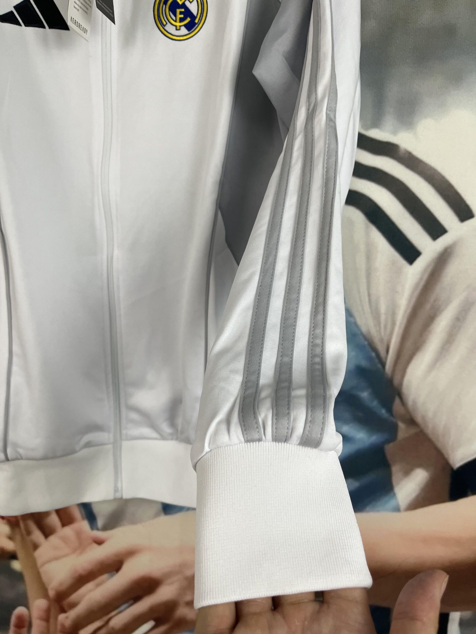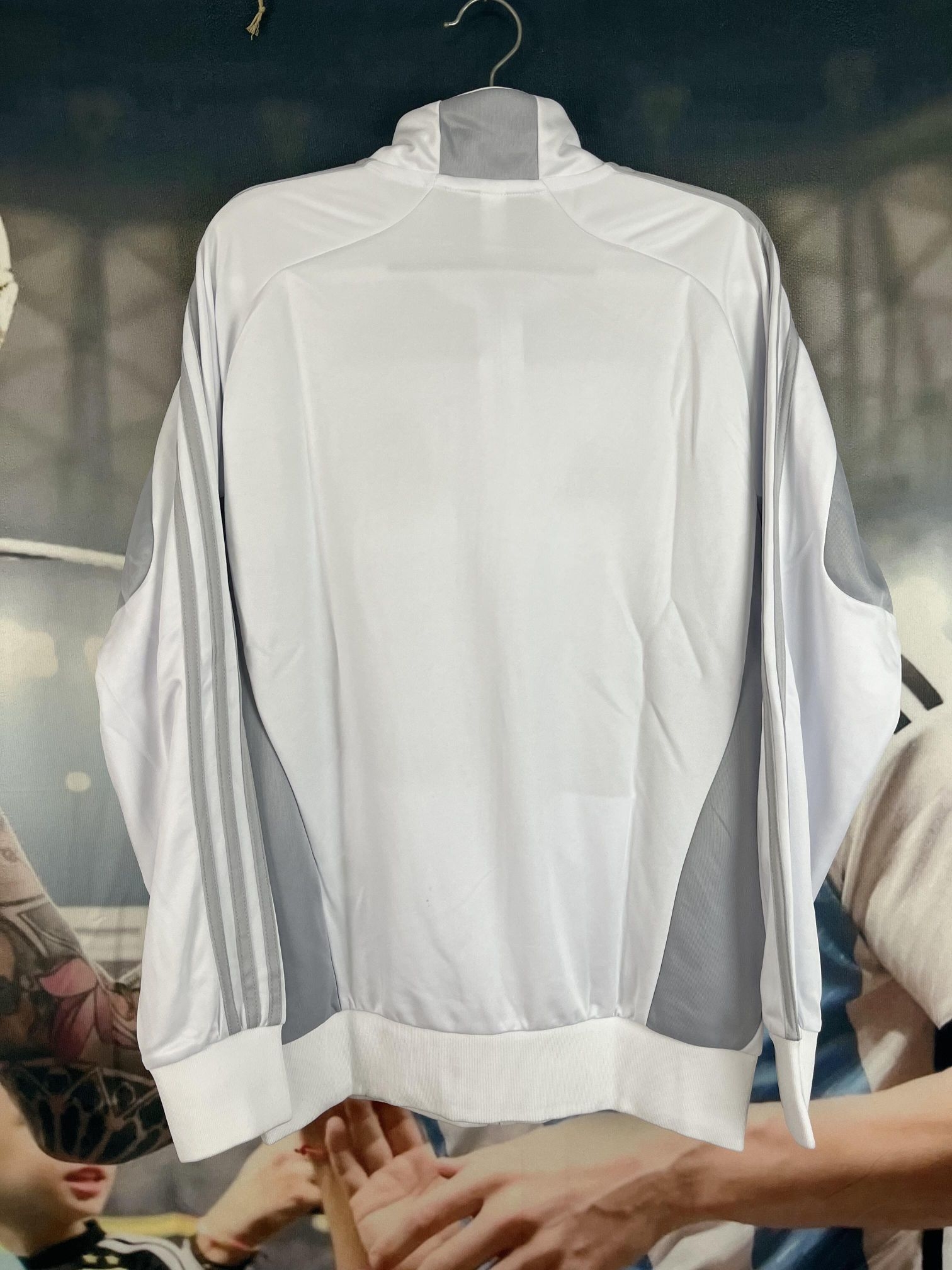 🤍阿迪达斯×皇家马德里25/26赛季外套,白色主色+灰色镶边,简约大气!胸前皇马队徽刺绣+三条纹,品牌感满满✨。面料柔软透气,日常或运动都OK。立领防风,拉链口袋超实用,常规版型贴合身形,舒适又时髦,球迷&运动风必入!
