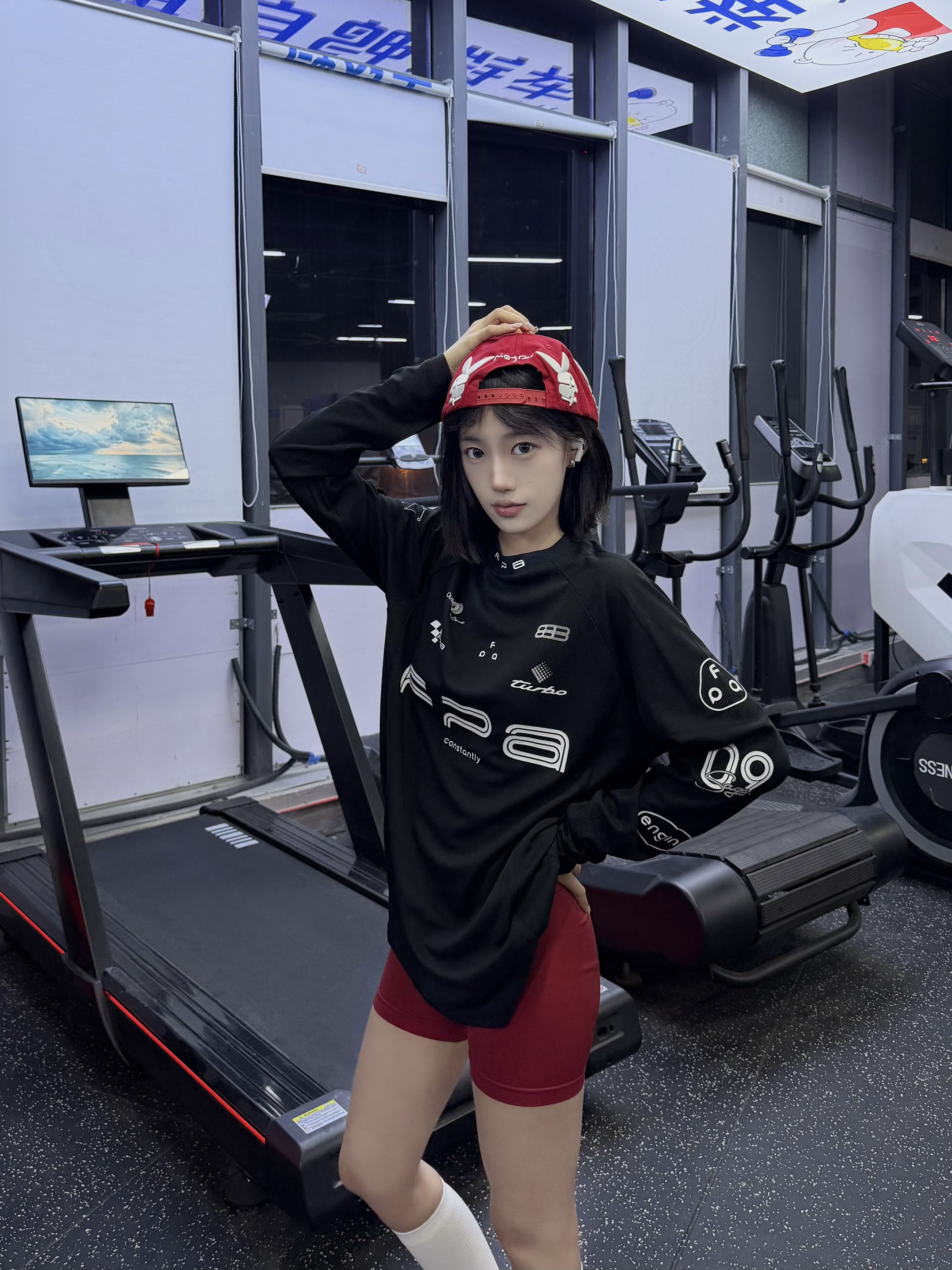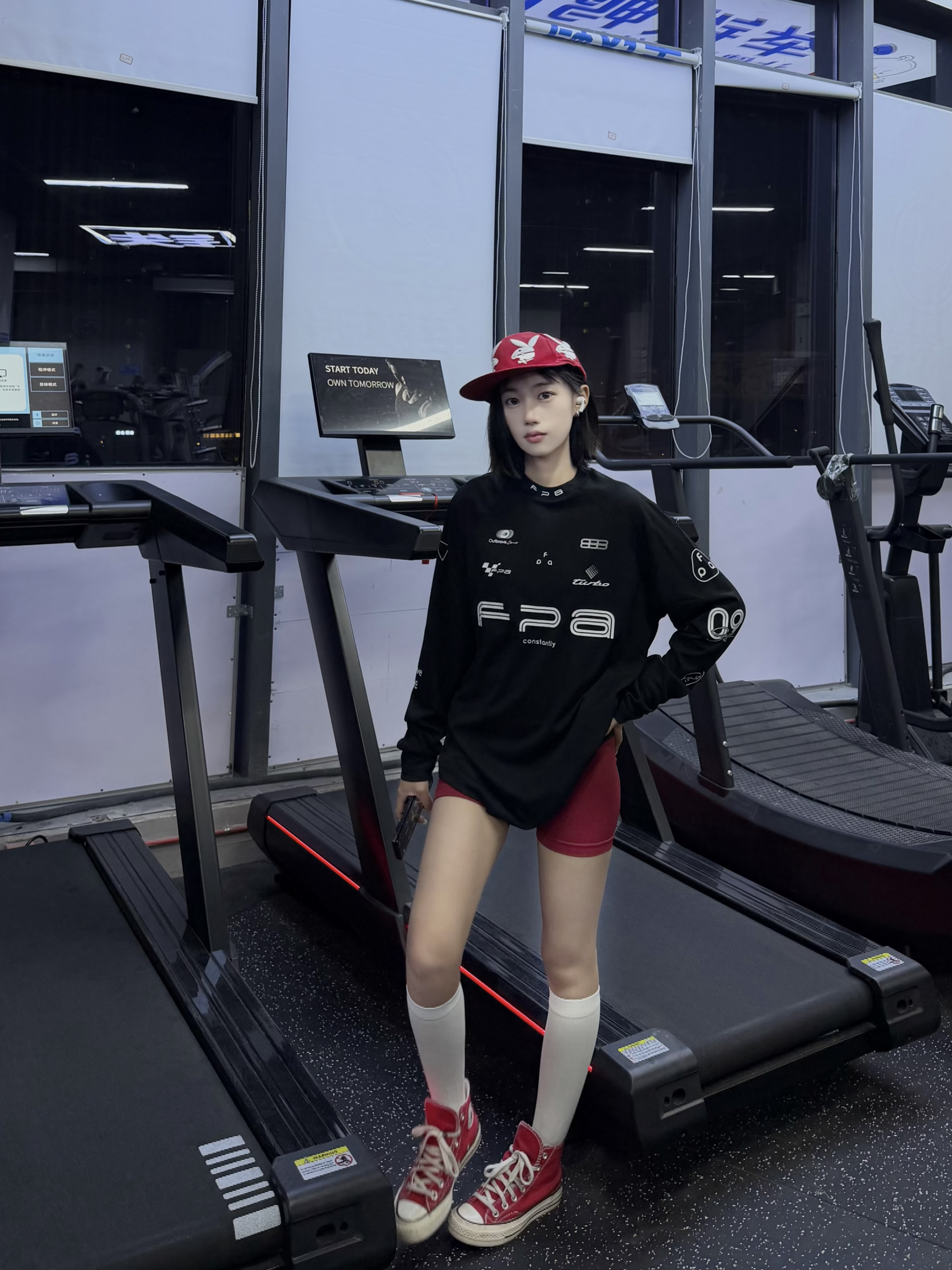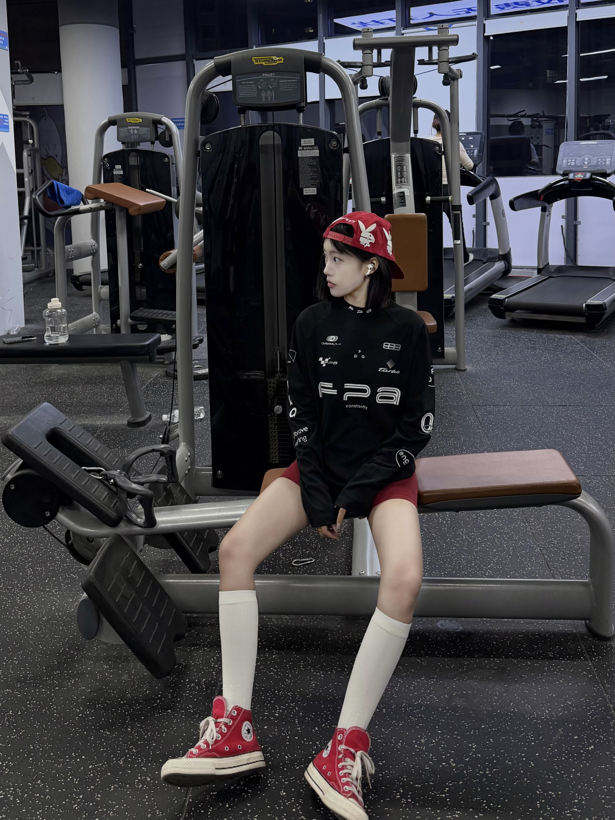 啊啊啊坚持啊✊ 今日份健身ootd是黑色赛车服和红色瑜伽短裤 上衣轻薄透气 柔软不闷汗 裤子刚刚好显身材呢