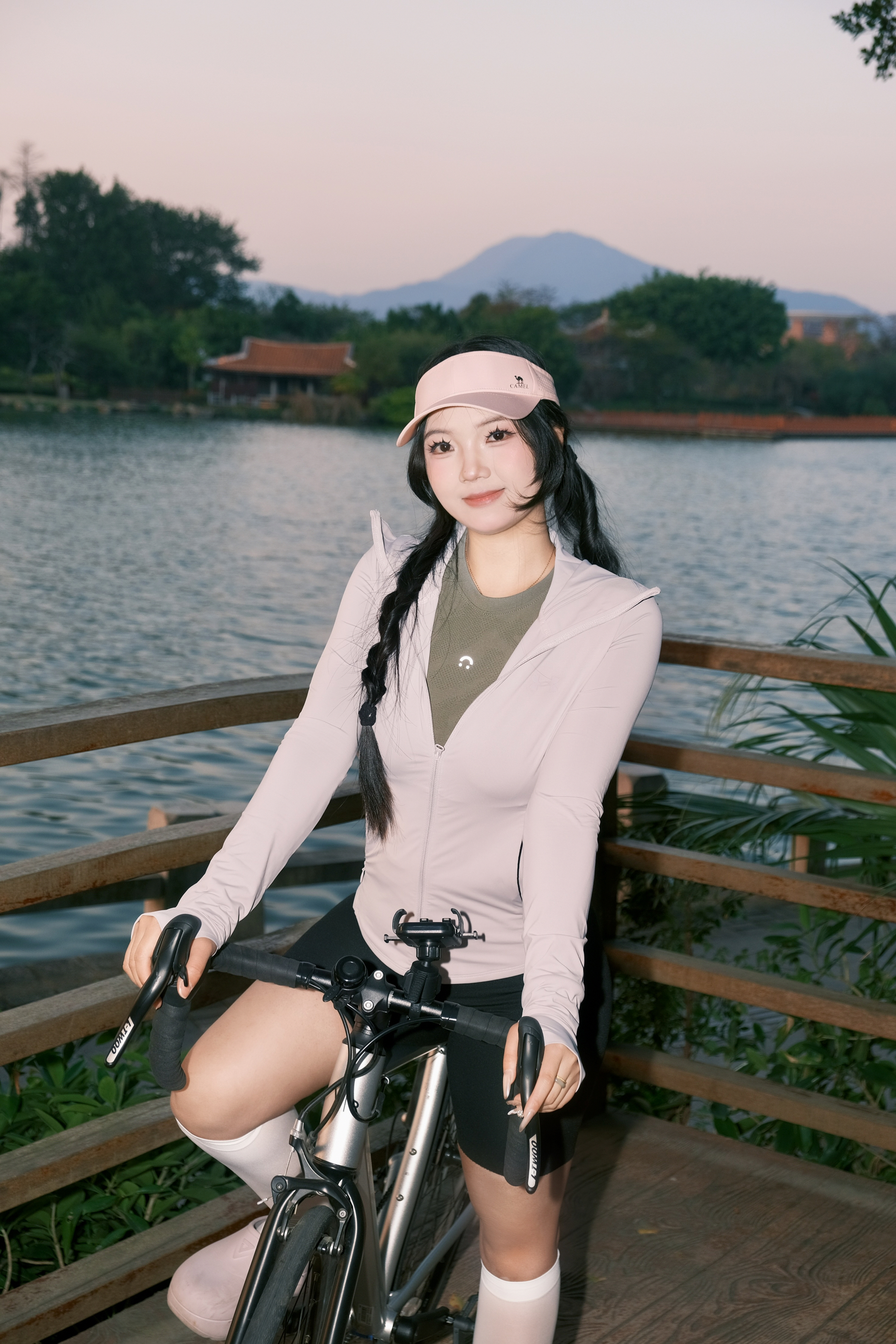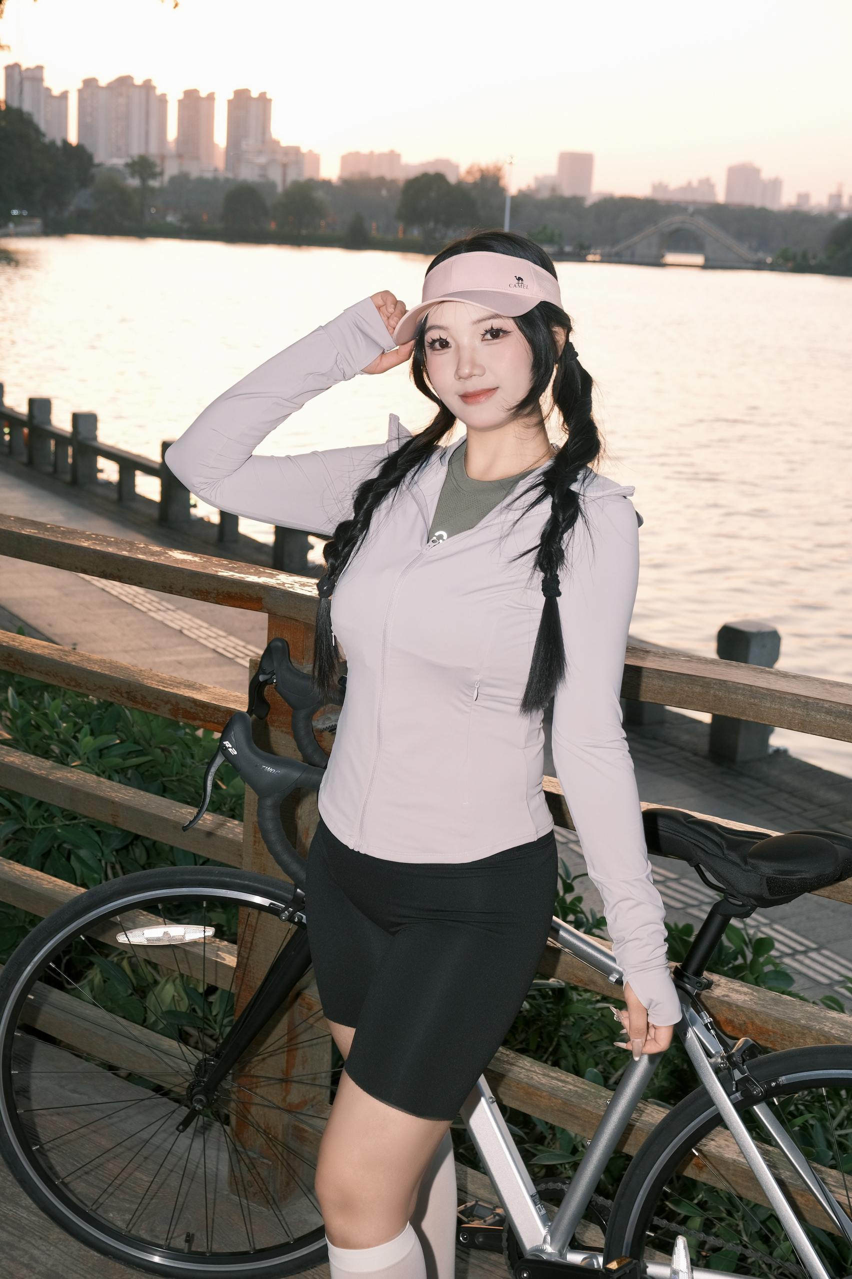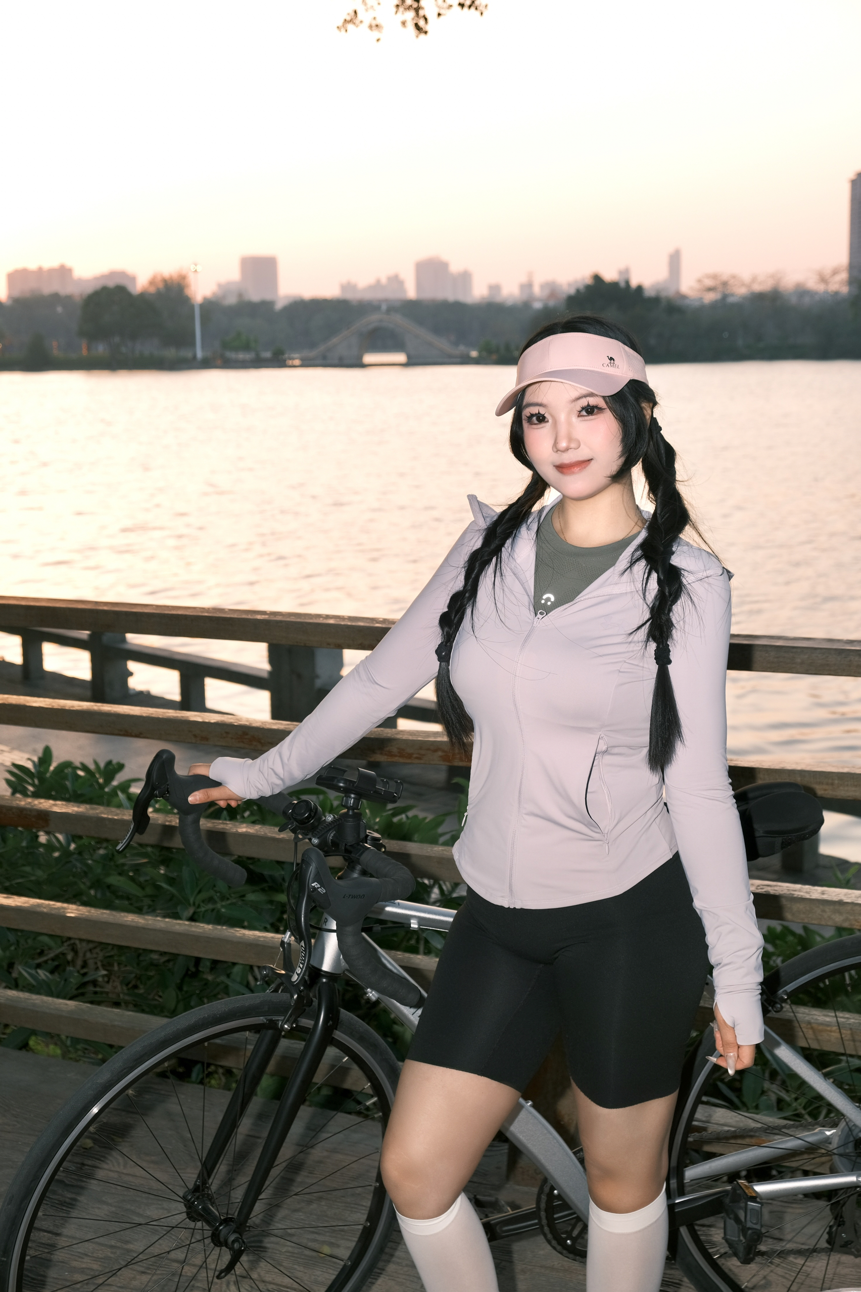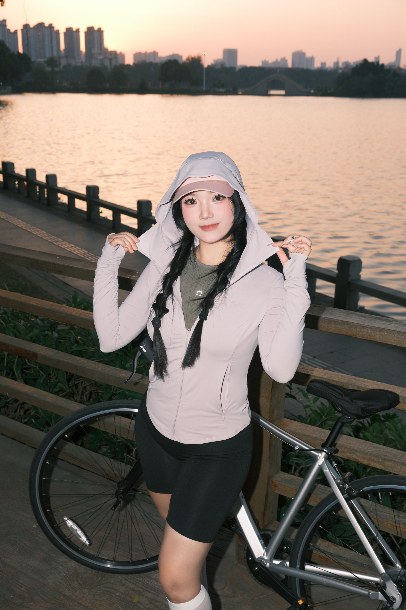 今天的快乐是骑行给的✨ 浅灰防晒衣把阳光全挡住,贴肤又透气,骑一下午都不闷汗。 内搭军绿小衫+黑骑行裤,休闲又利落, 傍晚的风一吹,凉丝丝的,连拍照都自带温柔滤镜🌷
