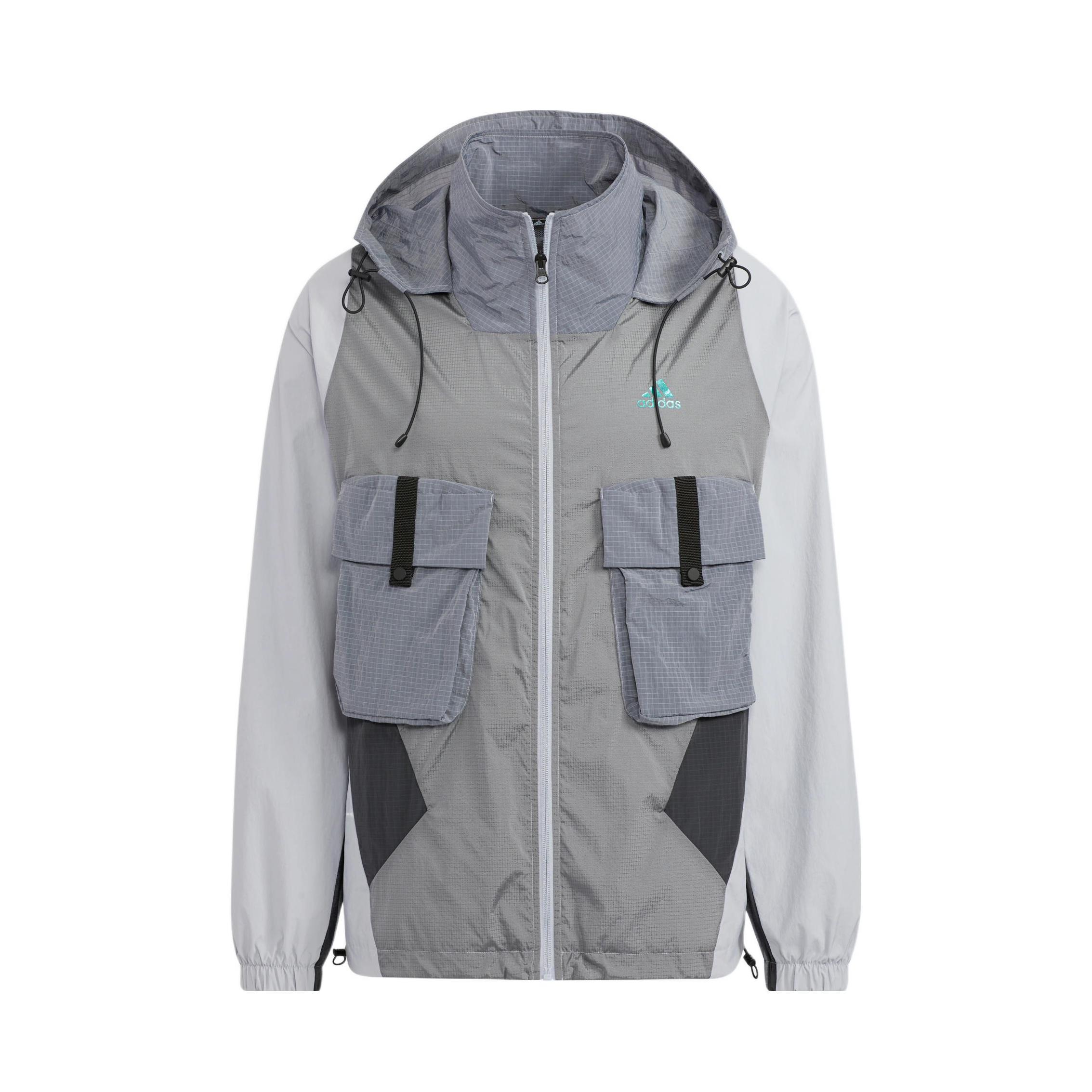 🌟阿迪达斯这款拼接风连帽外套,灰白主色+黑色几何拼接,简约又有层次感!轻量防风面料,春秋穿超合适~胸前双大口袋+按扣设计,实用又好看👜。连帽抽绳可调节,户外活动或日常通勤都能轻松应对。袖口松紧收口,保暖又贴合,运动休闲风,搭配运动裤或工装裤都很出彩✨。