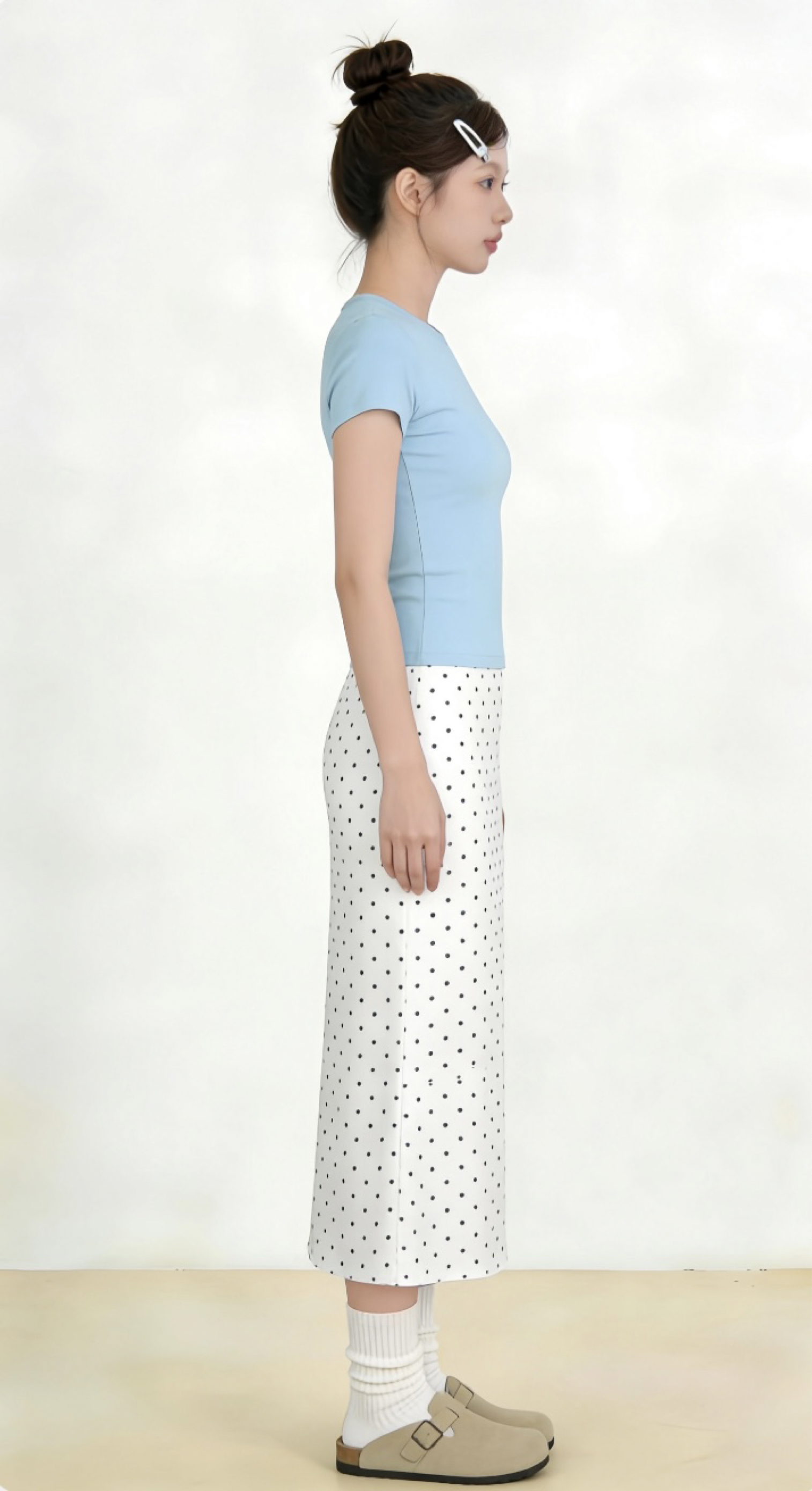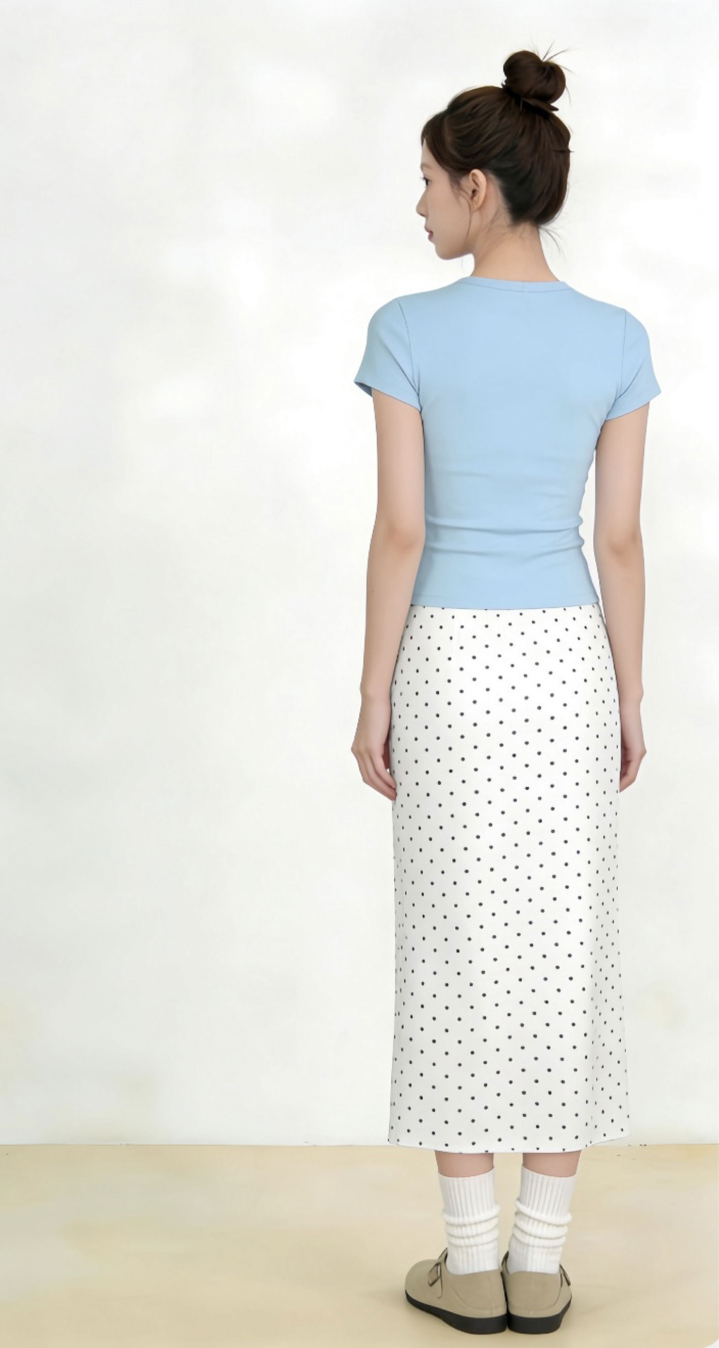 浅蓝T恤的清透感撞上波点裙的复古温柔,不用刻意追赶潮流,舒服自在就是最好的风格。 春天就该穿得清清爽爽,把日子过成自己喜欢的模样。