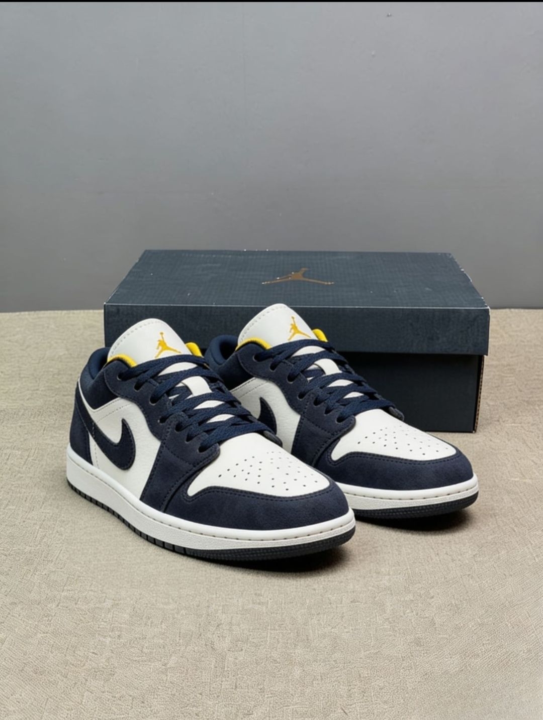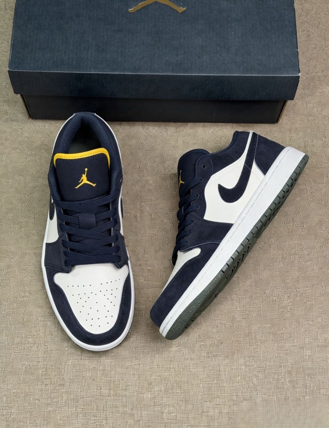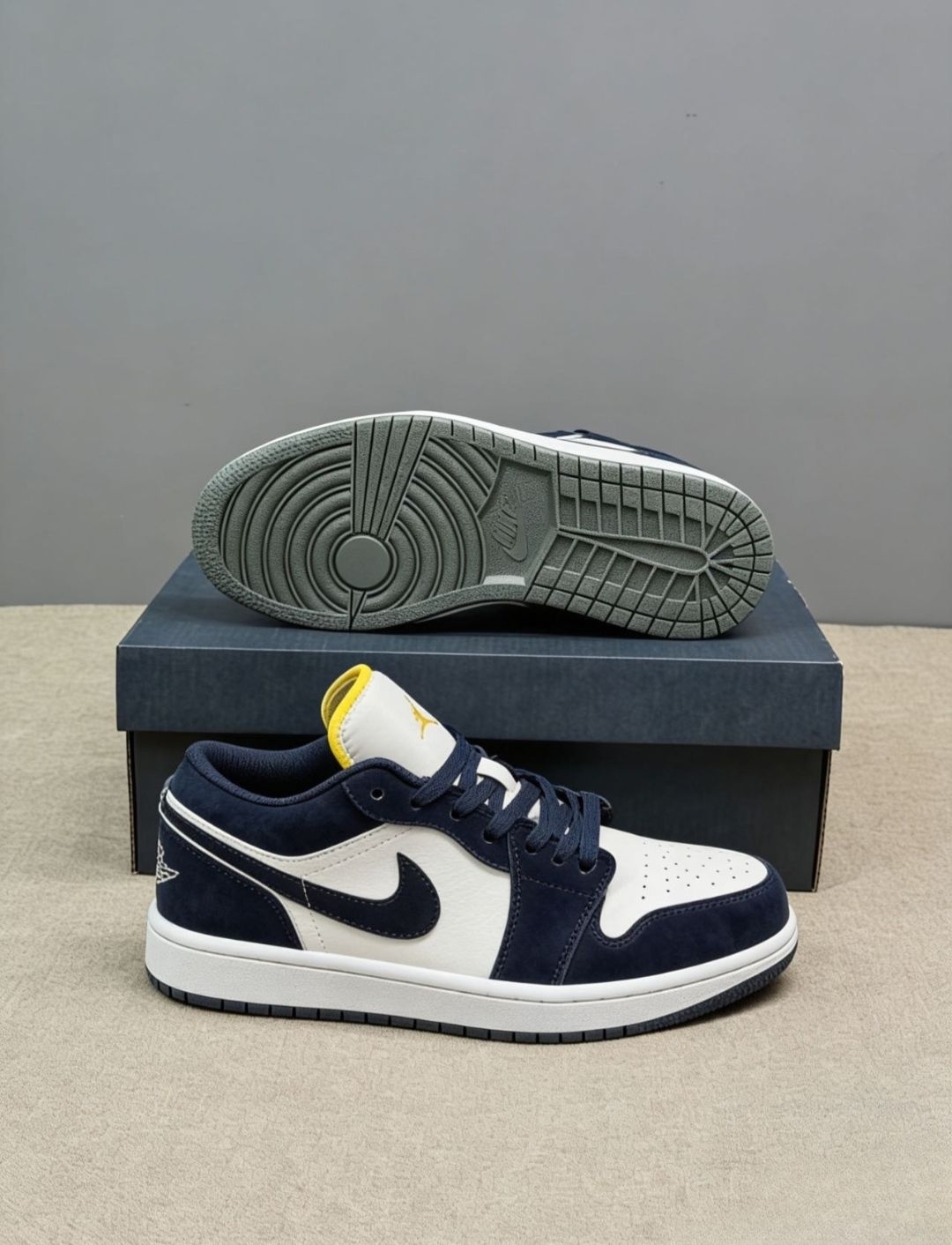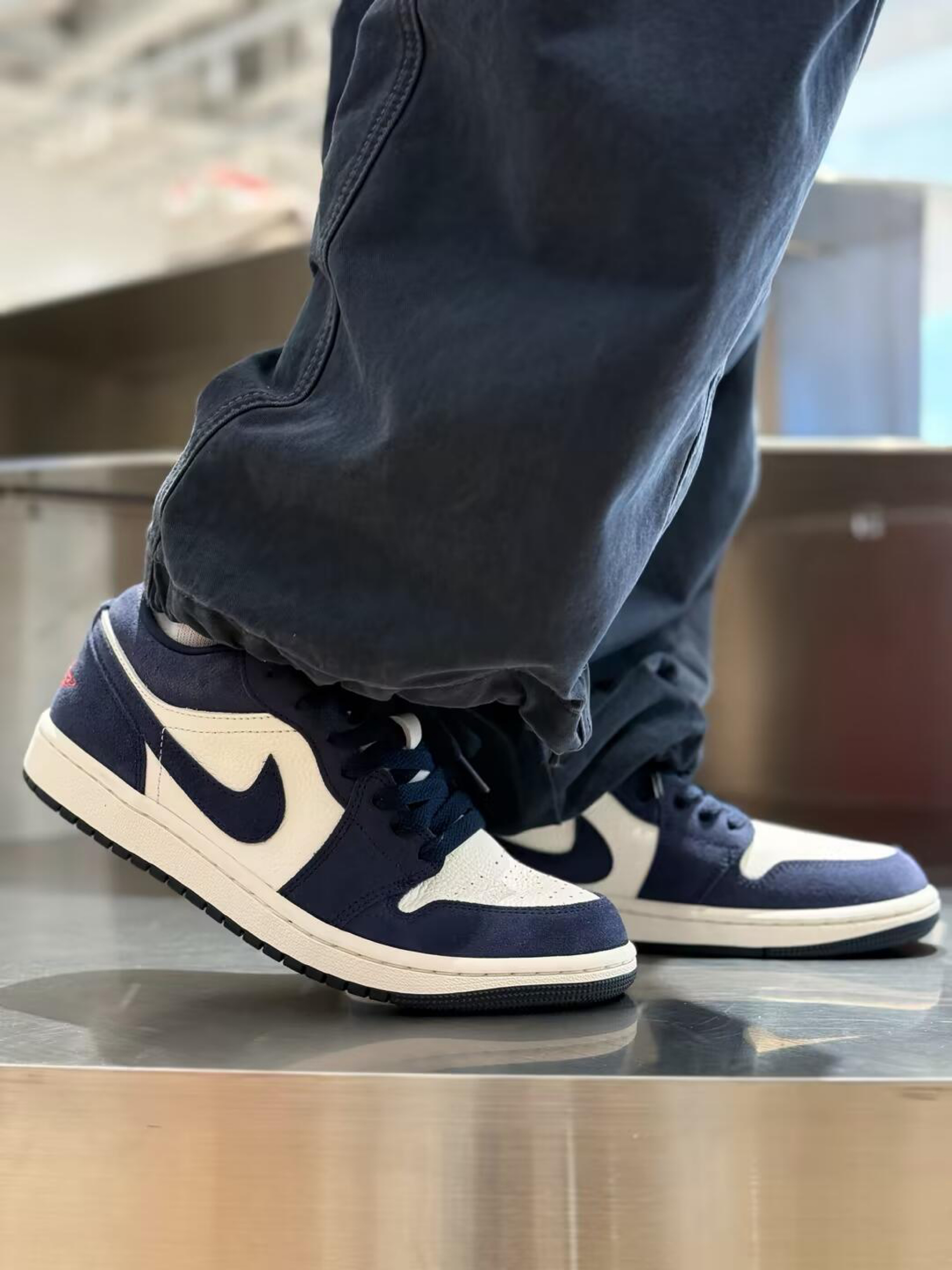 谁懂啊!这双藏蓝AJ1也太美式了吧! 藏蓝+奶白撞色,学院风拉满,搭牛仔裤直接封神! 上脚舒服到想蹦跶,明黄色飞人细节拉满~ 春天就该穿点“有味道”的鞋,这藏蓝奶盖味我先冲了!