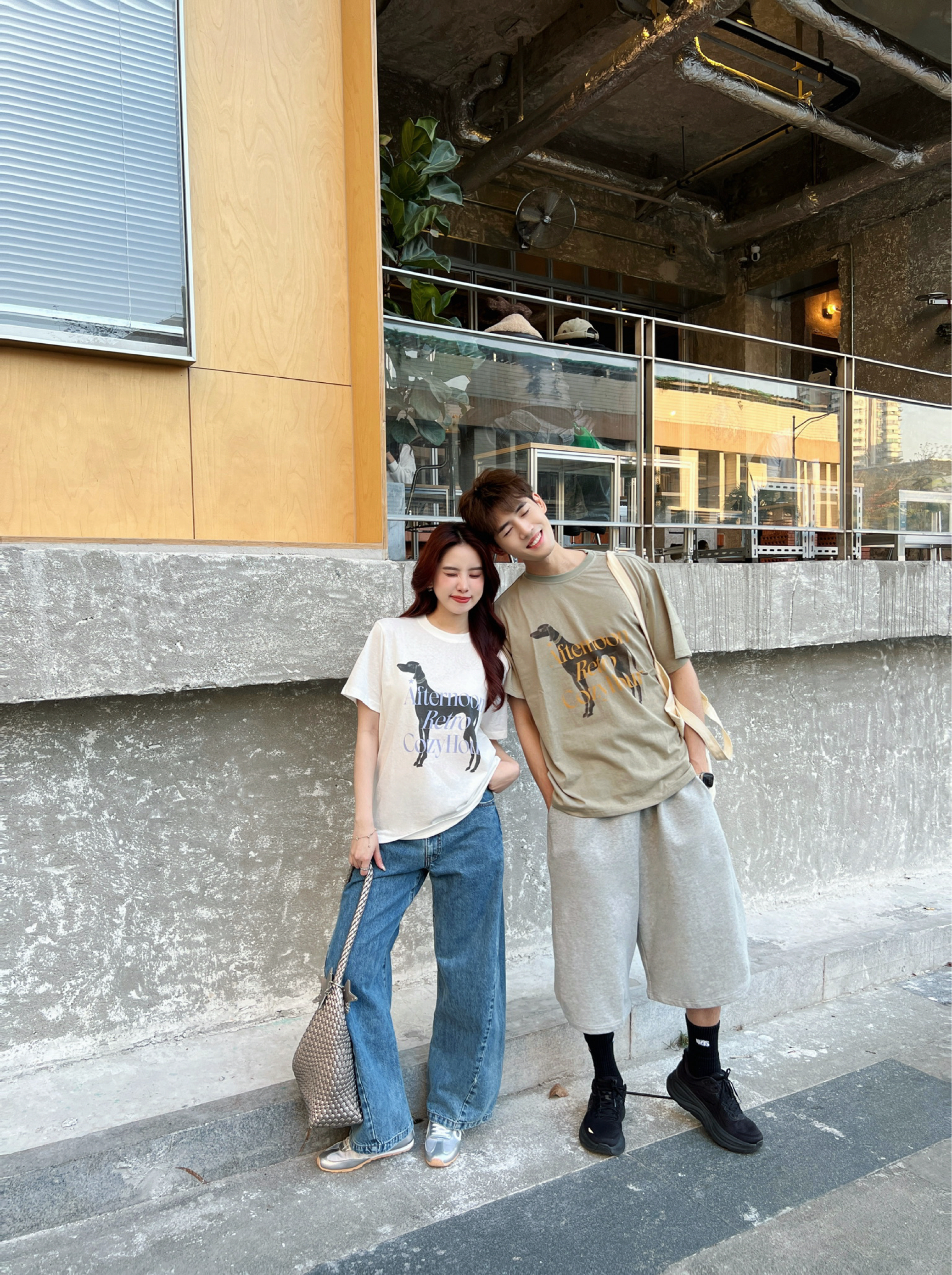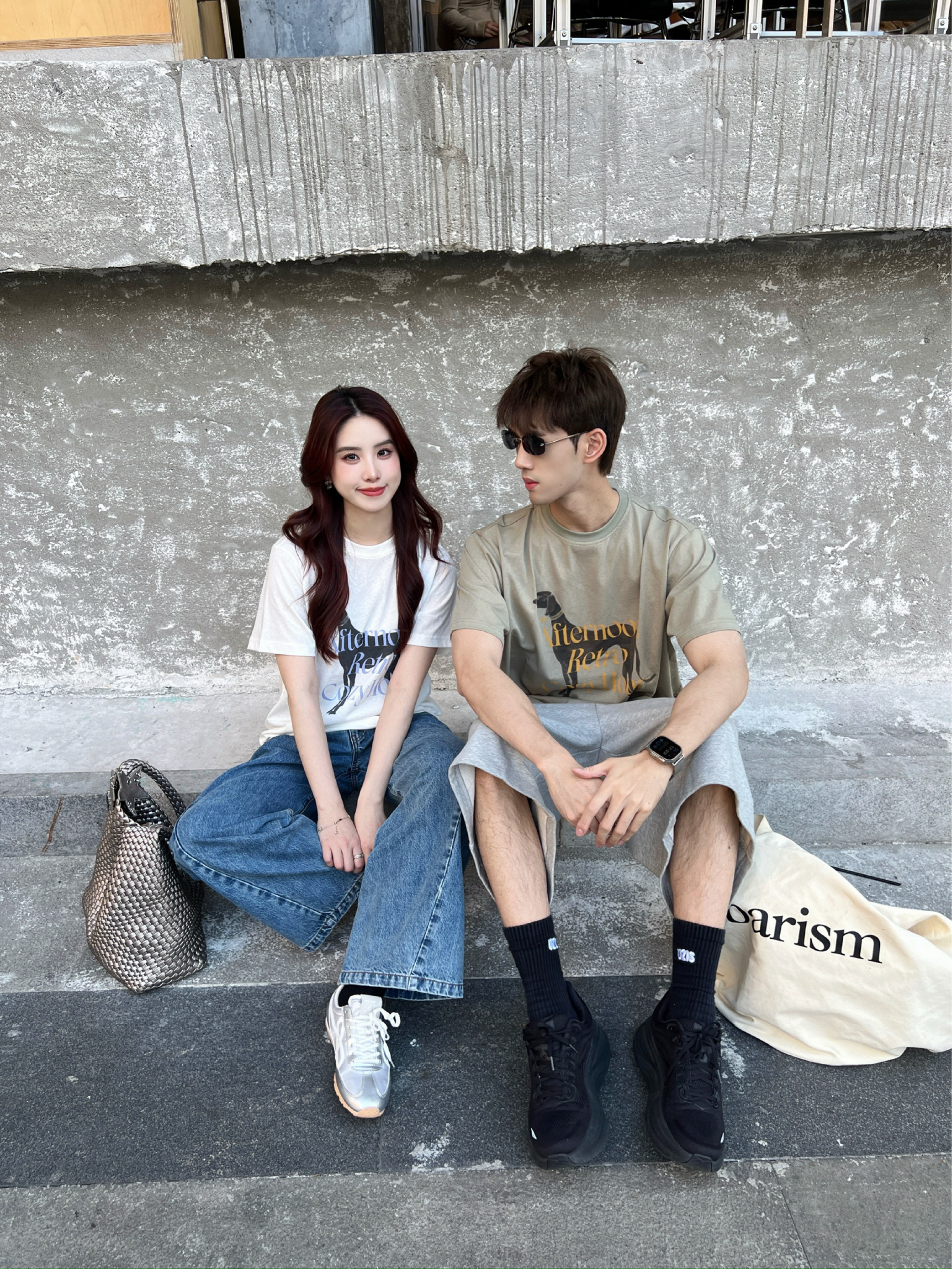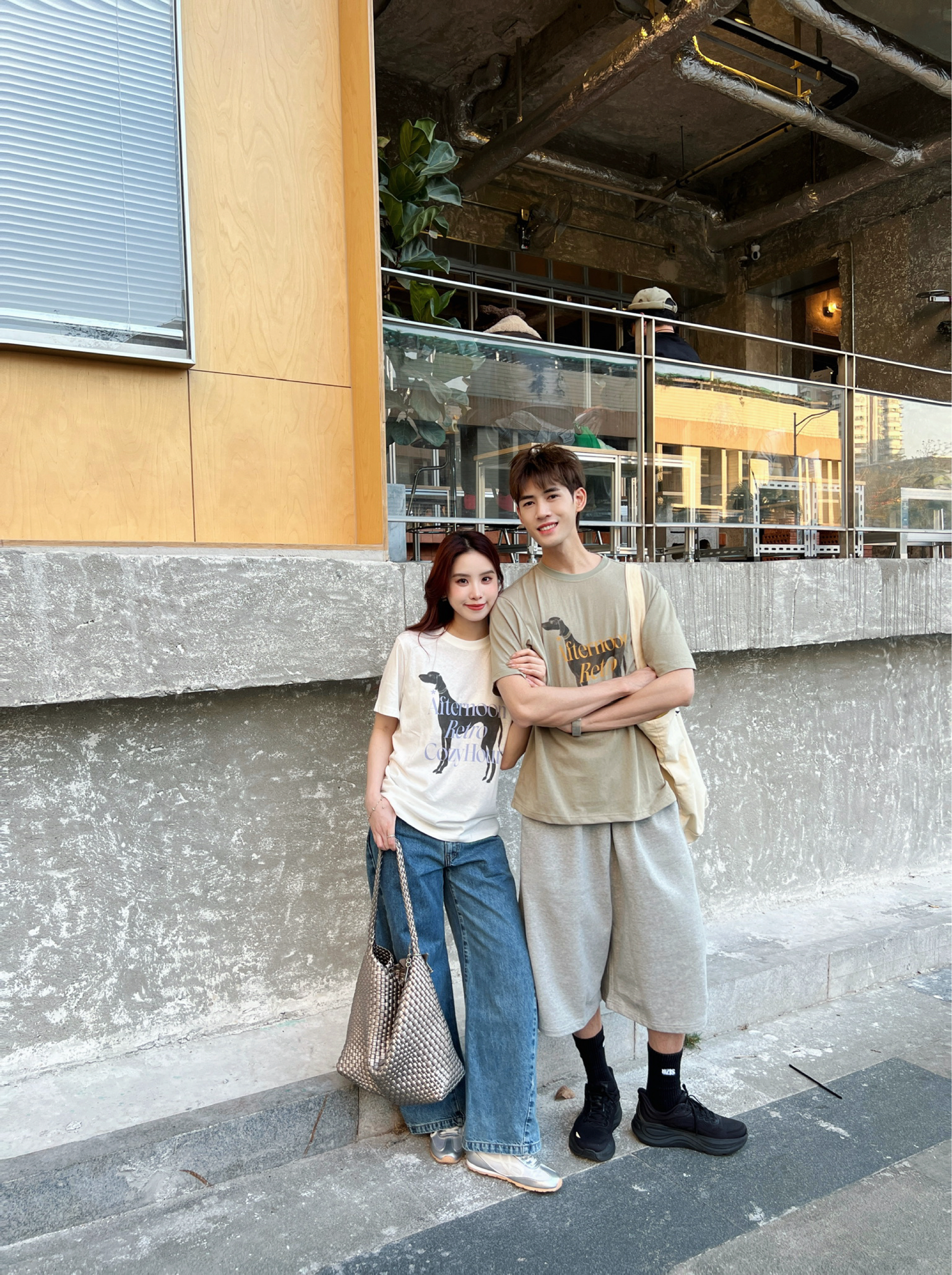 笑死 朋友聊天都说羡慕我 说我眼光好 又高又瘦又漂亮还是我学姐 搞得我女朋友都不好意思了hhhhh🤣 今天约会同样穿了ROARINGWILD的 👕复古撞色狗狗T恤👖纯棉运动五分裤 一套出门真的很韩很出片📷