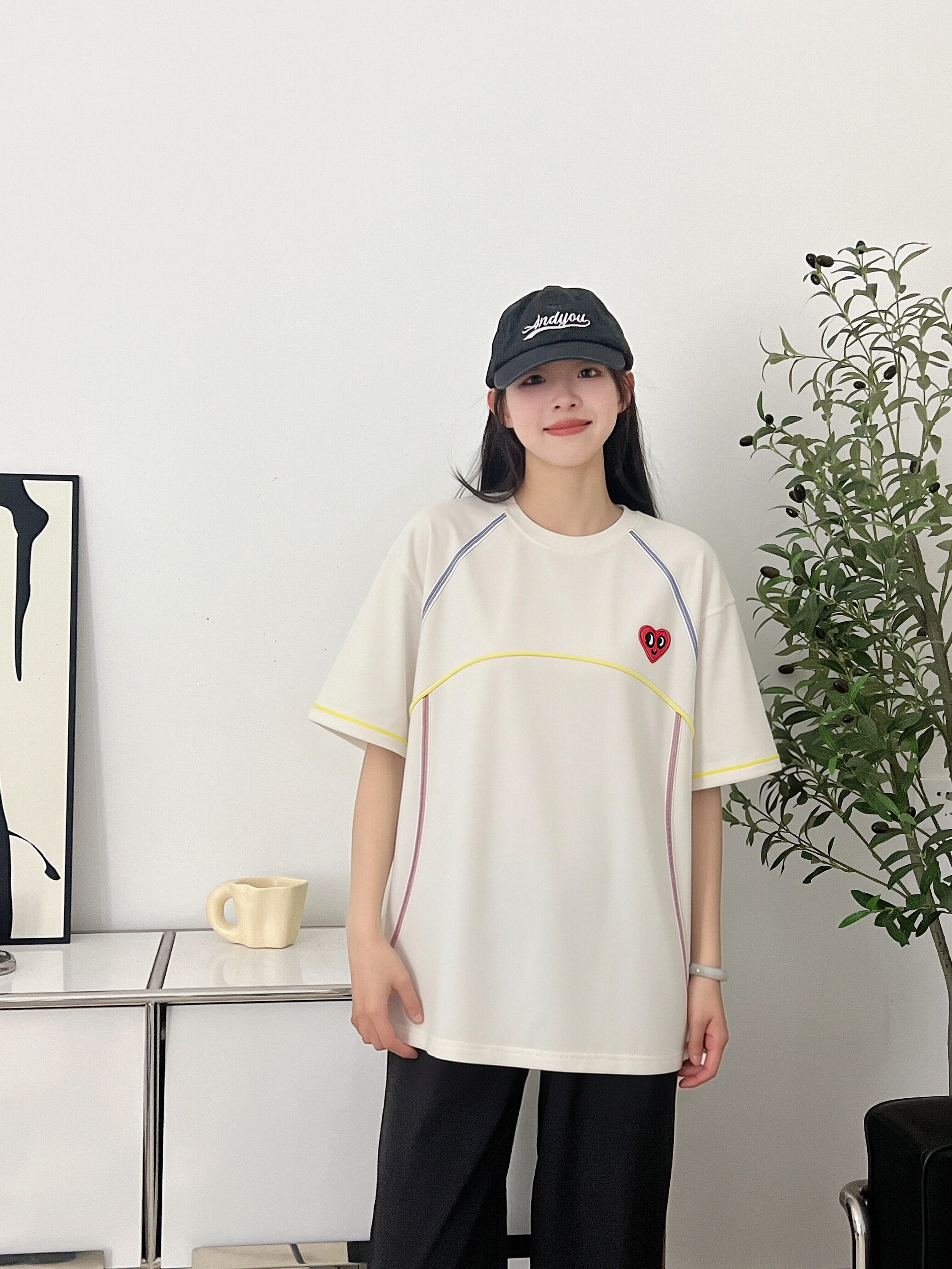 这件线条短袖完全是我的夏日本命款!版型宽松休闲,对身材包容性很强。面料柔软,简简单单的线条印花干净又高级,一点都不挑人,穿清爽利落,日常随便一套就很有氛围感。