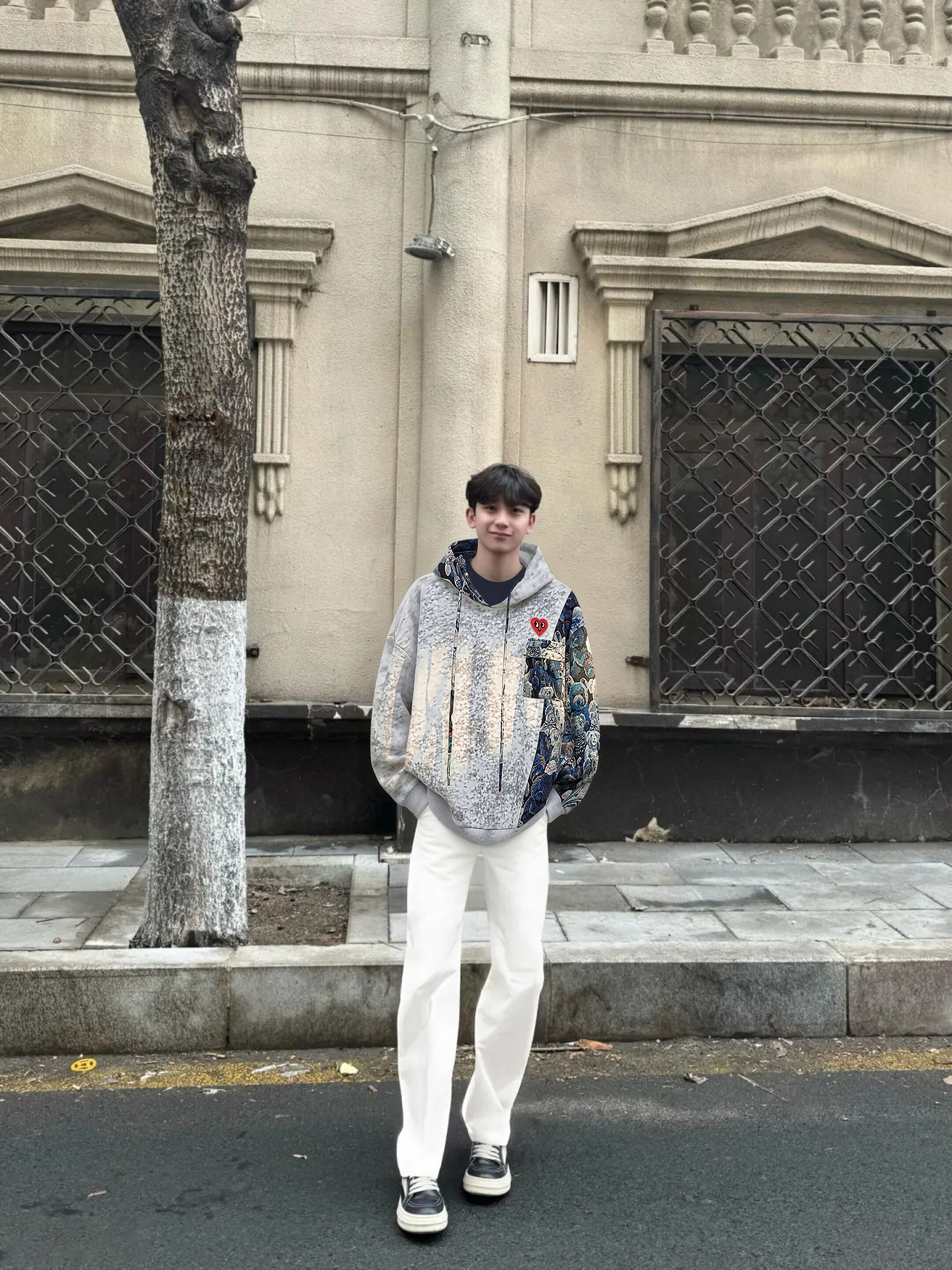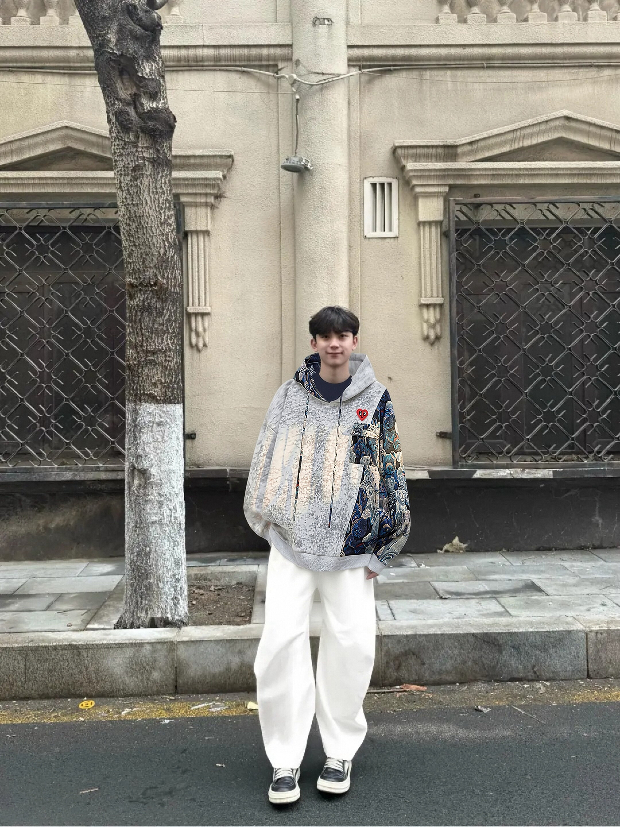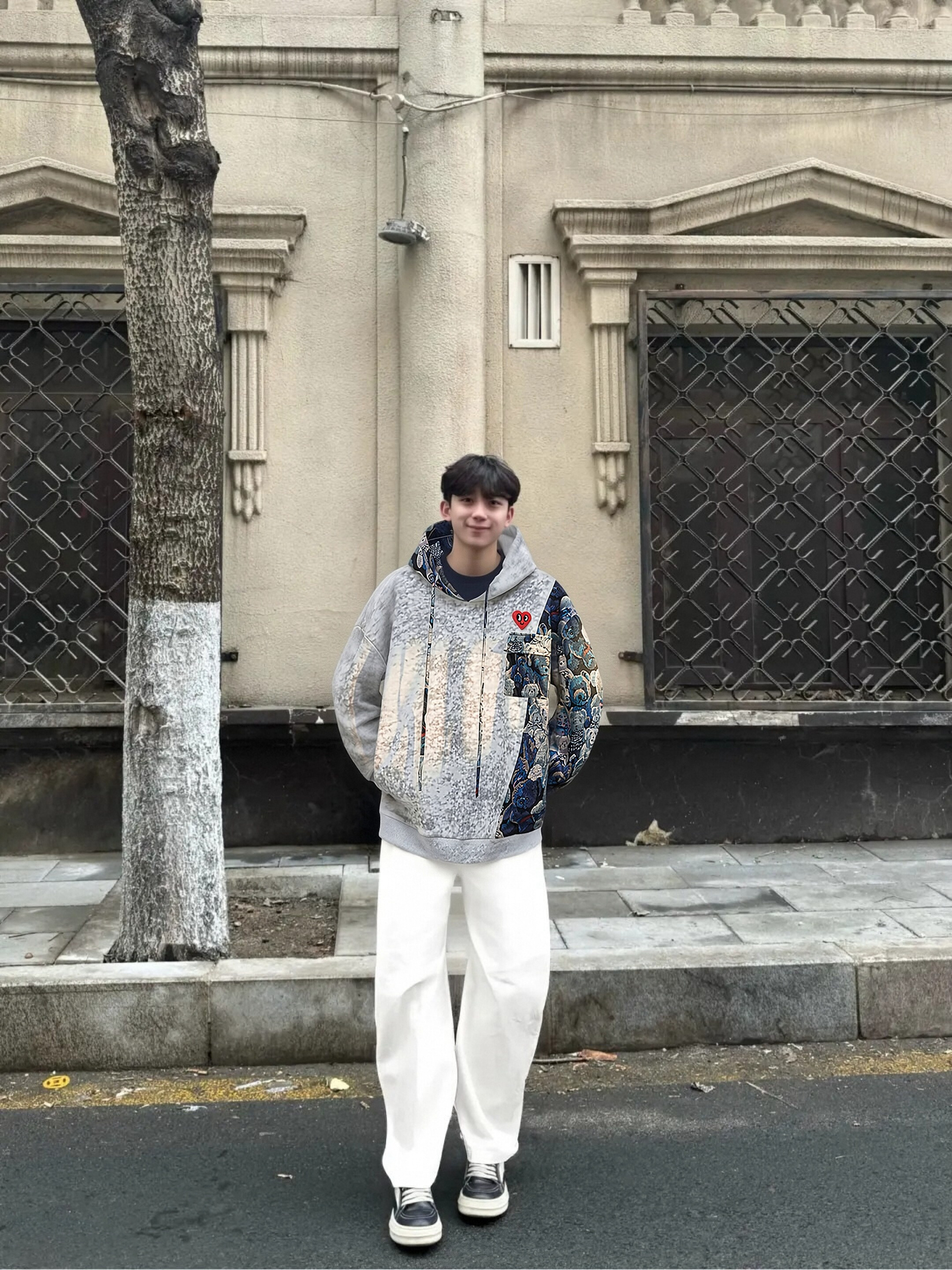 被这件拼接小熊卫衣圈粉了!灰调扎染质感高级,右侧满印小熊 + 国风连帽,复古感拉满~宽松版型不挑身材,搭白裤干净又少年,面料软糯舒服,日常上学、通勤都合适,情侣款和女朋友穿超有氛围感!
