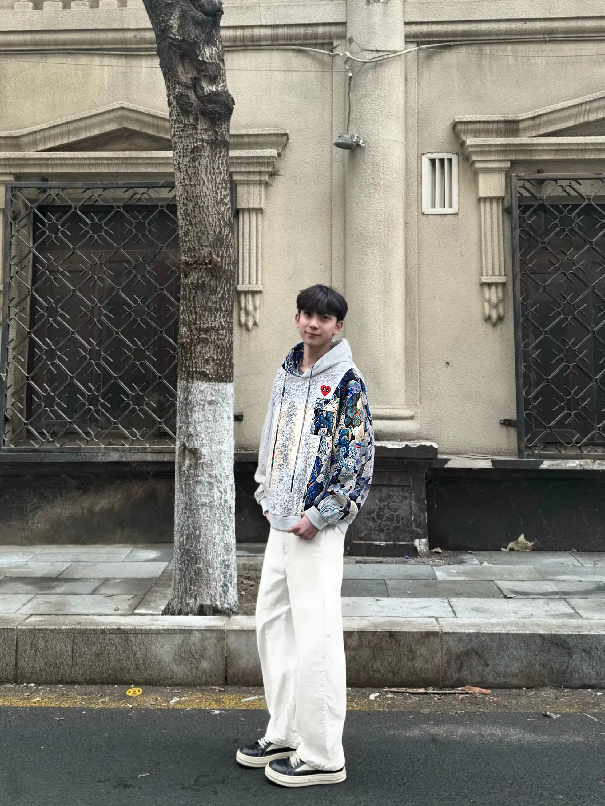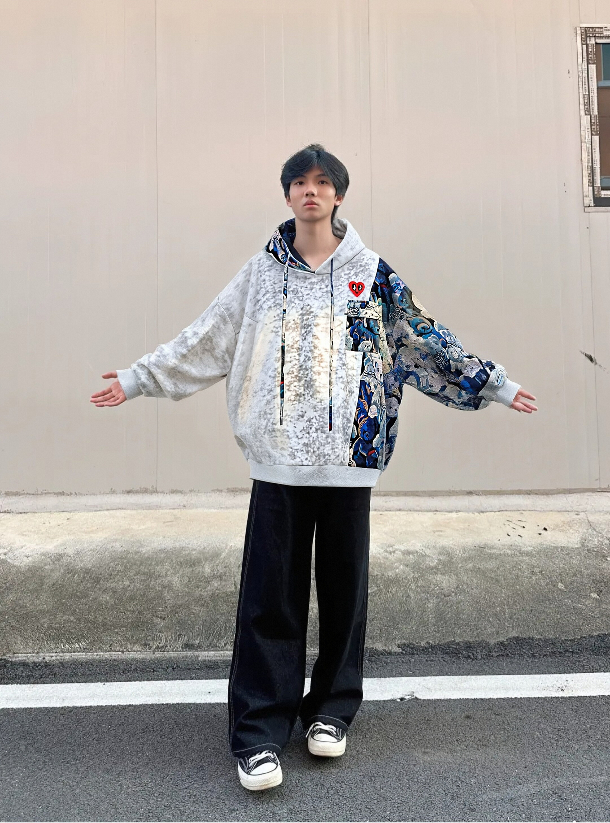 被这件拼接小熊卫衣圈粉了!灰调扎染质感高级,右侧满印小熊 + 国风连帽,复古感拉满~宽松版型不挑身材,搭白裤干净又少年,面料软糯舒服,日常上学、通勤都合适,情侣款和女朋友穿超有氛围感!