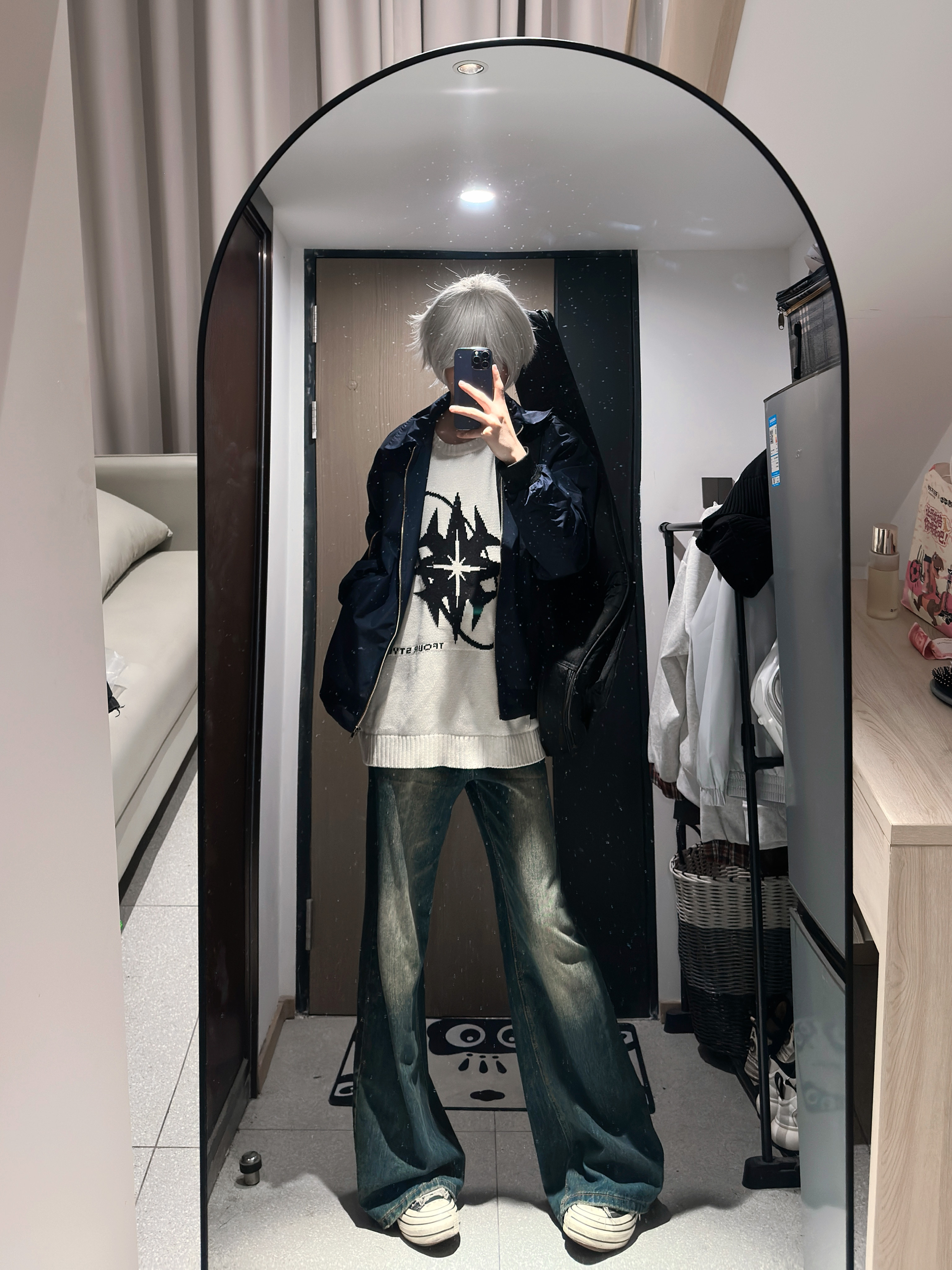 美式复古工装夹克谁能不爱 宽松版型 不挑身材 翻领设计很好搭配 藏青色百搭又耐看 下身再搭配一条复古直筒牛仔裤 谁能不爱~