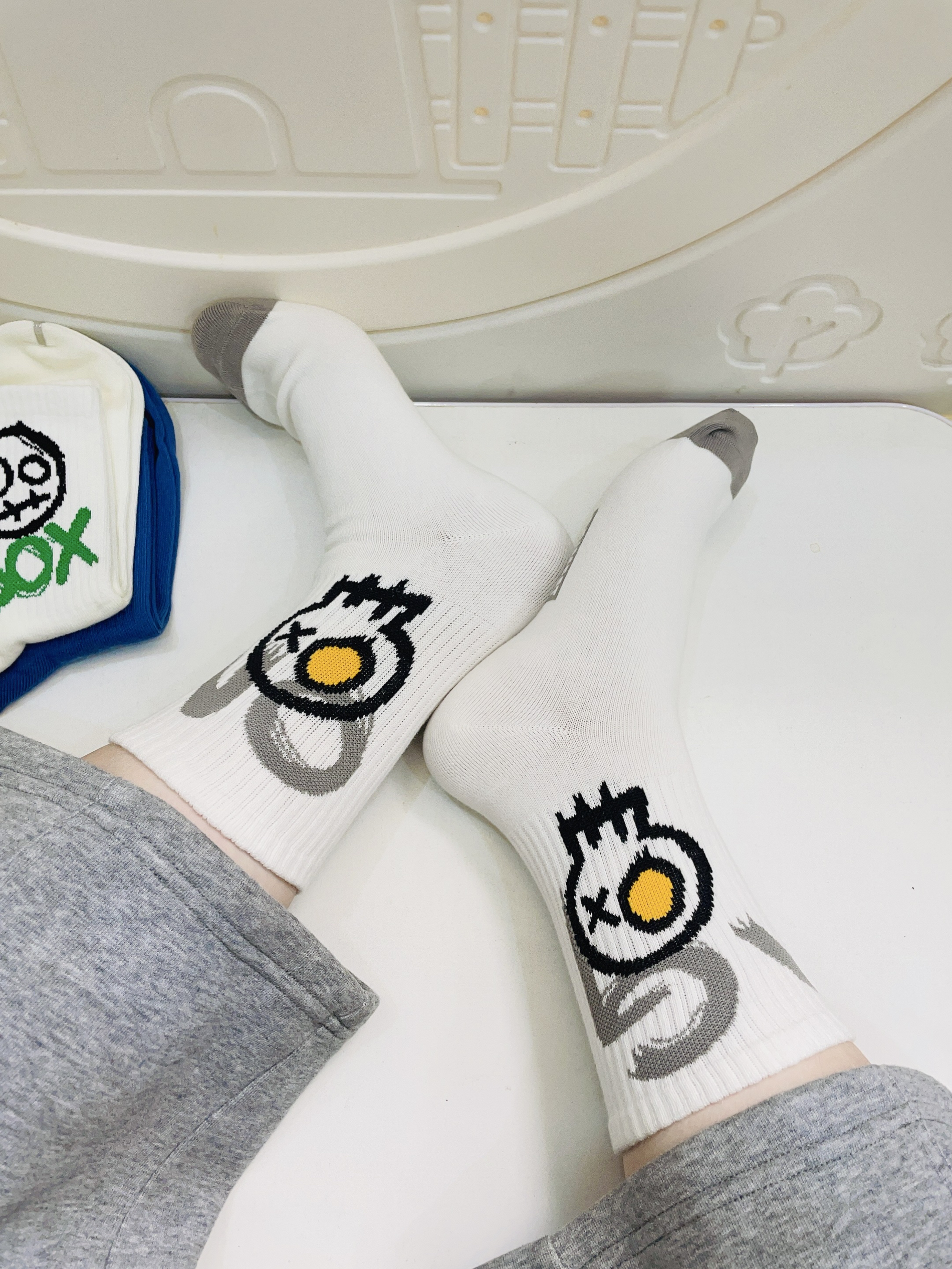 现在广东的天气好暖和不冷不热刚刚好 我给自己准备新的袜子 派米这款袜子配色蛮好看 涂鸦图案都蛮吸睛的 摸着面料舒服 上脚穿舒服又不闷 我感觉蛮适合现在的天气穿 也不用担心会打球运动出汗臭脚 日常通勤户外休闲运动随便搭
