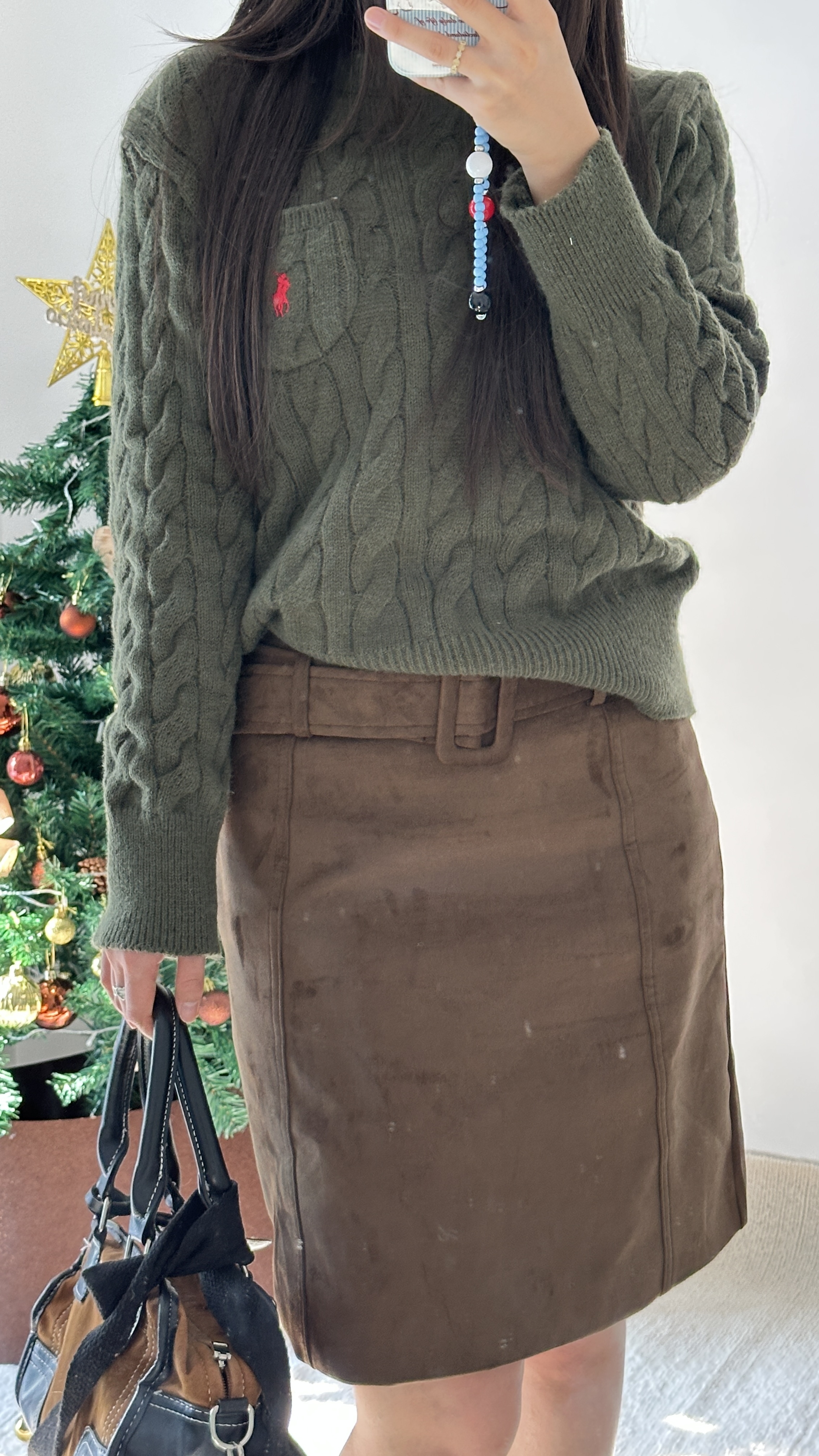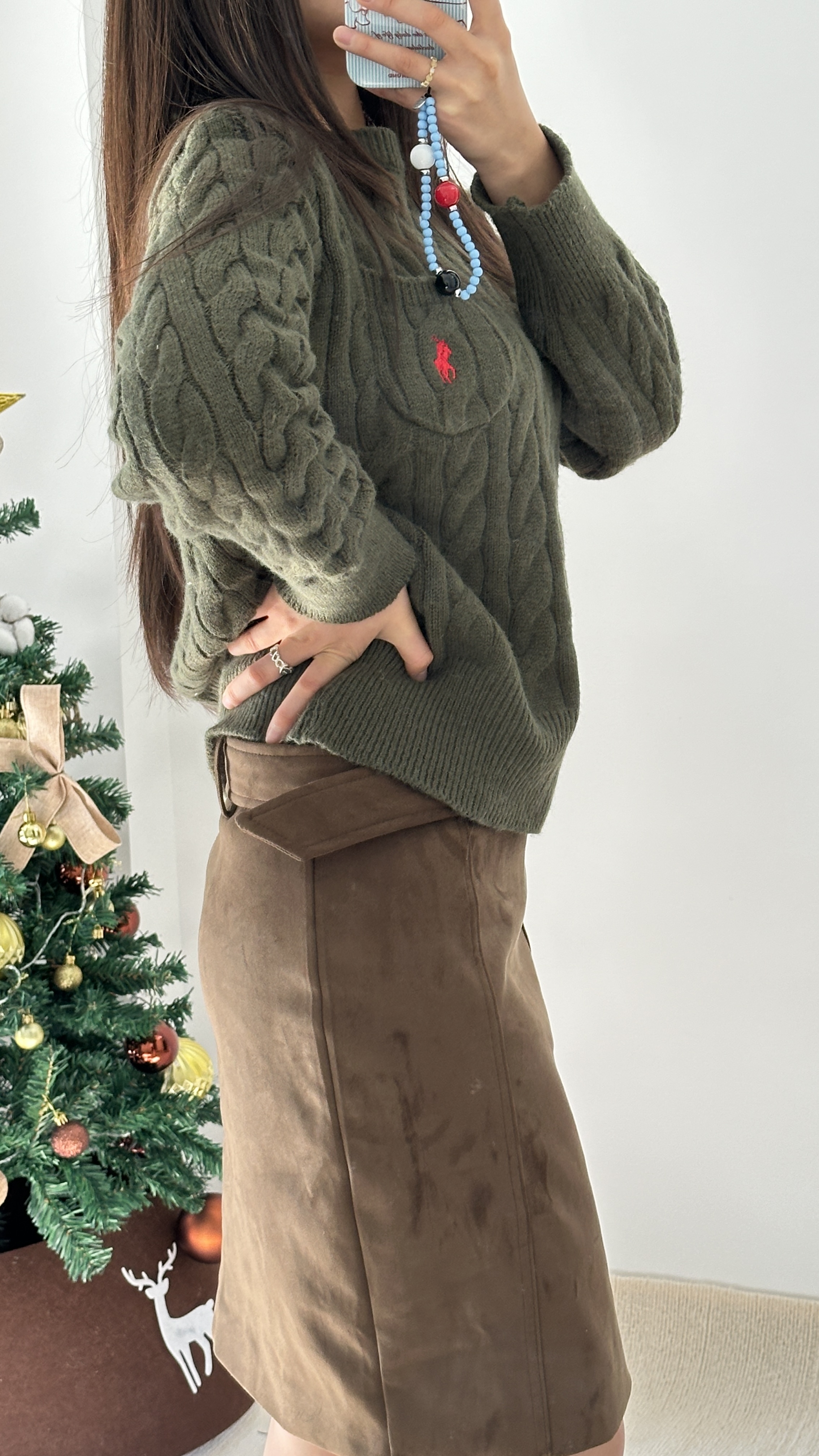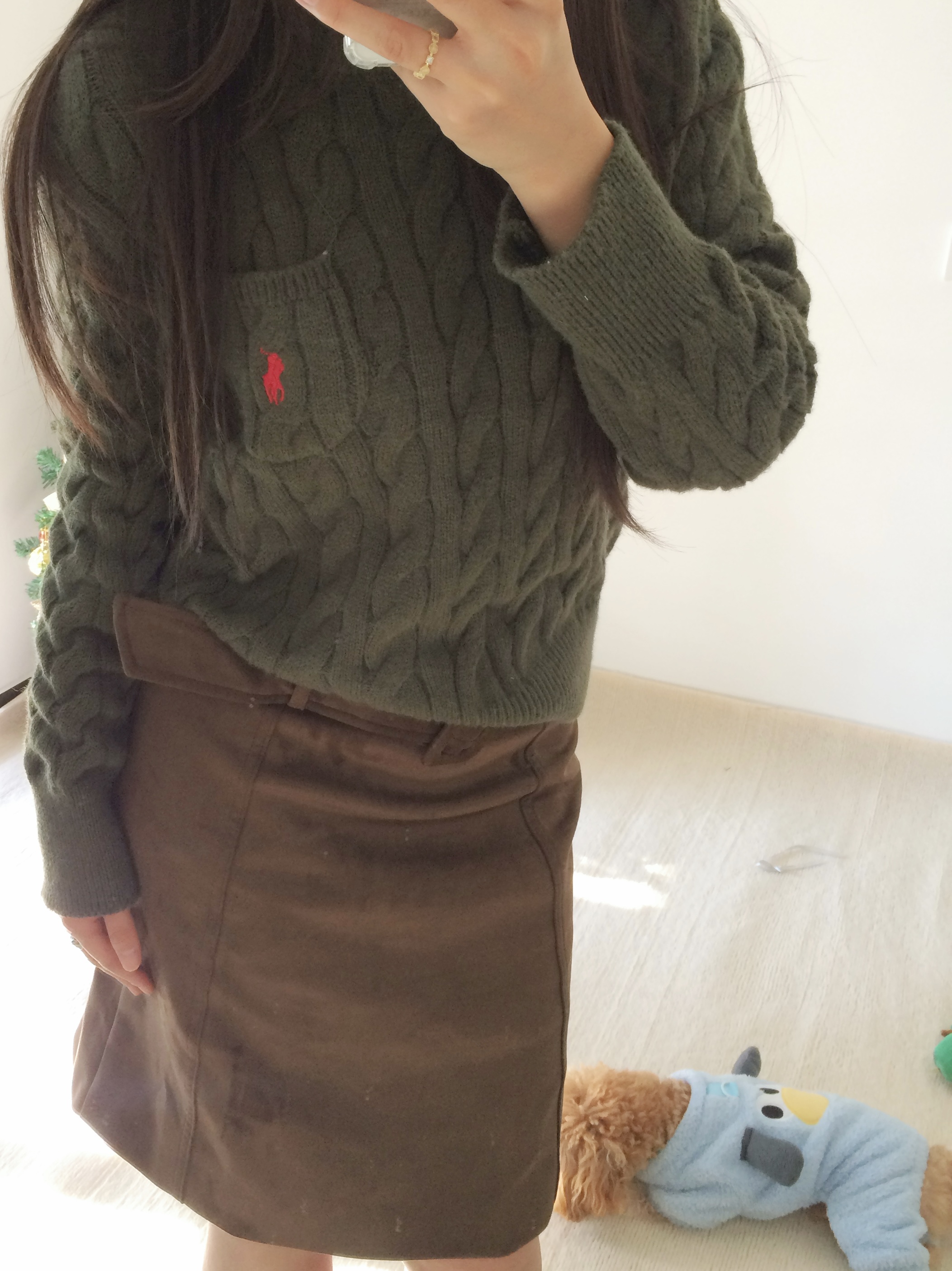 救命!这套绿棕穿搭也太显气质了💨 麻花毛衣 + 麂皮半裙复古感拉满 遮肉又显高,温柔到骨子里春天就该这么穿! #OOTD #显高穿搭 #复古学院风 #麂皮裙推荐 #美拉德复古风