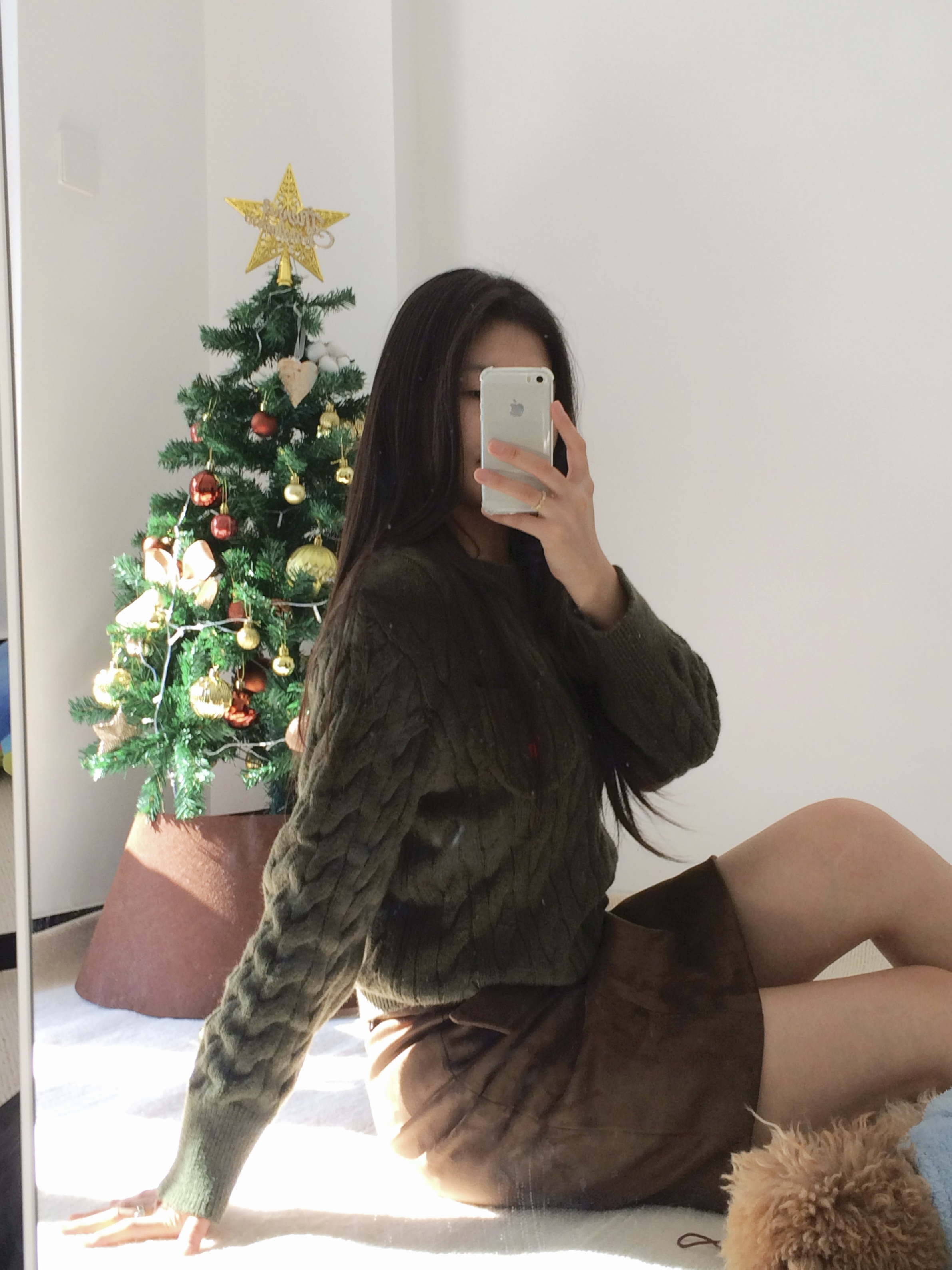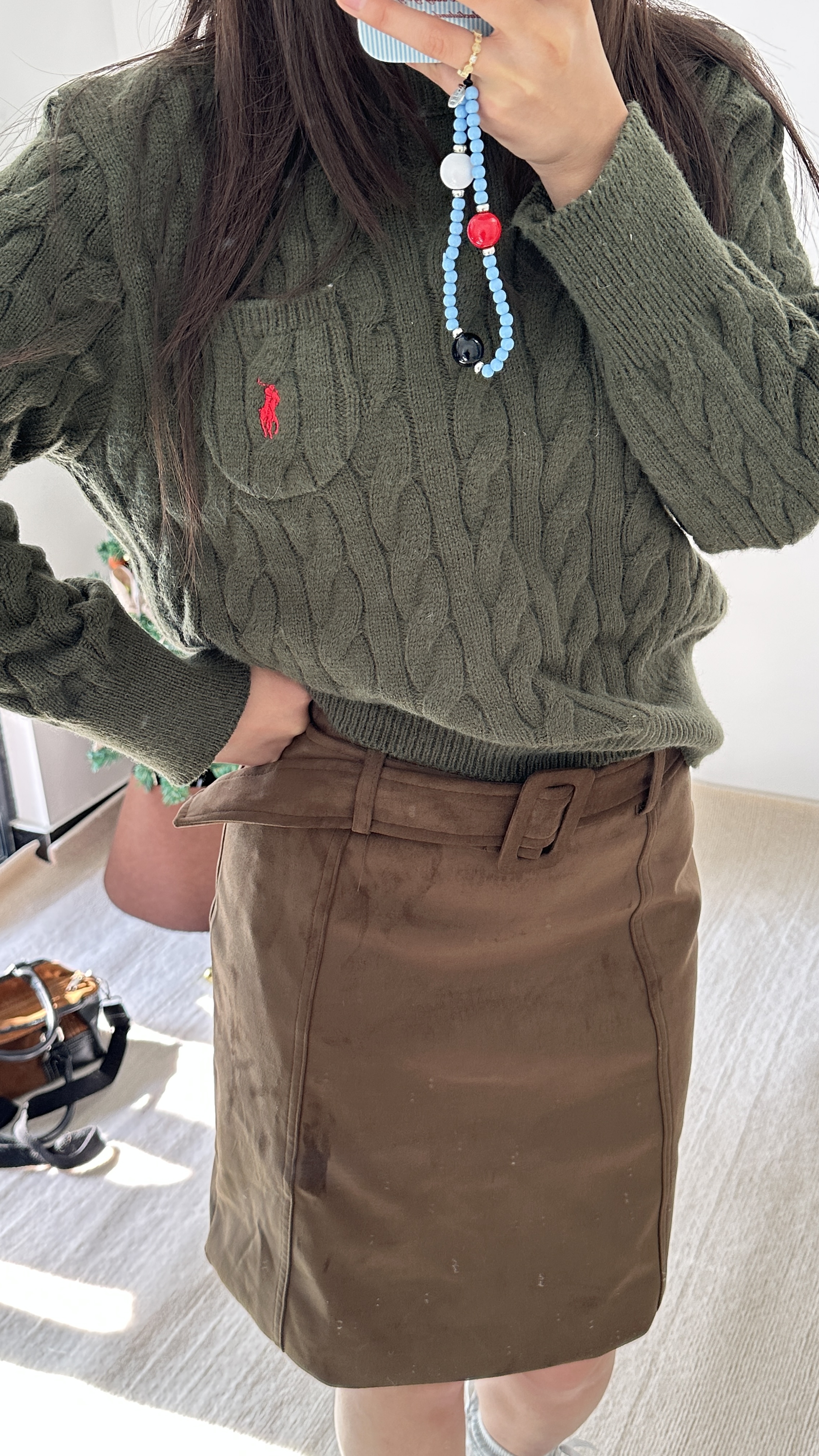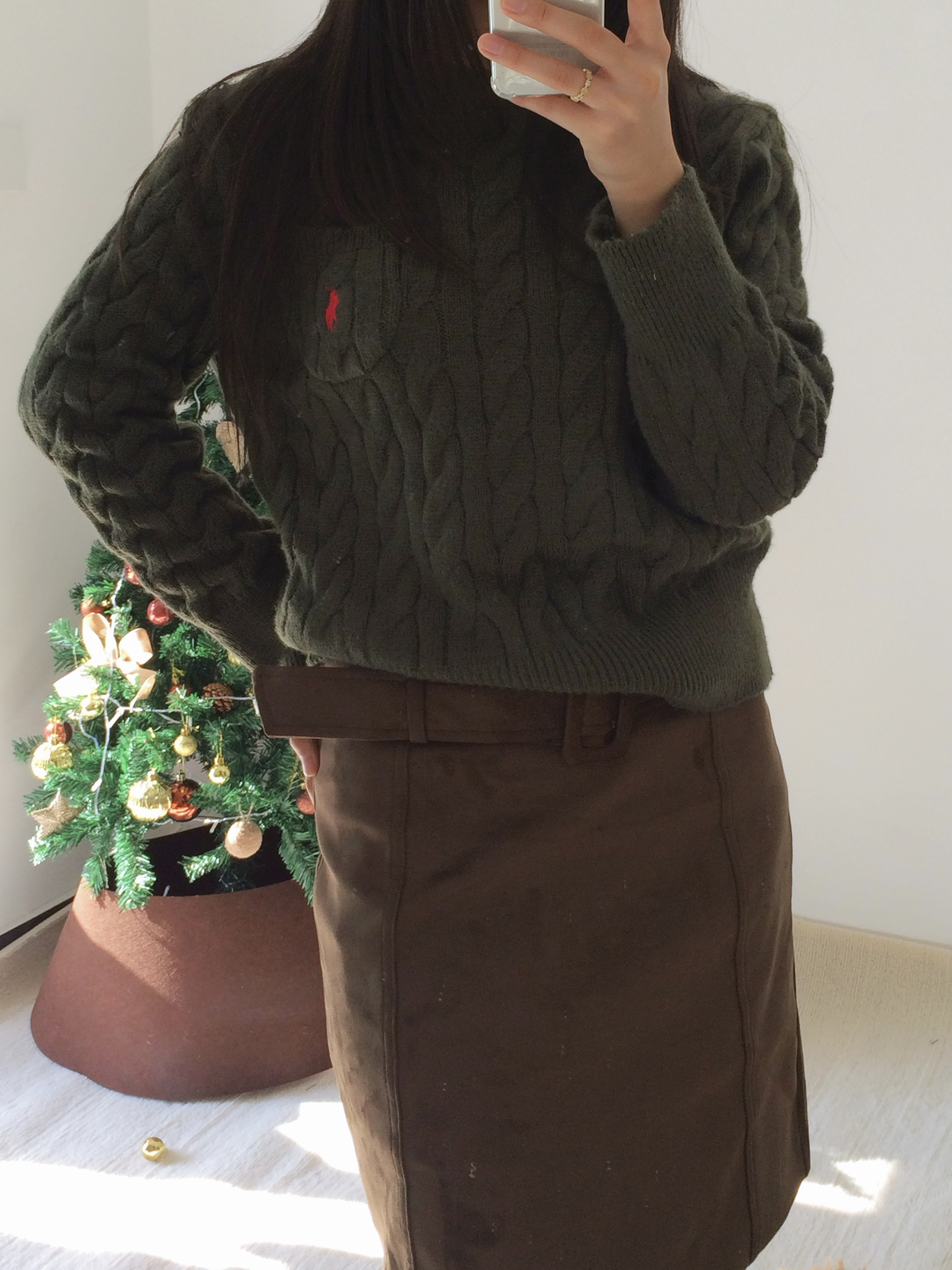 救命!这套绿棕穿搭也太显气质了💨 麻花毛衣 + 麂皮半裙复古感拉满 遮肉又显高,温柔到骨子里春天就该这么穿! #OOTD #显高穿搭 #复古学院风 #麂皮裙推荐 #美拉德复古风