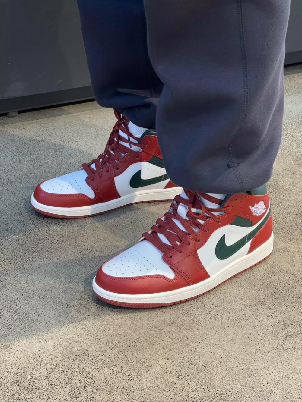 谁懂啊家人们!这双AJ1中帮真的美到失语😭 酒红+奶白+墨绿的撞色,自带复古滤镜,像把圣诞和美式街头穿在脚上,氛围感直接拉满! 皮革质感软乎乎的,上脚巨显脚小,搭配卫裤、牛仔裤都超绝,走路带风的感觉谁穿谁知道✨ 不管是日常出街还是球场耍帅,这双都是妥妥的吸睛神器,复古党和潮流党都能狠狠拿捏!