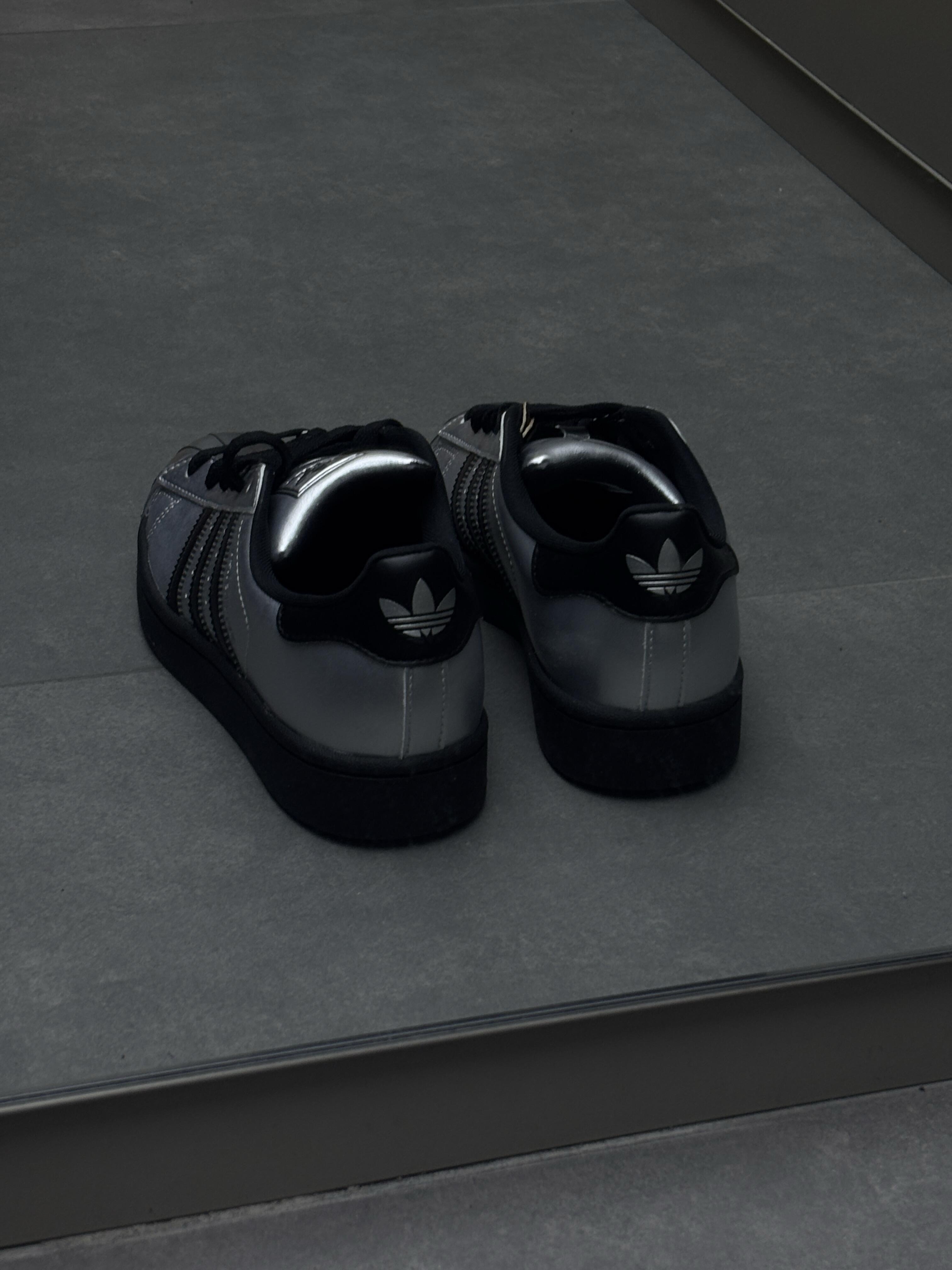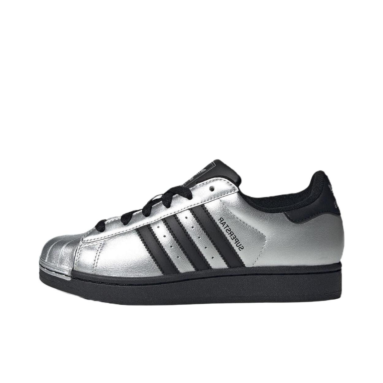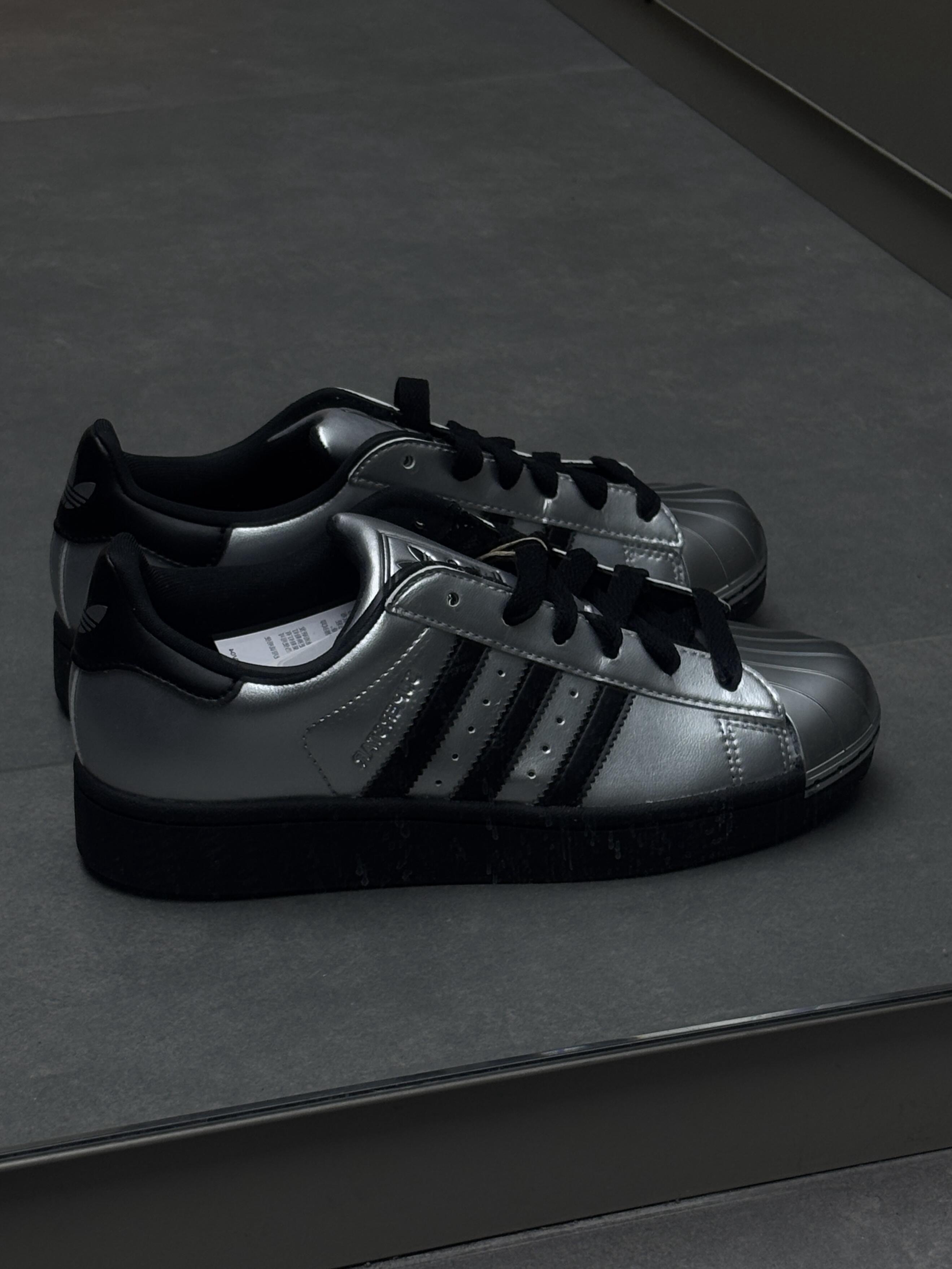 谁懂啊家人们!这双adidas Superstar银色贝壳头真的是Y2K穿搭天花板😭 金属银亮面+经典贝壳头+黑底黑条,像把未来赛博霓虹穿在脚上,复古感和未来感狠狠拿捏! 标志性贝壳头设计+耐磨橡胶大底,脚感扎实又耐造,搭配工装裤、辣妹裙、阔腿裤都超和谐,走路都带光的气场谁穿谁知道✨ 不管是日常出街还是音乐节耍帅,这双都是妥妥的吸睛神器,千禧年党和赛博风爱好者直接闭眼冲!