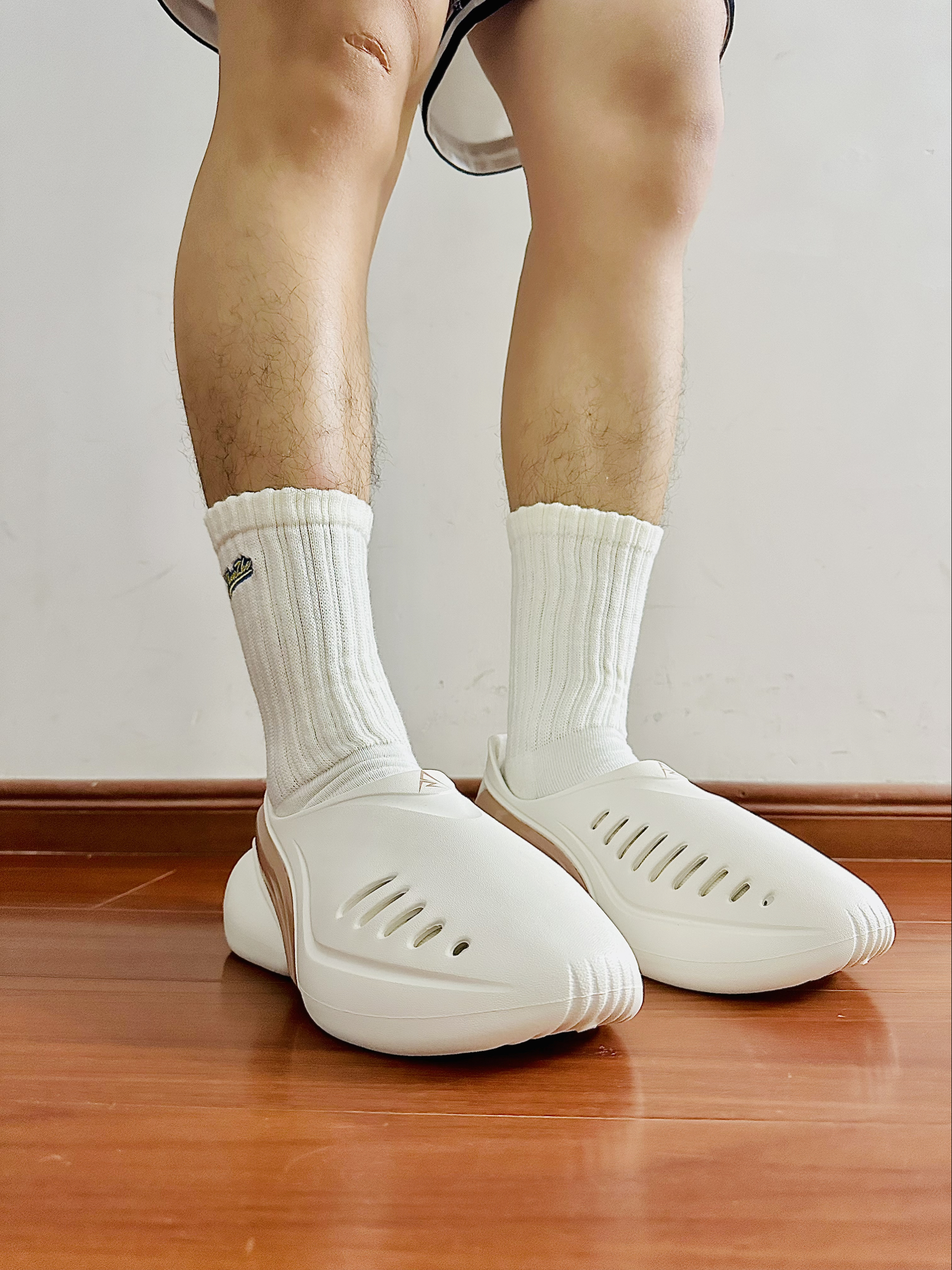 炎炎夏日 怎么能少一双洞洞鞋☀️ 👟: 准者 RIGORER 里弗斯联名款洞洞鞋 一脚蹬设计 日常穿脱很方便💫 EVA一体式发泡科技 轻巧速干可沾水 以赛车🏎️引擎散热为灵感 设计的透气孔 保证透气性 夏天穿超级舒服😍 暖白的配色干净百搭 加上咖色的TPU颜值在提升一个档次 日常就搭配短裤白袜就可以出门啦😙