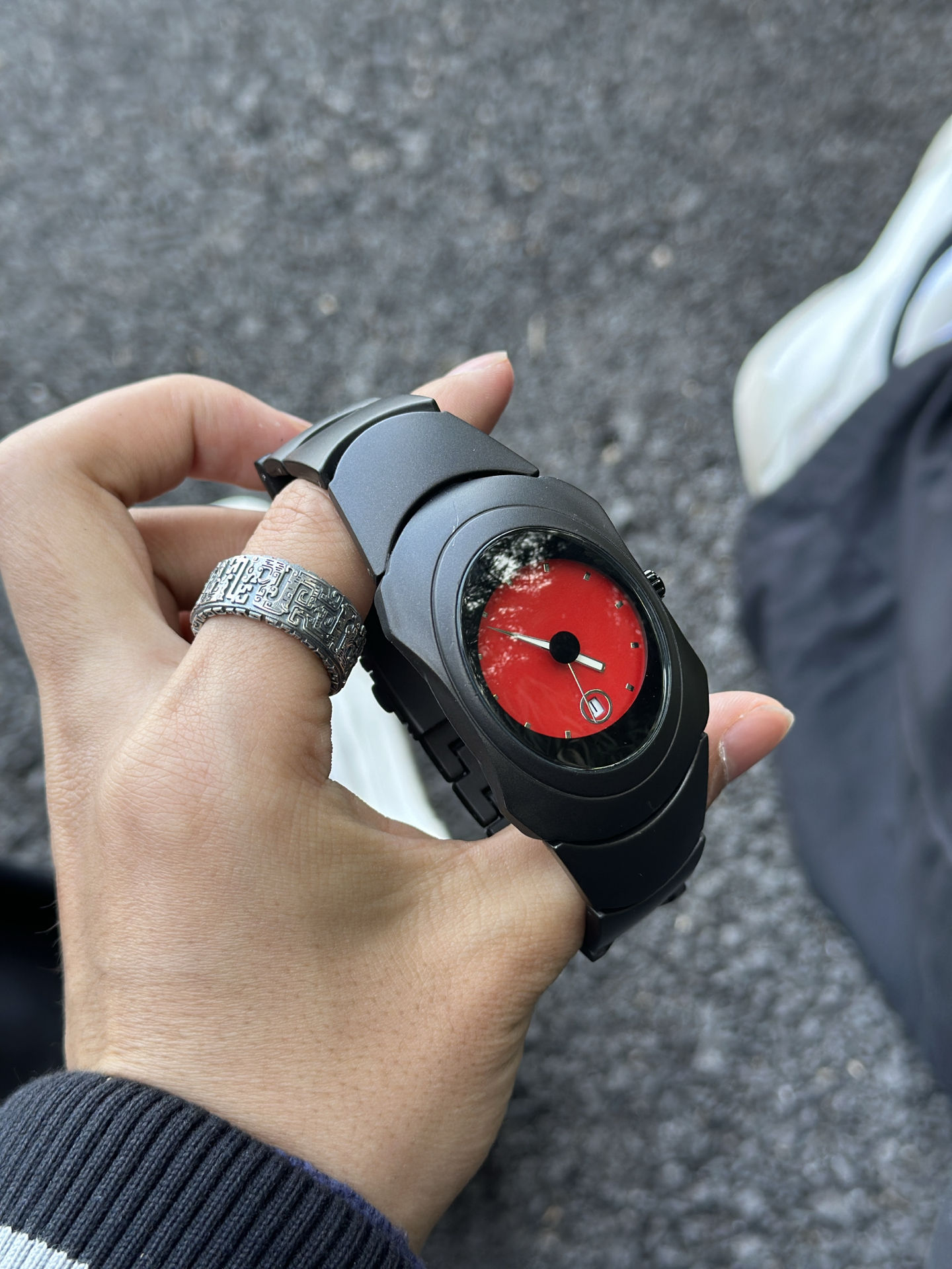 今天戴了一款很有设计感的手表 这款手表的颜值很高 红色的表盘好像一只红色的恶魔之眼 戴着手上也很时尚精致 黑色表带尽显高级感 日常出街戴着它真的很潮流 图源网络,侵删