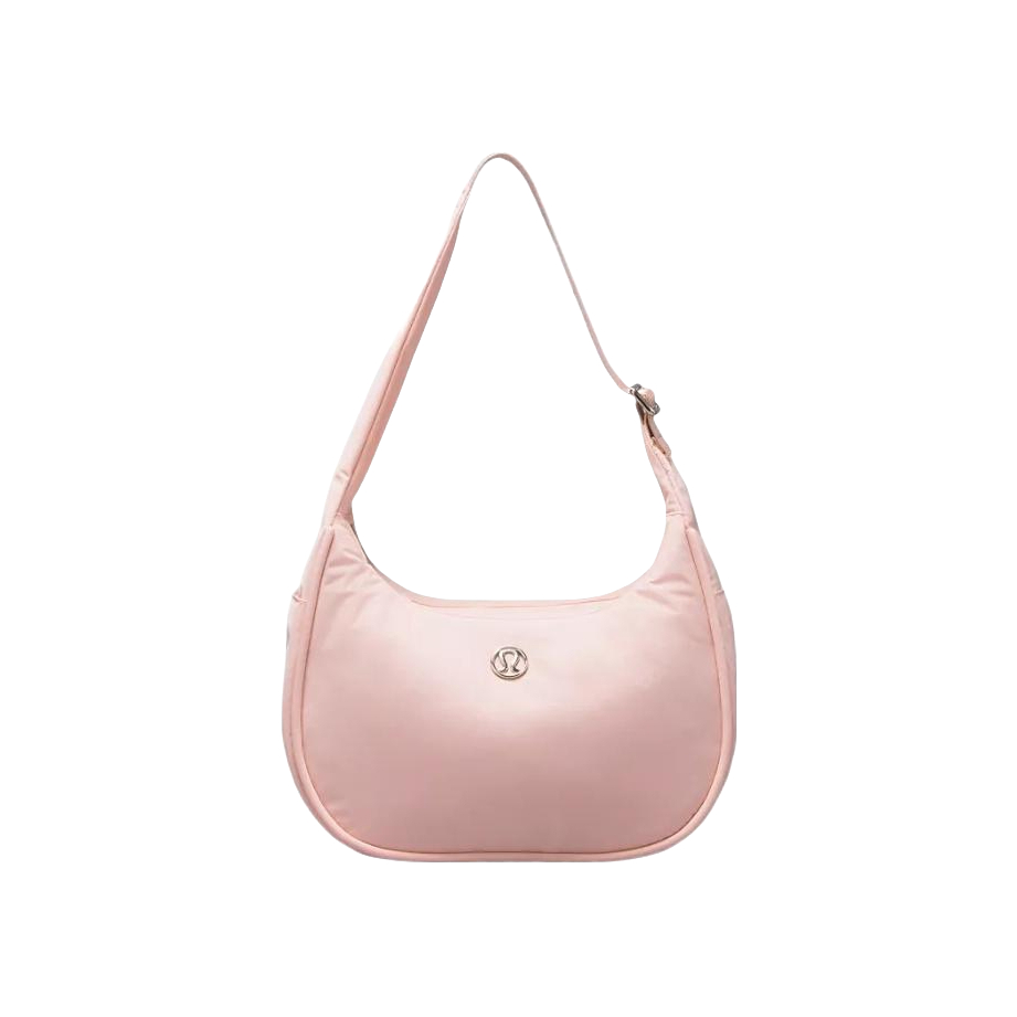 温柔樱花粉/高级灰绿,月牙包型流畅又慵懒,金属小logo低调显贵,软乎乎的包身自带松弛感,随便一背都很出片。防水再生尼龙面料耐造易打理,4L容量刚好装下手机、钱包、补妆品,肩带可调节,腋下背、手提都舒服,通勤/逛街/运动都适配。