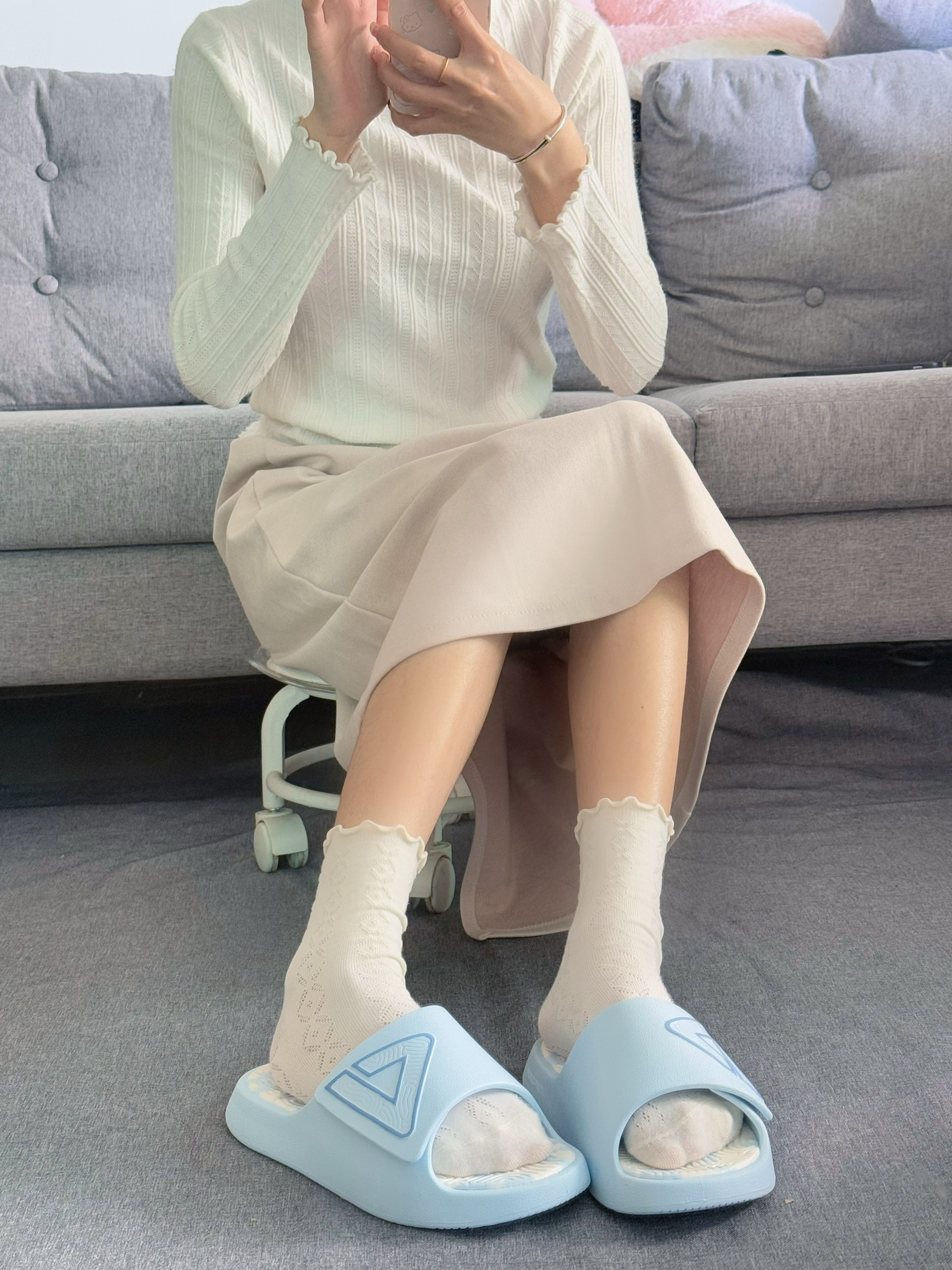 软绵绵的脚感,搭配清新的配色,尊嘟好喜欢啦! 而且是魔术贴设计,随意调松紧度!