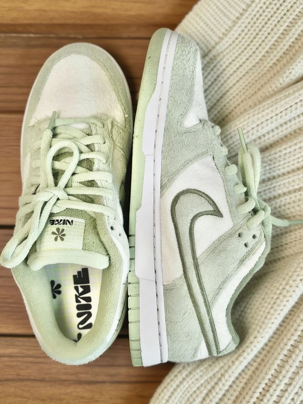 本篇笔记关联了Nike Dunk 板鞋 经典复古百搭 羊毛/白色/浅绿等商品,为用户提供真实的使用体验和购买参考。